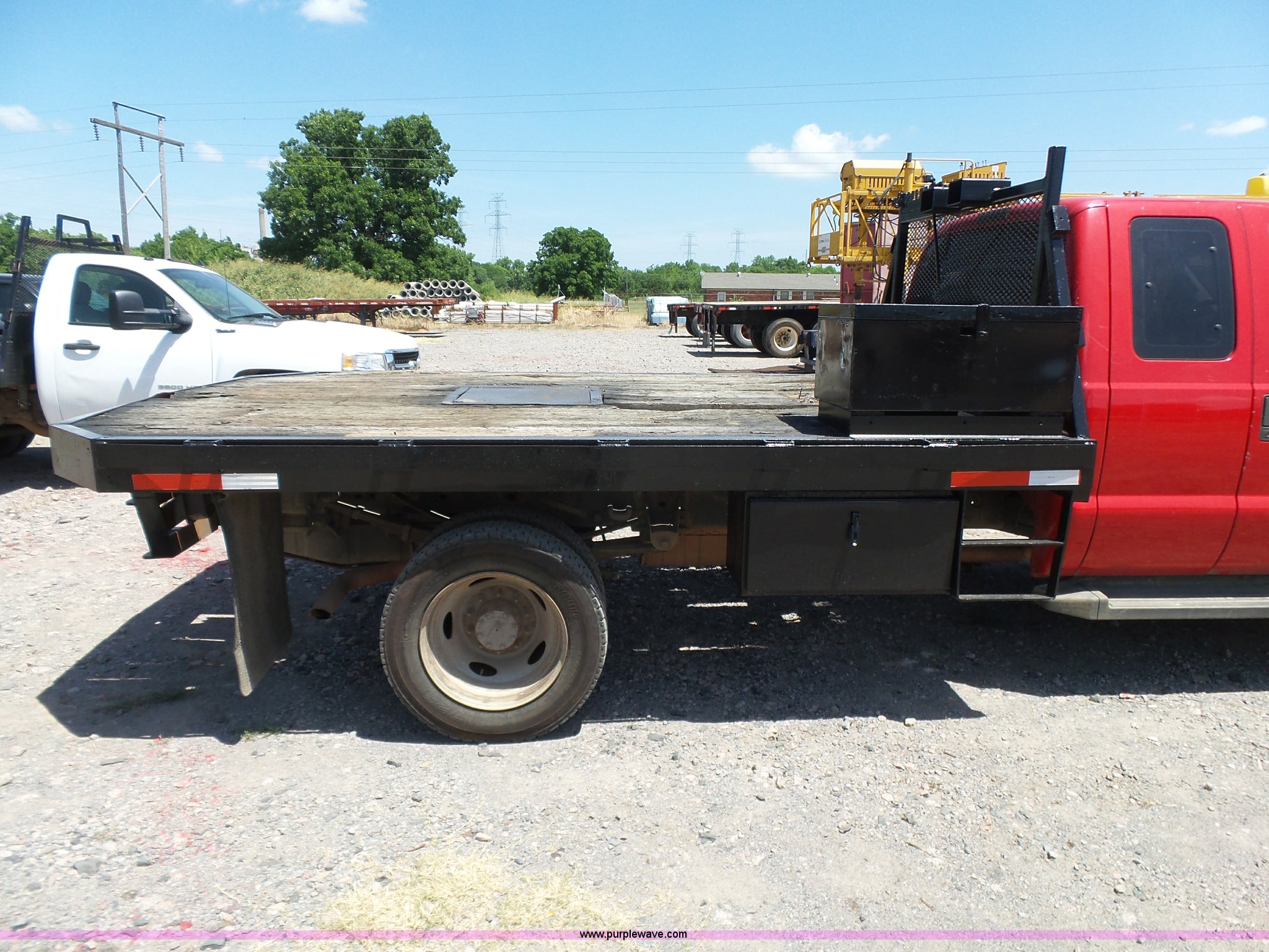 Purple Wave is selling a used Flat Bed Truck in Oklahoma. This item is a 2008 Ford F550 Super Duty XL SuperCab flatbed truck with the following: 230,980 miles on odometer, 6.8L V10 gas engine, Automatic transmission, AC and heat, Tilt, Cruise, AM/FM/CD, Power windows, locks, and mirrors, Vinyl interior, Trailer brake controller, CM flatbed, 12'L x 98"W, Toolbox, Beacon light, Back up alarm, Front tow hook, Running boards, Receiver hitch, Gooseneck hitch, 225/70R19.5 tires, Unit# 10-223