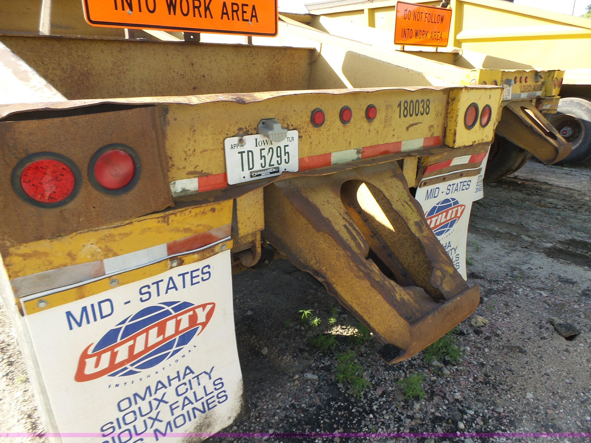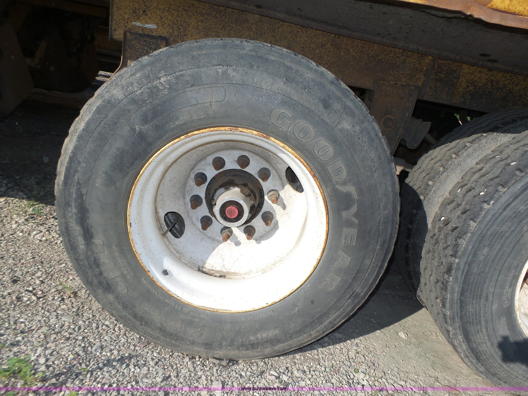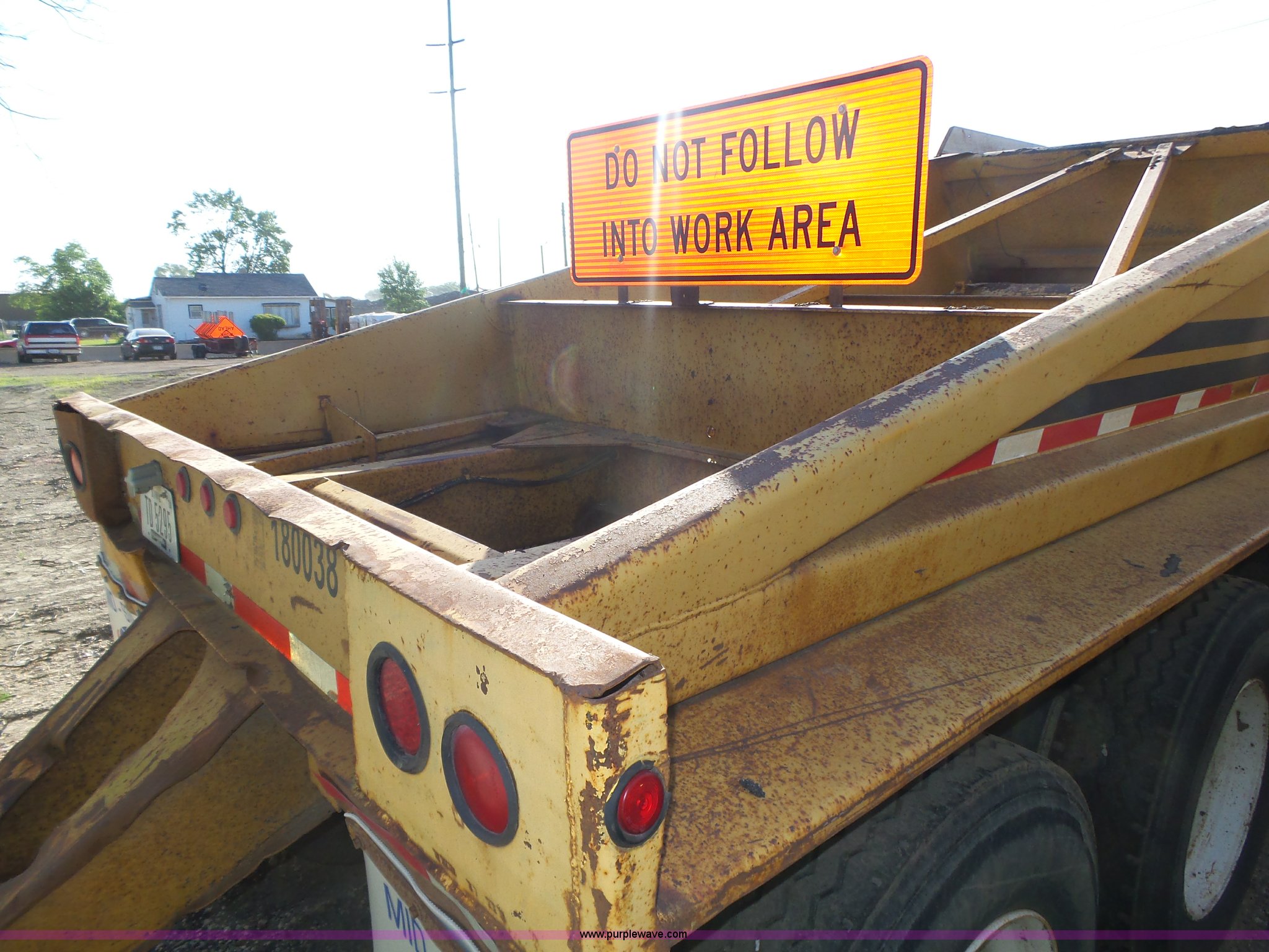 Purple Wave is selling a used Bottom Dump Trailer in Iowa. This item is a 1987 Load King 1827 bottom dump trailer with the following: 42' overall length, 96"W, 18 cubic yard capacity, 8" wood side boards, Steel construction, Dual pneumatic cylinders, Air operated clamshell gate, Tethered remote, Manual tarp, Rear push block, Dual leg landing gear, Fifth wheel plate, Triple axle, Spring suspension, Air brakes, Steel wheels, 11R22.5 tires, Unit# 180038