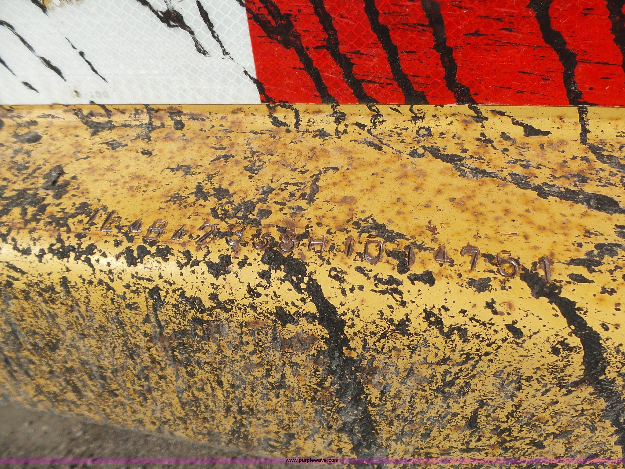 1987 Load King 1827 bottom dump trailer. 42' overall length, 96"W, 18 cubic yard capacity, 8" wood side boards, Steel construction, Dual pneumatic cylinders, Air operated clamshell gate Tethered remote, Manual tarp, Rear push block, Dual leg landing gear, Fifth wheel plate, Triple axle, Spring suspension, Air brakes, Steel wheels, 11R22.5 tires, Unit# 180038. Iowa title. 1L4B42338H1014751. Knife River Corporation. 2220 Hawkeye Drive. Sioux City, IA 51105