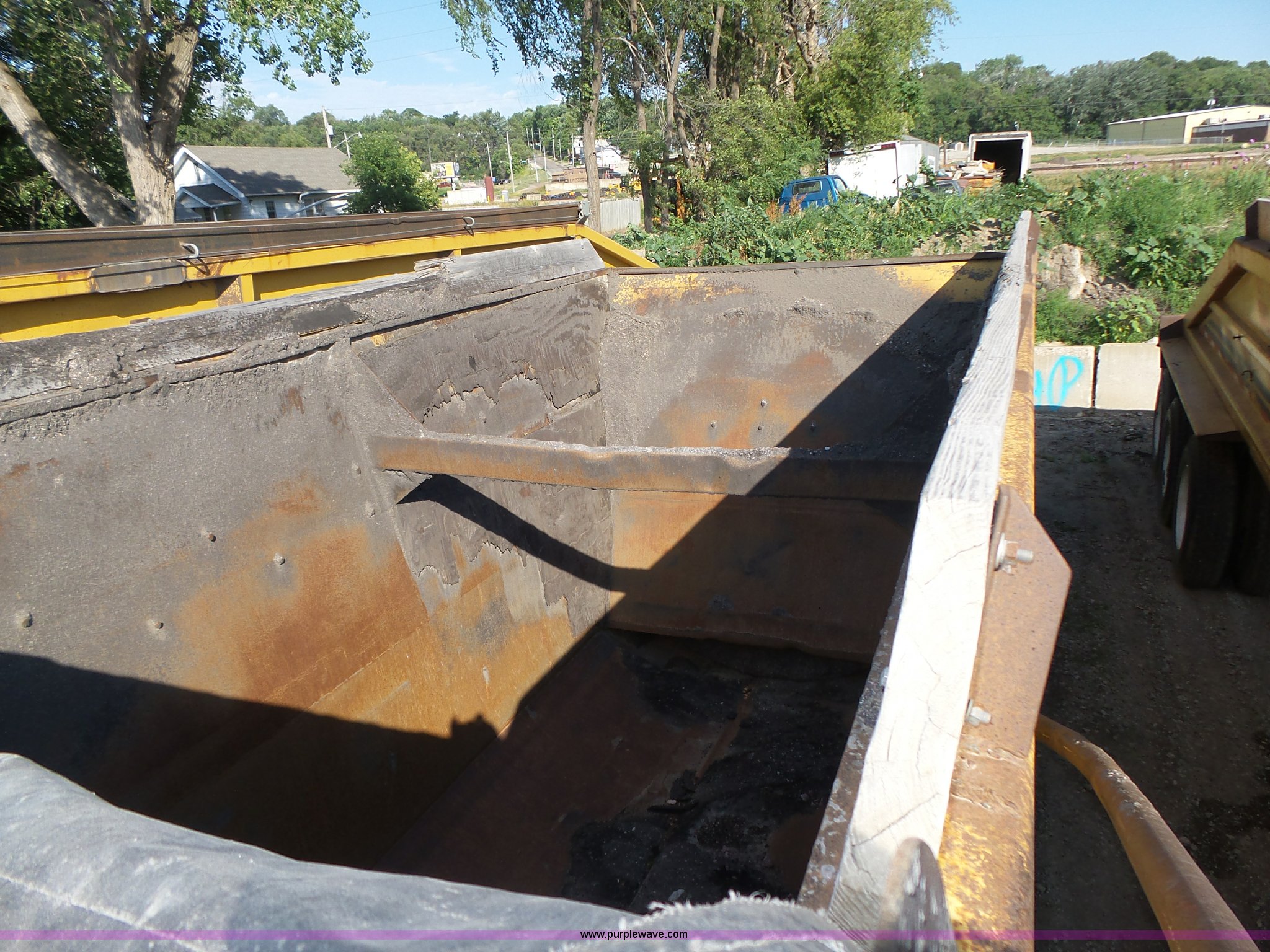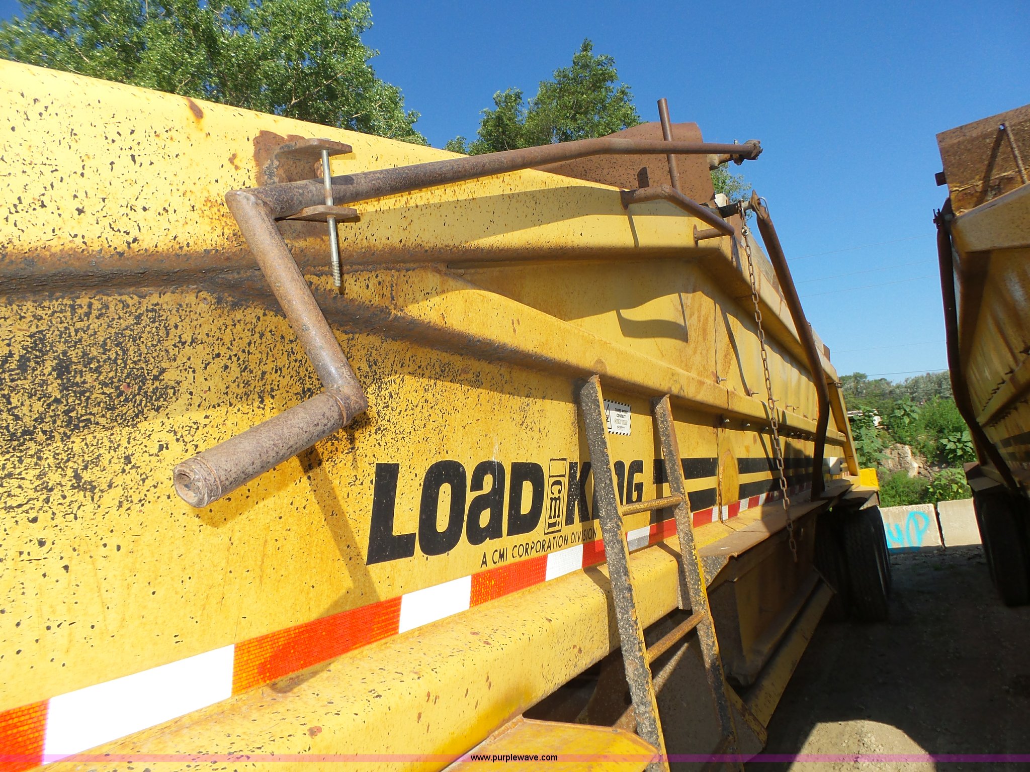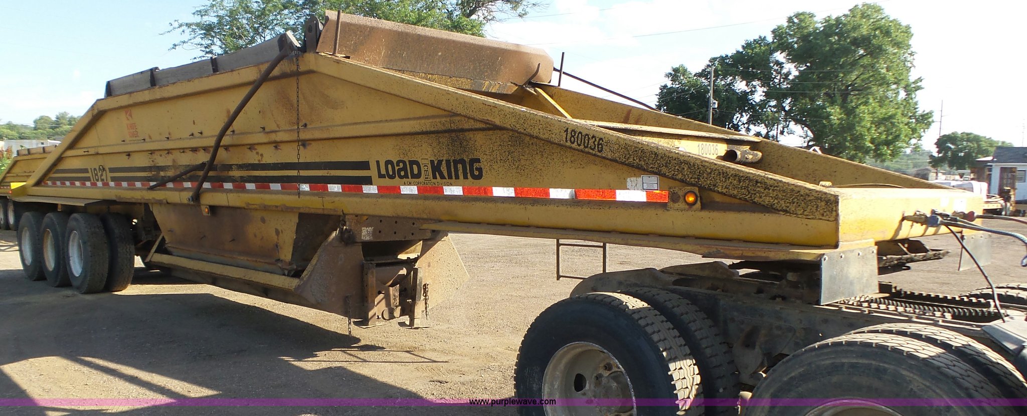 Purple Wave is selling a used Bottom Dump Trailer in Iowa. This item is a 1987 Load King 1827-4-3 bottom dump trailer with the following: 42' overall length, 96"W, 8" wood side boards, 18 cu. yd. capacity, Dual pneumatic cylinders, Air operated clamshell gate, Trailer controls, Manual tarp, Rear push block, Dual leg landing gear, Fifth wheel plate, Triple axle, Spring suspension, Air brakes, Steel wheels, 11R22.5 tires, GVWR 68,060 lbs, GAWR 14,400 lbs, 14,060 lbs tare weight, Rear gate control valve body will be installed prior to auction, Unit# 180036