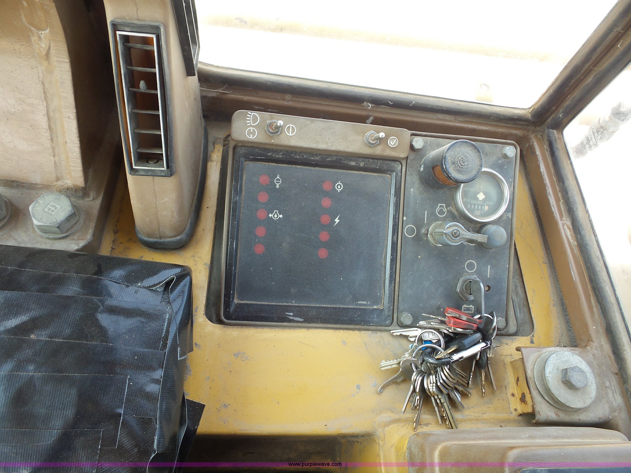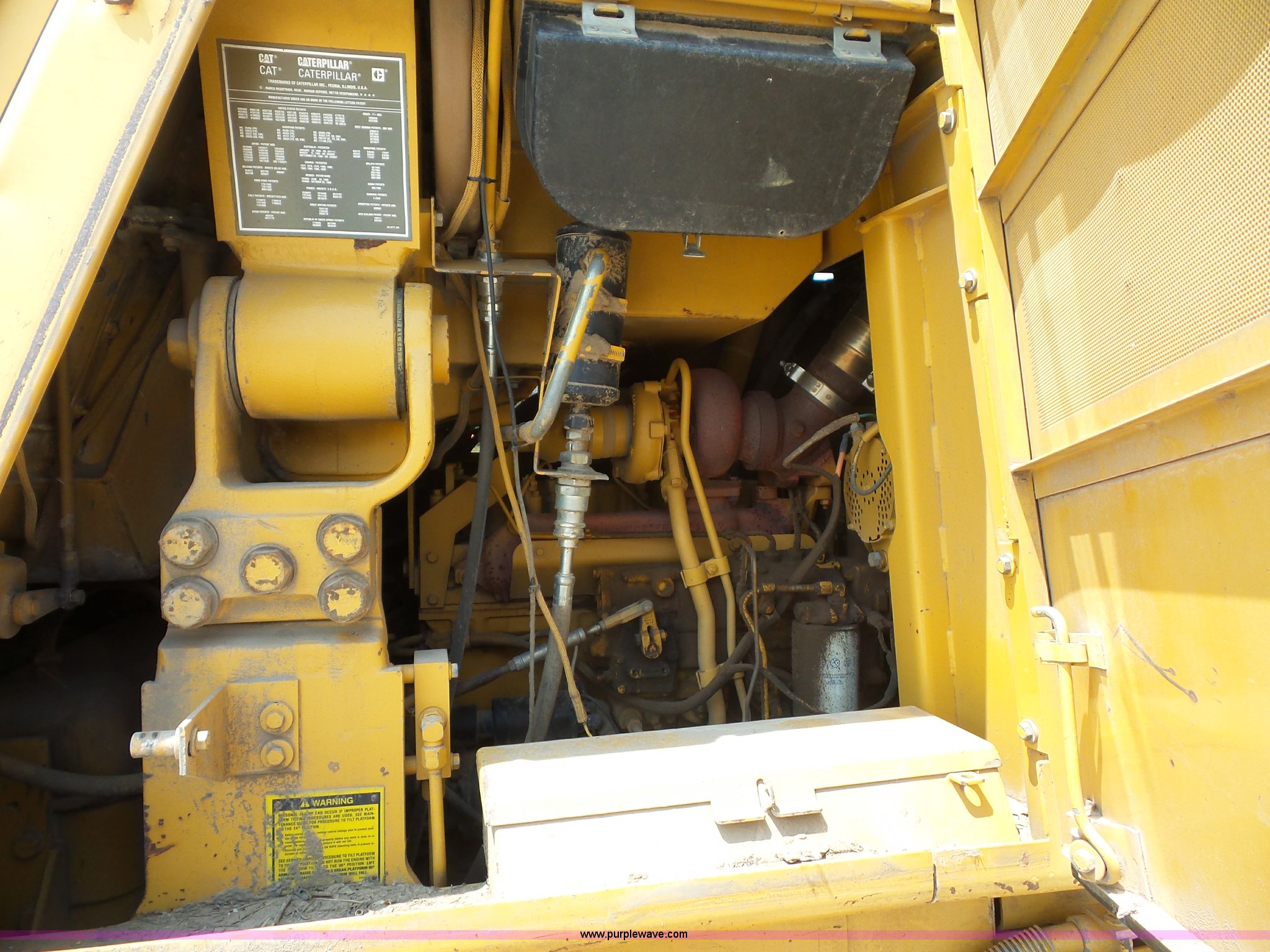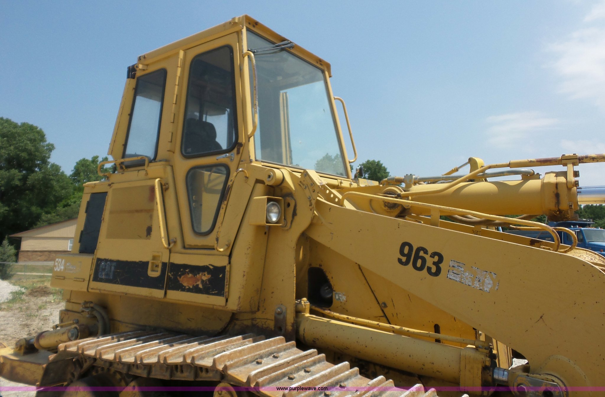 Purple Wave is selling a used Crawler Loader in Missouri. This item is a 1994 Caterpillar 963 track loader with the following: 6,969 hours on meter, Caterpillar 3304 four cylinder turbo diesel engine, Serial 12Z5154, Hydrostatic transmission, Enclosed cab, AC and Heat, Unknown operating condition of AC, Front and rear work lights, 100"W general purpose bucket, Bolt-on cutting edge, (8) teeth, Rear ripper, (3) shanks, 22"W double grouser track pads, 39,500 lbs. base operating weight, Hydraulic leak, Serial 21Z05350