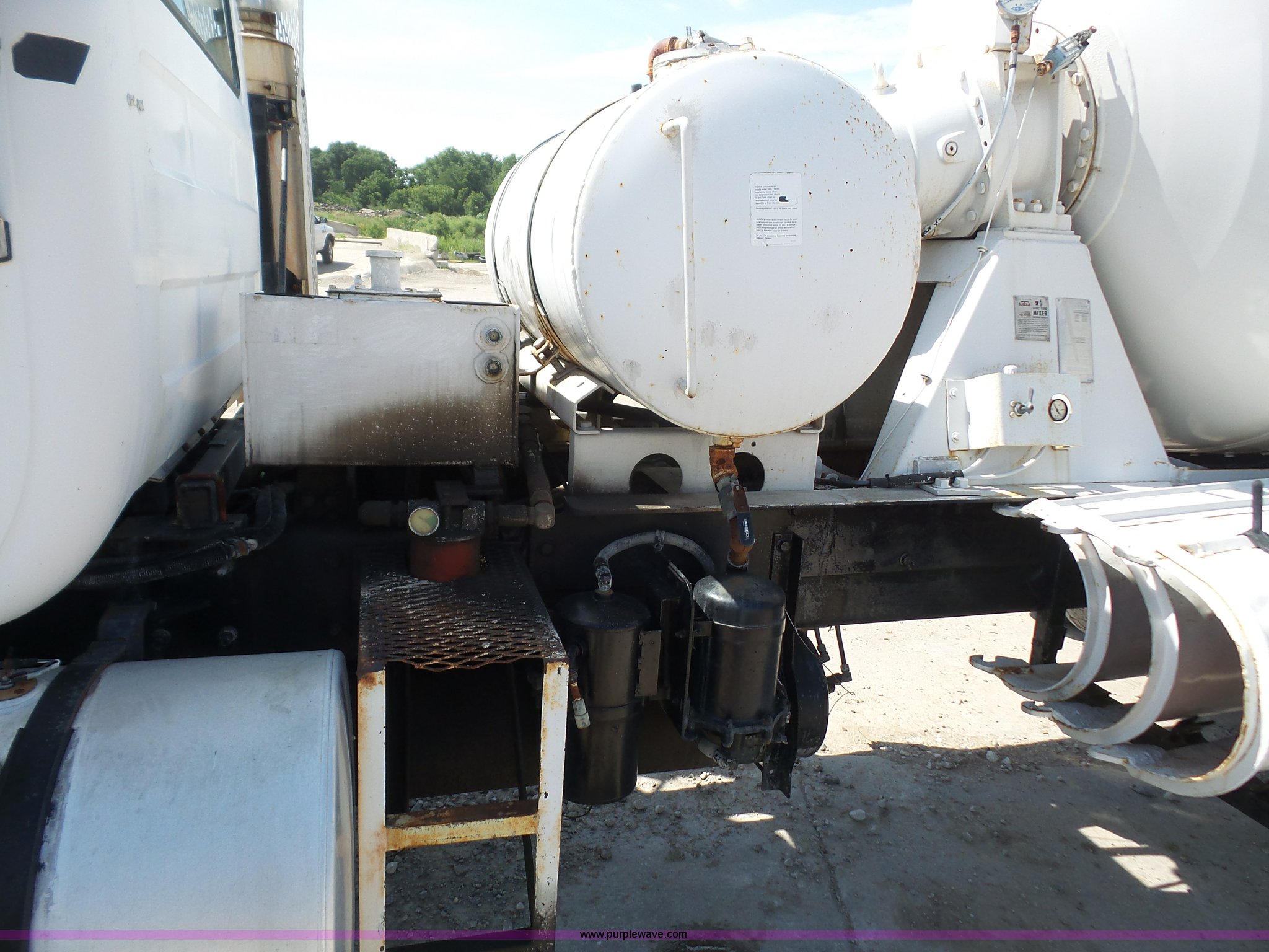 Purple Wave is selling a used Ready Mix or Pump Truck in Kansas. This item is a 1995 Mack RD690S mixer truck with the following: 214,506 miles on odometer, 18,353 hours on meter, Mack E7 12.0L L6 turbo diesel engine, Maxitorque T2080 eight speed manual transmission, Triple axle, Tag lift axle, Heat, AM/FM, Air suspension seat, Drum/axle controls, MTM mixer bed, 9.5 cu. yd. capacity, Rear drum controls, Rear discharge, (3) steel chute extensions, 150 gallon water tank, Ladder, Serial 15251, Single fuel tank, Walking beam suspension, Air brakes, 385/65R22.5 front tires, 11R22.5 rear tires, 255/70R22.5 tag axle tires, Unit# 72