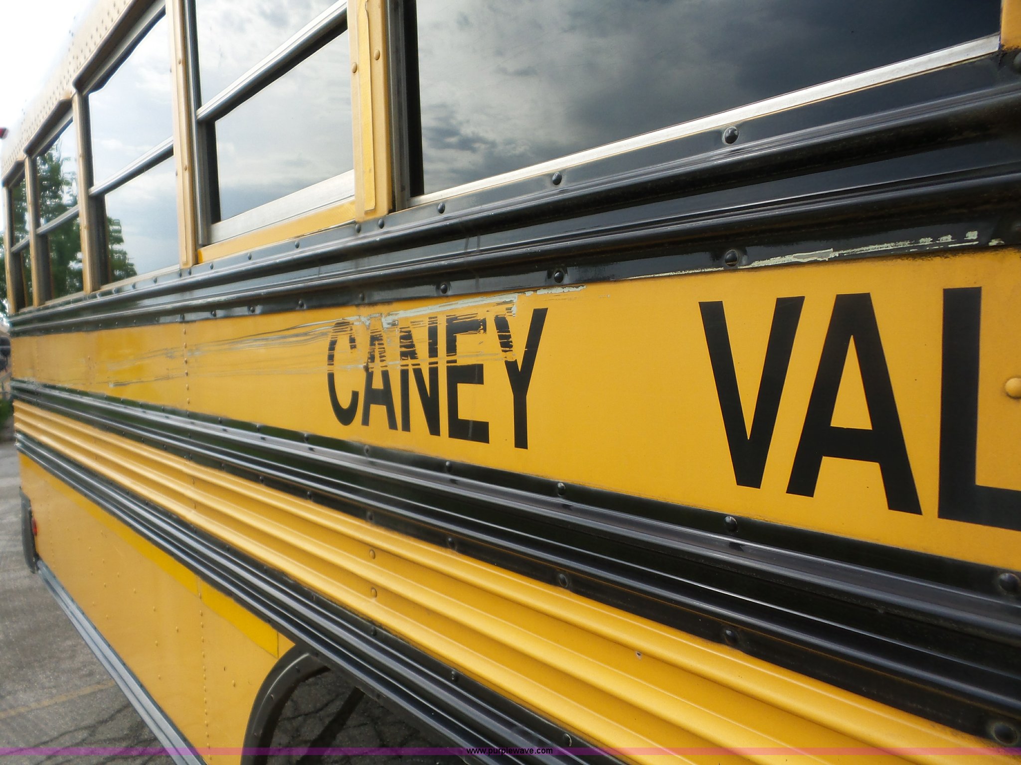 1999 Chevrolet school bus. 121,029 miles on odometer, Caterpillar 3126 7.2L six cylinder turbo diesel engine, Automatic transmission, Single axle, Heat, 65 passenger capacity, Ceiling, front, and rear emergency egress, Lighted stop sign, Blue Bird body, Spring suspension, 10R22.5 tires, GVWR 27,960 lbs, Unit# 81. Oklahoma title.. Title distribution may be delayed up to 14 days from verification of funds. 1GBL7T1C7WJ112885. Caney Valley School. 620 Wyndotte Ave. Ramona, OK 74061