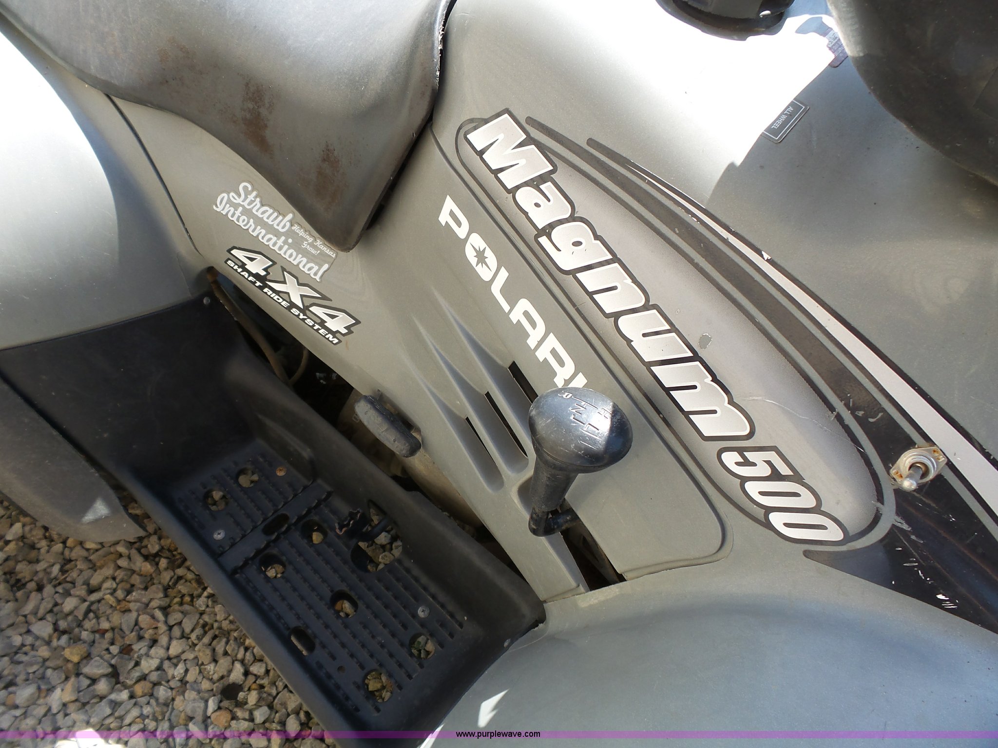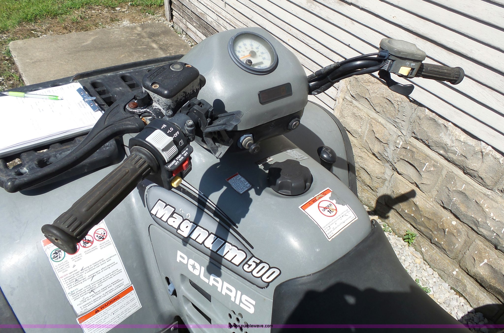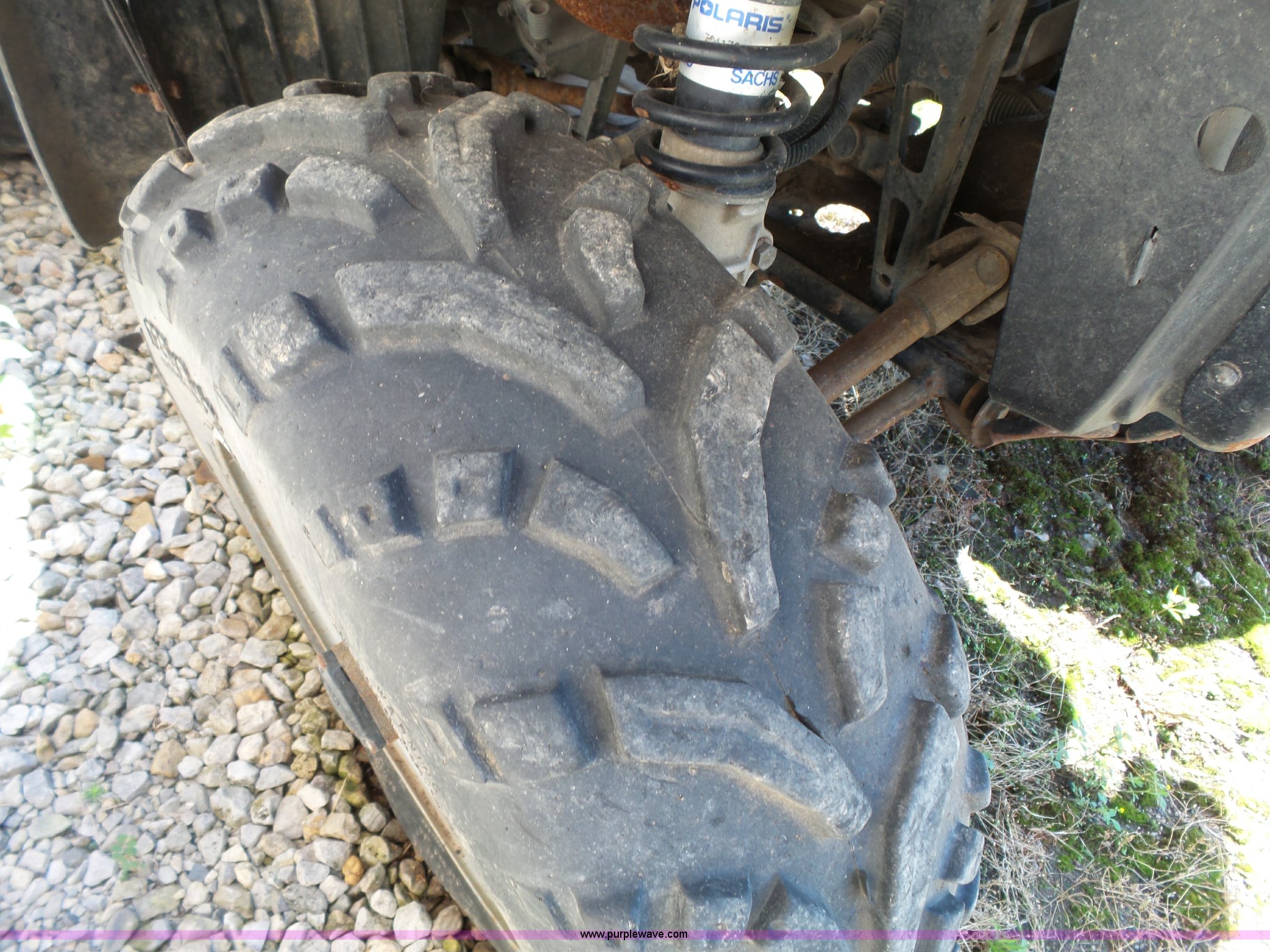 Purple Wave is selling a used ATV in Kansas. This item is a 2001 Polaris 500 ATV with the following: Gas engine, Automatic transmission, Four wheel drive, 25x8-12 front tires, 25x11-10 rear tires, No keys, Unknown operating condition