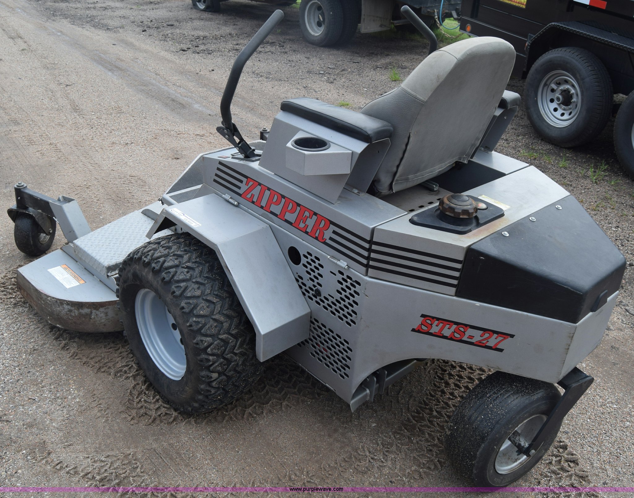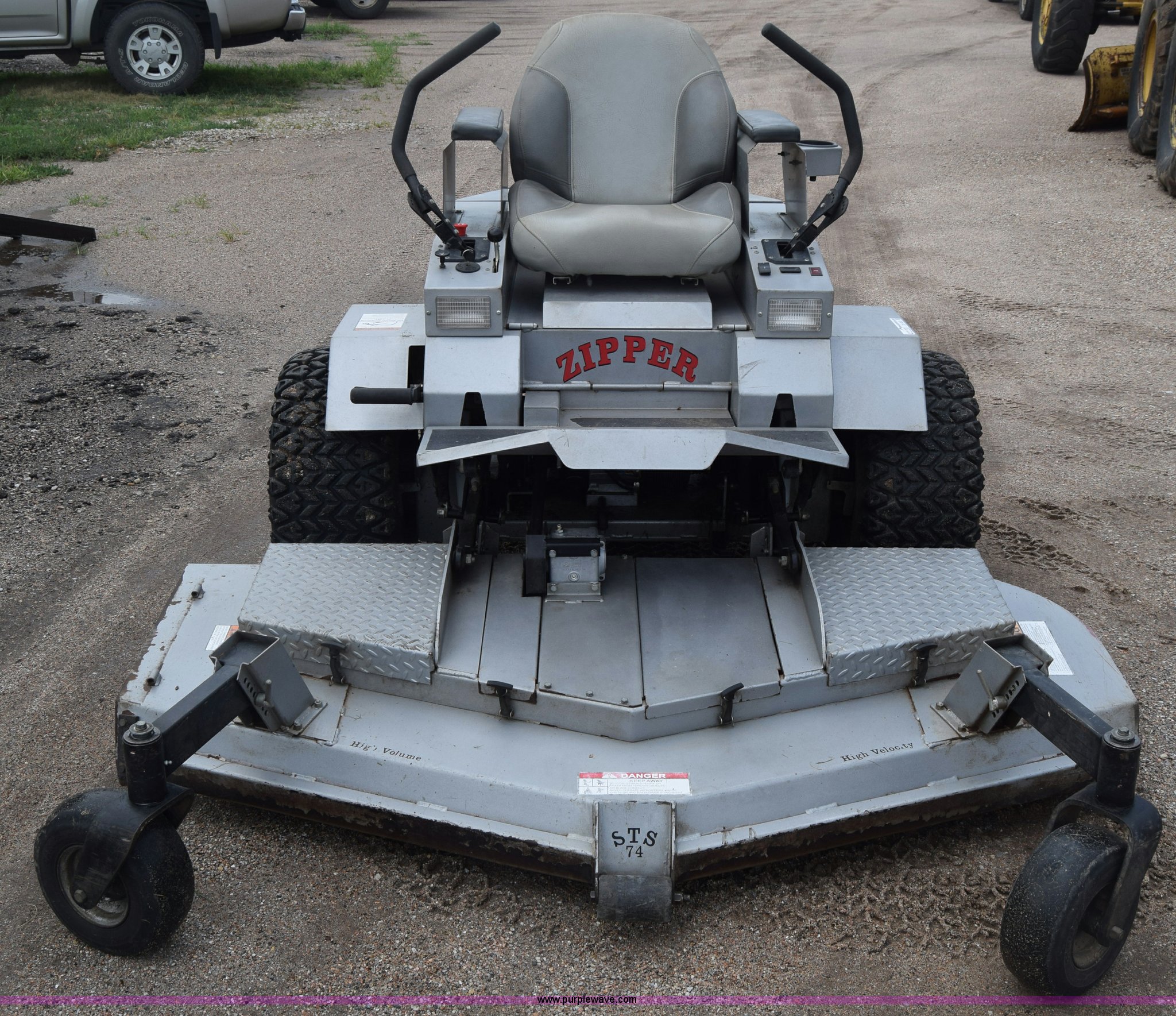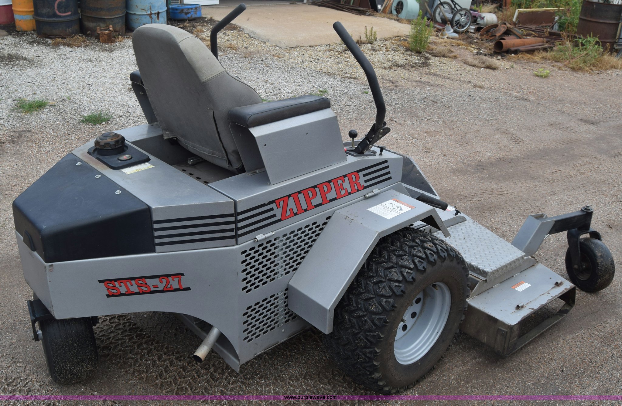Purple Wave is selling a used Commercial Turf Mower in Kansas. This item is a 2007 Zipper STS-27 ZTR lawn mower with the following: 872 hours on meter, 1,222 total hours, Hour meter replaced at 850 hours, 74" cut, Guardian gas engine, Hydrostatic transmission, Lights, 25x12.50-12 tires