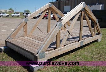 Purple Wave is selling a used Building Materials in Oklahoma. This item is a Bridge with the following: 13'L x 5'10"W x 5'H, Pine construction, Sale# 1647KP