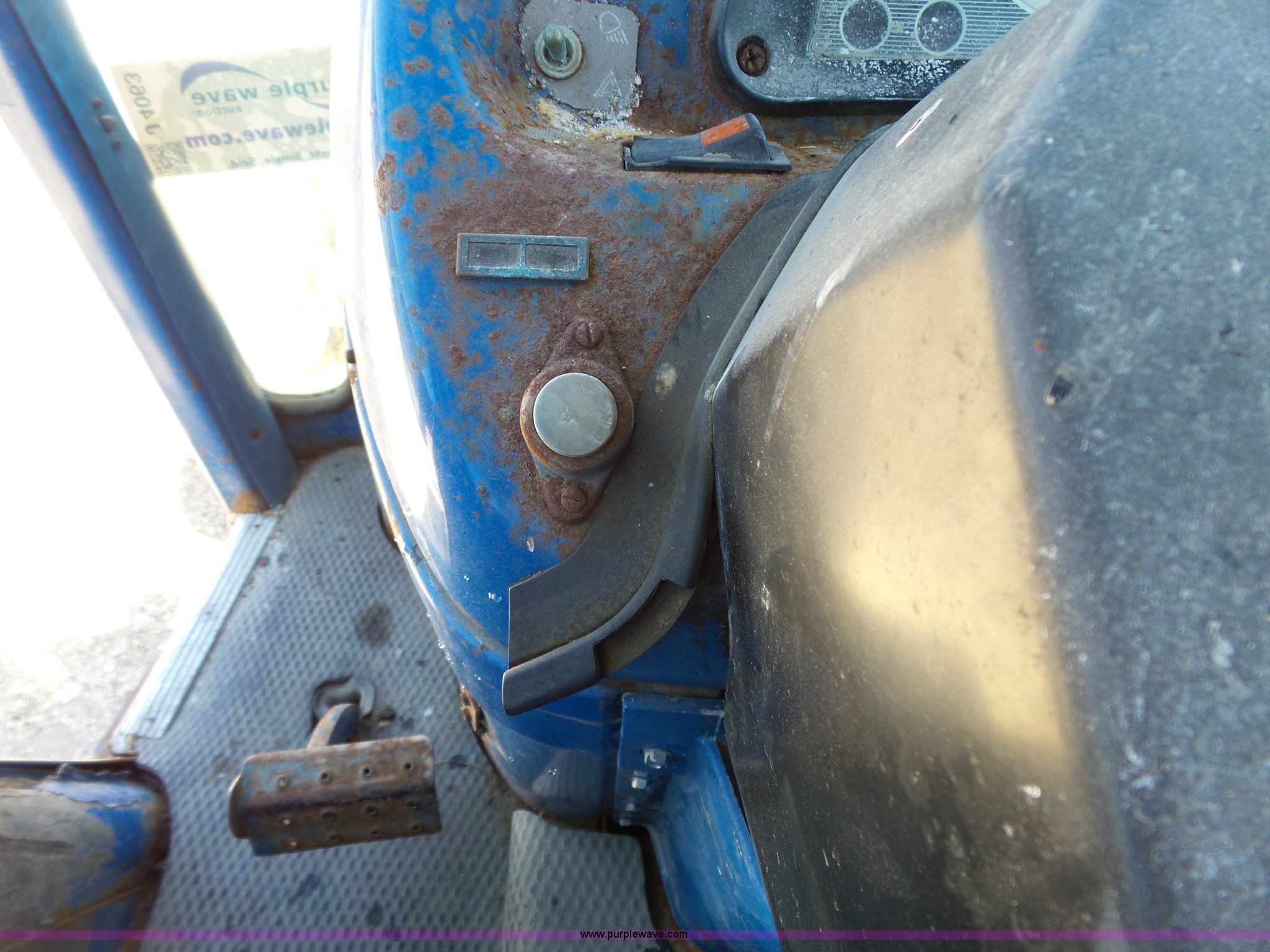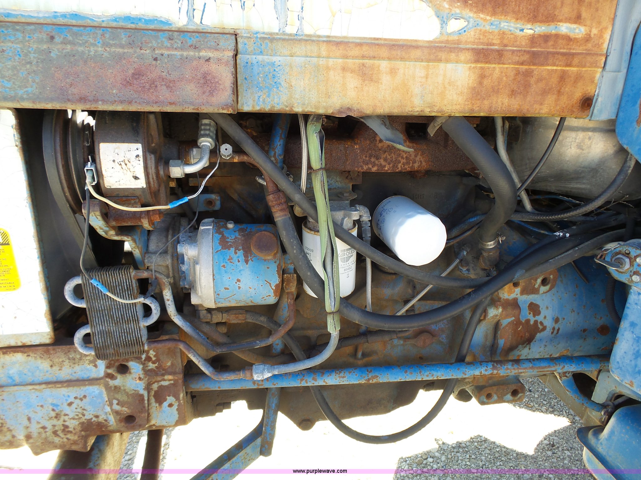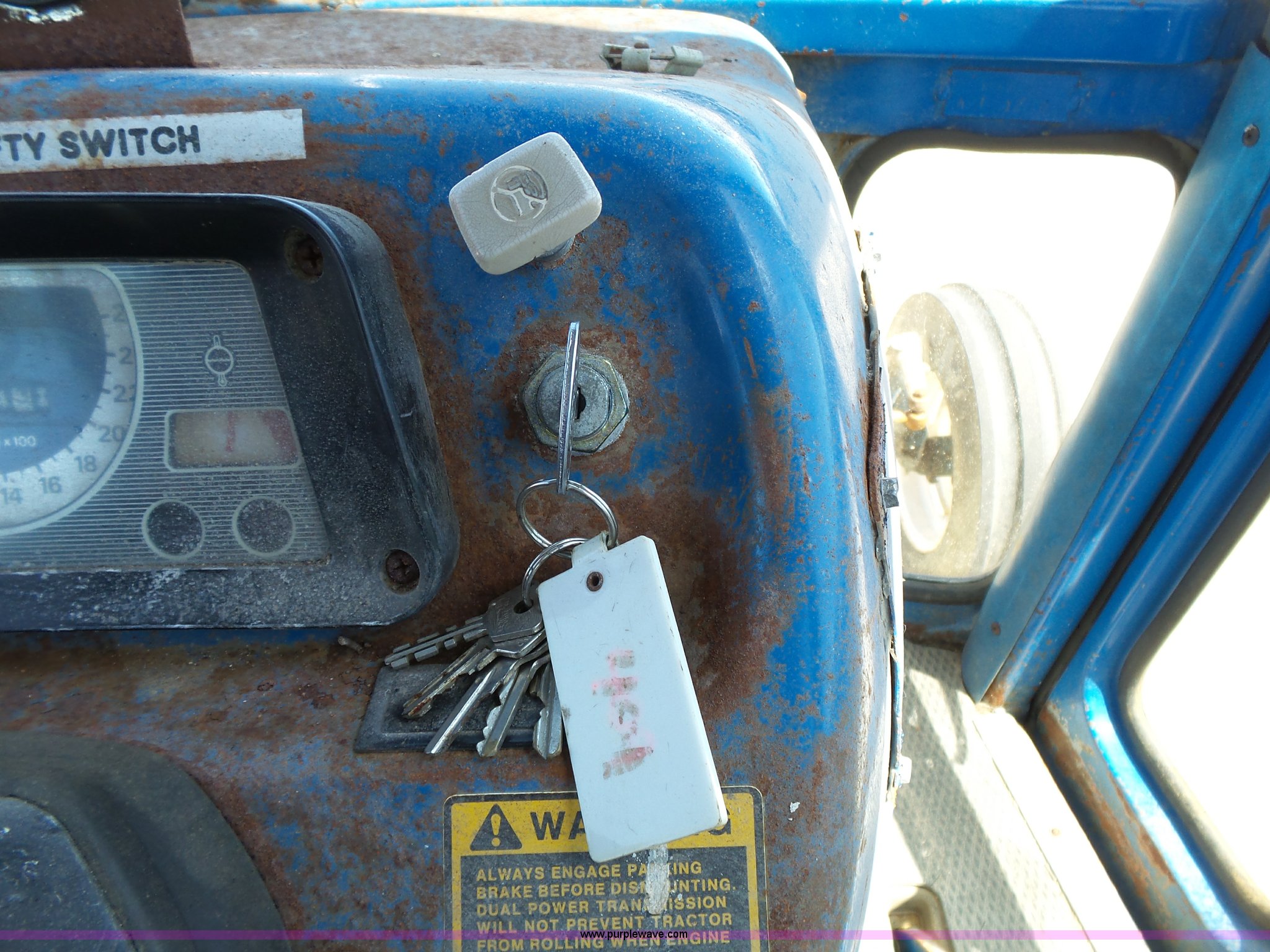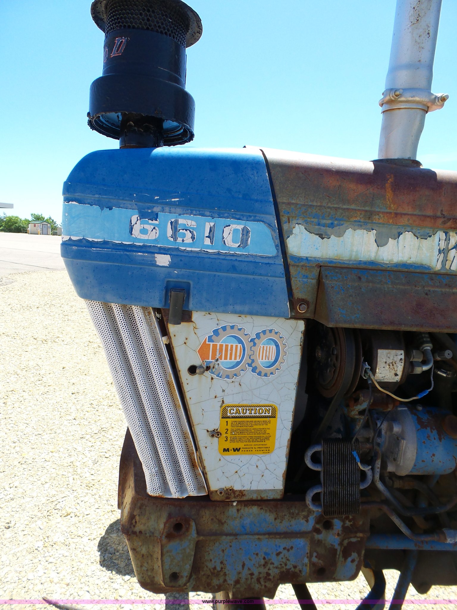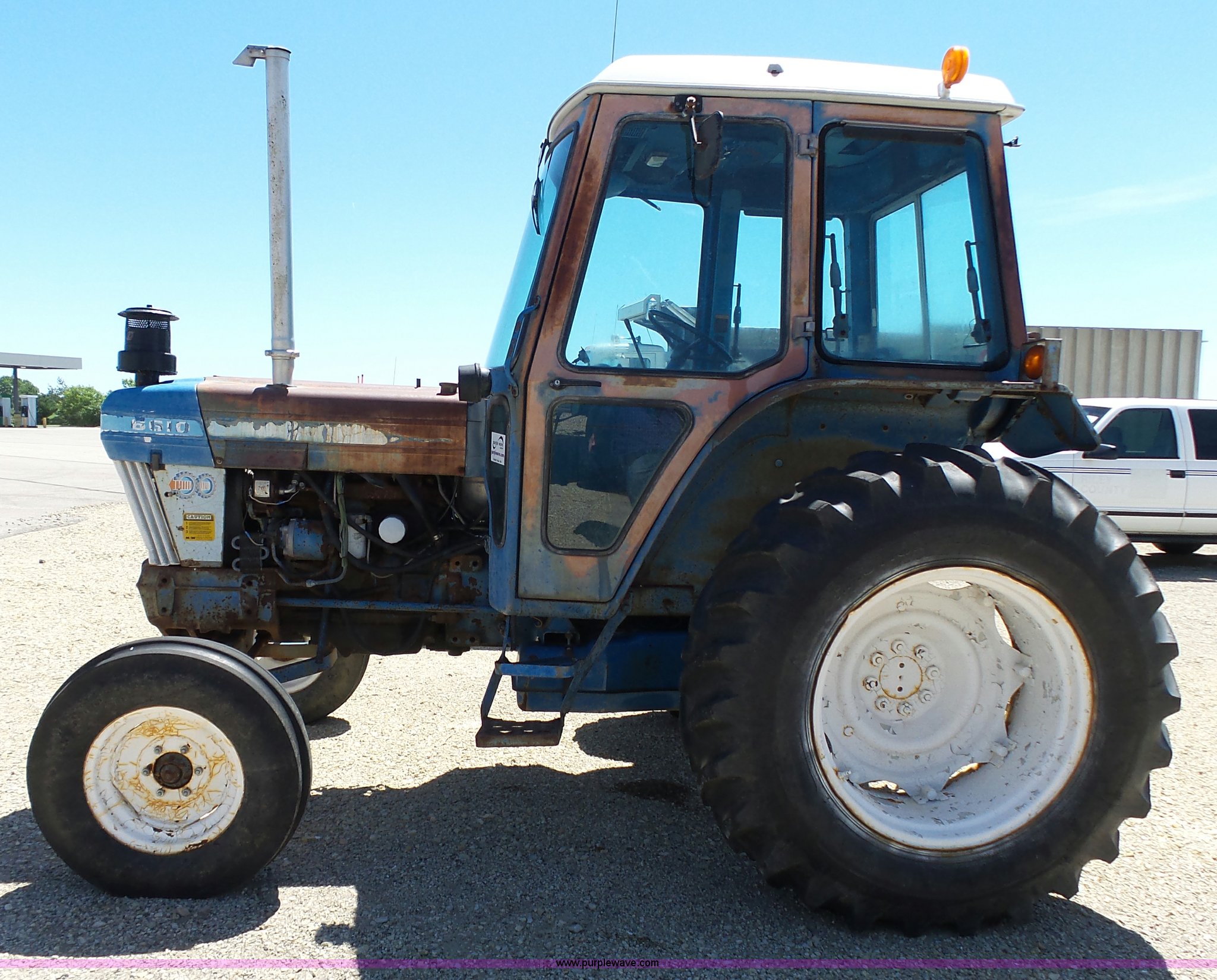 Purple Wave is selling a used Tractor in Kansas. This item is a Ford 6610 tractor with the following: 6,044 hours on meter, Ford 4.4L four cylinder diesel, 16F-8R gears, AC and heat, AM/FM/cassette, Vinyl seat, Damaged, Front work lights, Wiper, Block heater, Three point, 540 PTO, Draw bar, (3) rear hydraulic remote sets, 7.50-16L front tires, 16.9-30 rear tires, Rust, Paint faded, Serial E800138, Unit# 401