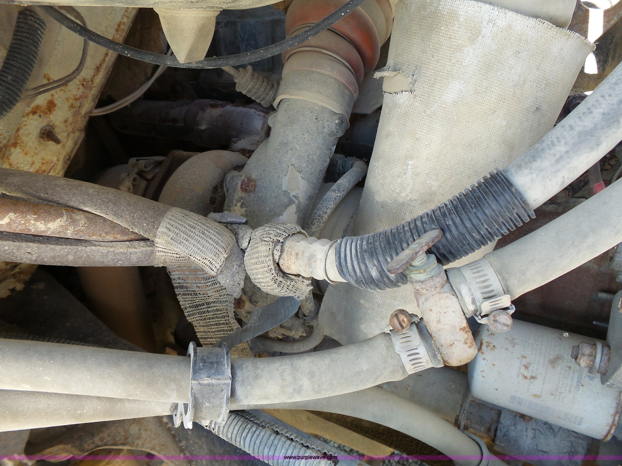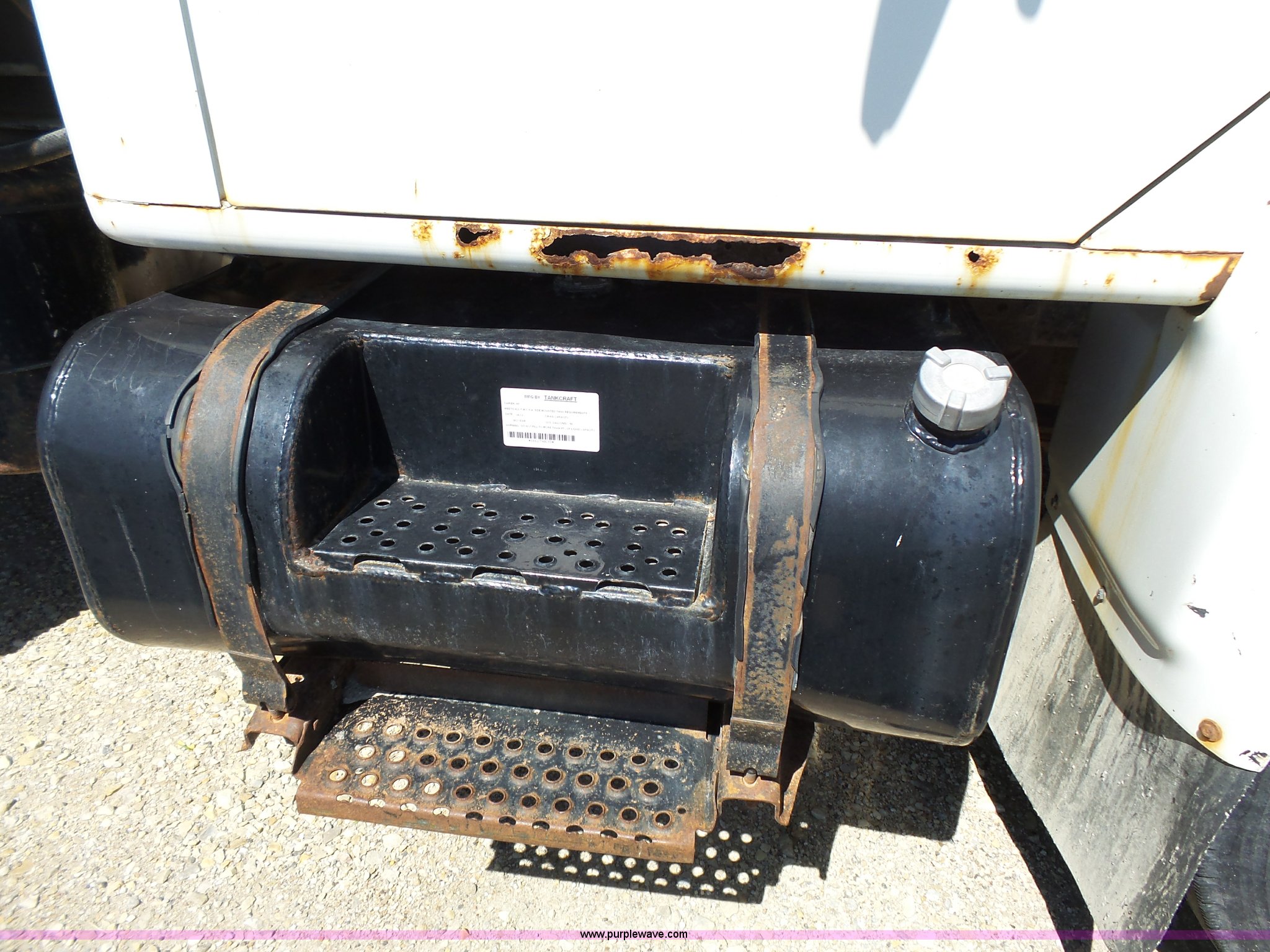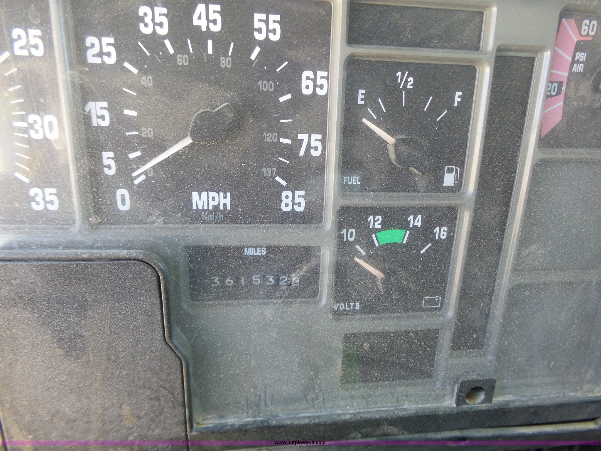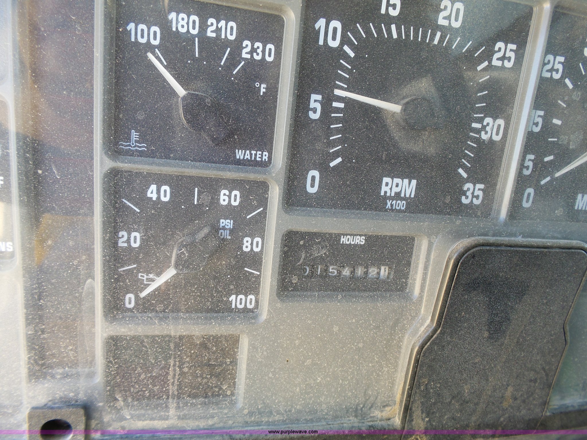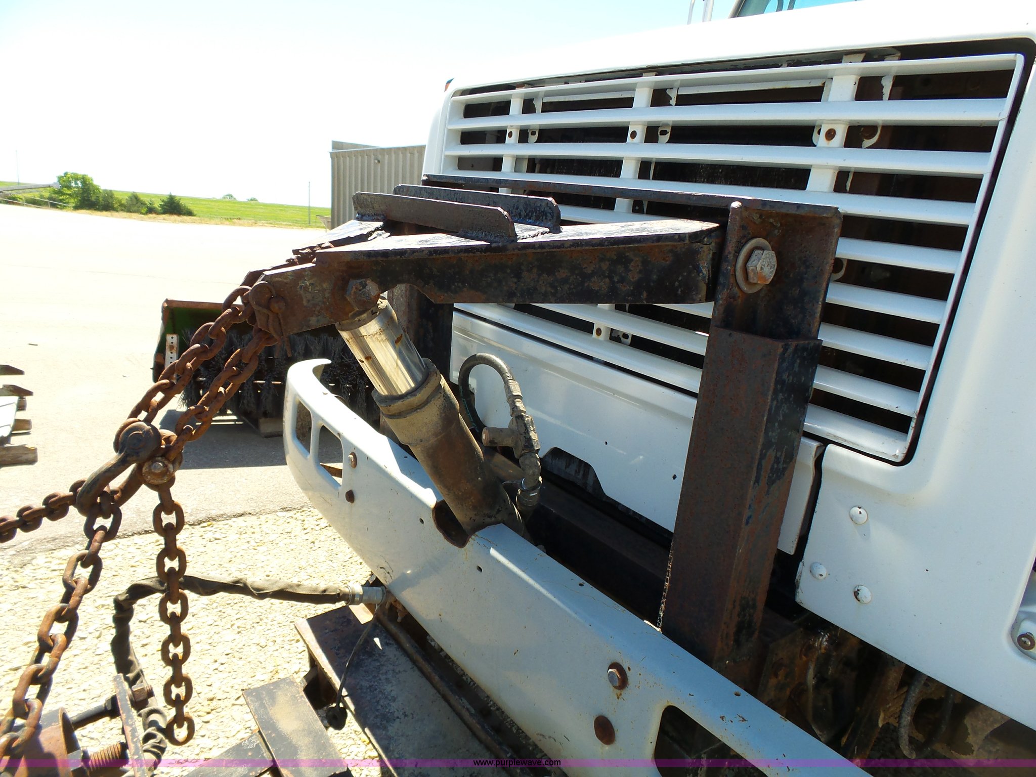 Purple Wave is selling a used Construction Dump Truck in Kansas. This item is a 1997 International 4900 dump truck with the following: 361,532 miles on odometer, 15,412 hours on meter, International DT530 8.7L L6 turbo diesel engine, Automatic transmission, Tandem axle, Inter-axle differential lock, Heat, Tilt, Telescoping steering wheel, AM/FM/weatherband, Heated mirrors, Air suspension seat, Uniden CB radio, Block heater, Chelsea PTO, Galion 700E steel dump bed, 16'L x 8'W, 4' side height, 12" side board height, Rollover tarp, Single ram hoist, 2000 Highway tailgate conveyor, Model T6C-18, 98", Serial 111916,, Toolbox, 11'W plow, Side markers, Swenson/Greesen 6RS11 spreader, Dual fuel tanks, 50 and 56 gallon capacities, Spring suspension, Hydraulic brakes, 18' wheelbase, 12R22.5 tires, Interior/exterior cosmetic damage, Rust, Additional parts included, Unit# 27,28