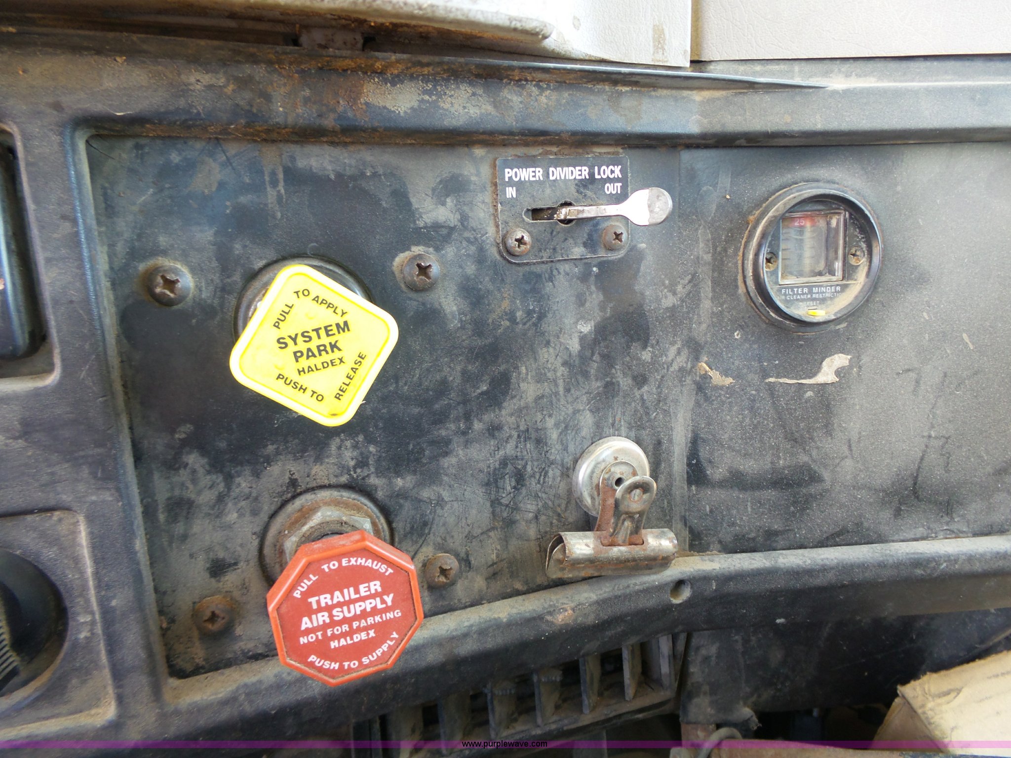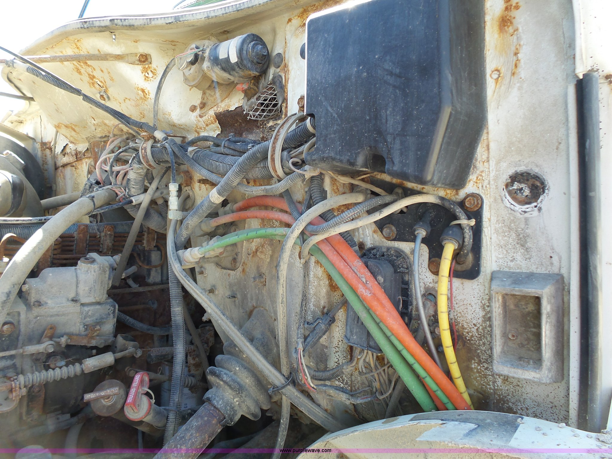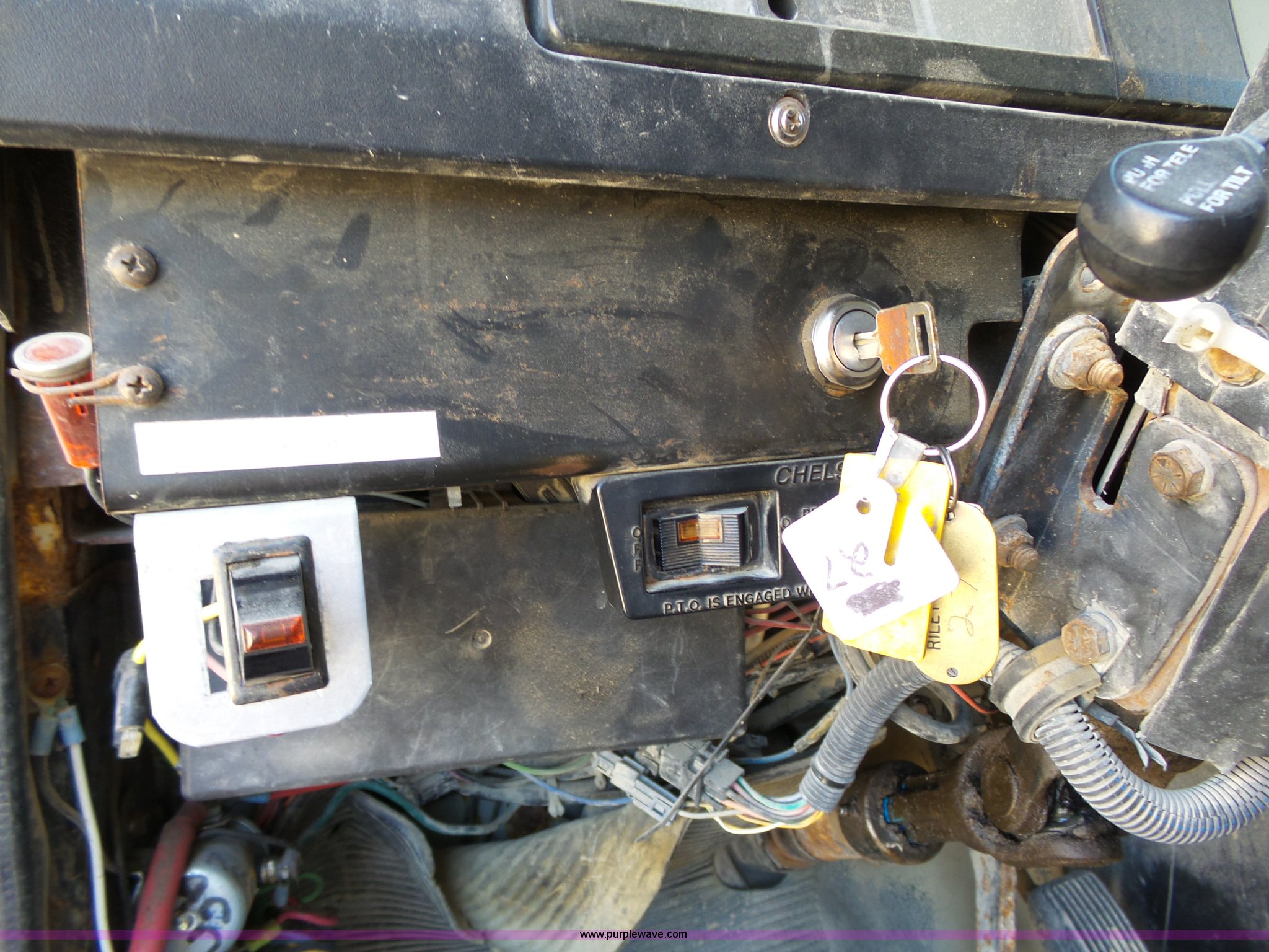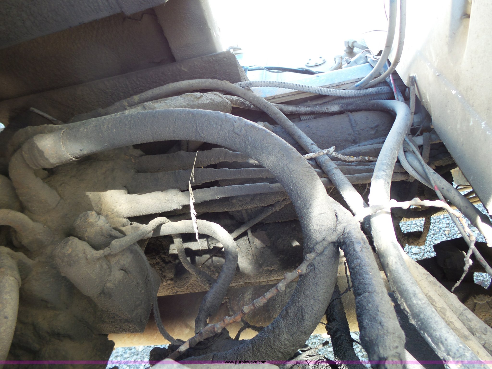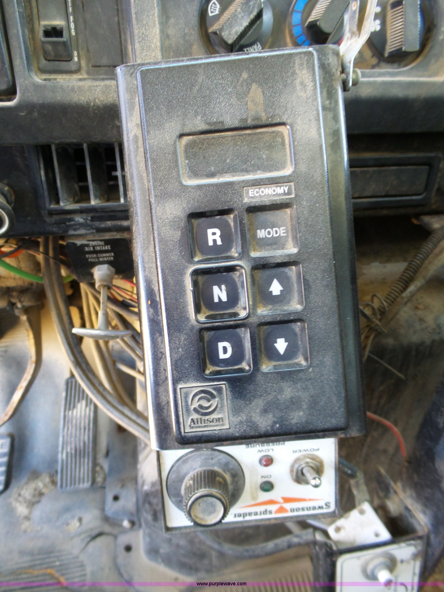 Purple Wave is selling a used Construction Dump Truck in Kansas. This item is a 1997 International 4900 dump truck with the following: 361,532 miles on odometer, 15,412 hours on meter, International DT530 8.7L L6 turbo diesel engine, Automatic transmission, Tandem axle, Inter-axle differential lock, Heat, Tilt, Telescoping steering wheel, AM/FM/weatherband, Heated mirrors, Air suspension seat, Uniden CB radio, Block heater, Chelsea PTO, Galion 700E steel dump bed, 16'L x 8'W, 4' side height, 12" side board height, Rollover tarp, Single ram hoist, 2000 Highway tailgate conveyor, Model T6C-18, 98", Serial 111916,, Toolbox, 11'W plow, Side markers, Swenson/Greesen 6RS11 spreader, Dual fuel tanks, 50 and 56 gallon capacities, Spring suspension, Hydraulic brakes, 18' wheelbase, 12R22.5 tires, Interior/exterior cosmetic damage, Rust, Additional parts included, Unit# 27,28