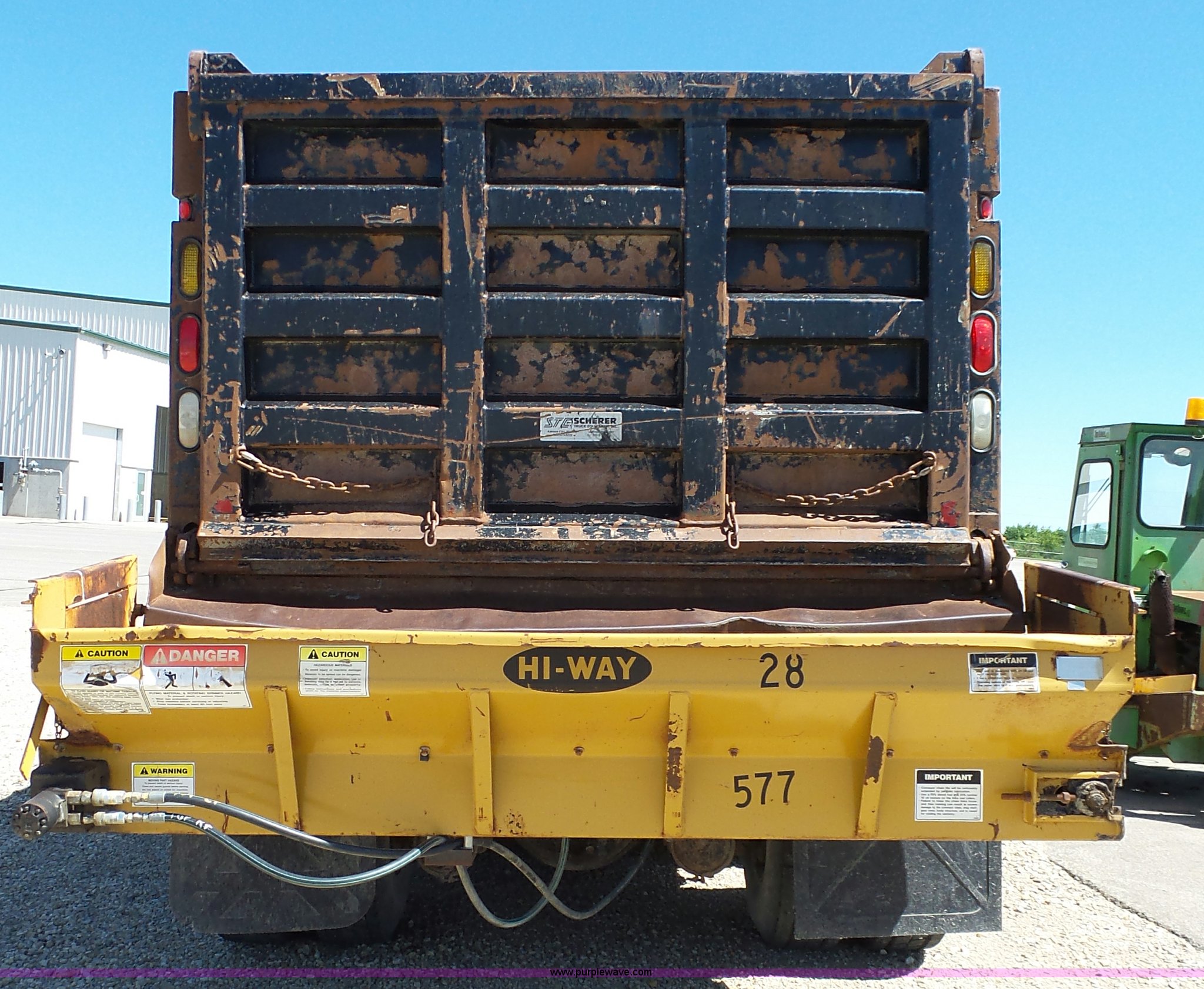 1997 International 4900 dump truck. 361,532 miles on odometer, 15,412 hours on meter, International DT530 8.7L L6 turbo diesel engine, Automatic transmission, Tandem axle, Inter-axle differential lock, Heat, Tilt, Telescoping steering wheel, AM/FM/weatherband, Heated mirrors, Air suspension seat, Uniden CB radio, Block heater, Chelsea PTO, Galion 700E steel dump bed 16'L x 8'W, 4' side height, 12" side board height, Rollover tarp, Single ram hoist, 2000 Highway tailgate conveyor Model T6C-18, 98", Serial 111916, Toolbox, 11'W plow Side markers, Swenson/Greesen 6RS11 spreader, Dual fuel tanks 50 and 56 gallon capacities, Spring suspension, Hydraulic brakes, 18' wheelbase, 12R22.5 tires, Interior/exterior cosmetic damage, Rust, Additional parts included, Unit# 27,28. Kansas title.. Seller is a government entity who will be assigning and distributing the title. Please contact the seller for distribution questions. 1HTSHADR2VH442807. Riley County Public Works. 6215 Tuttle Creek Blvd. Manhattan, KS 66503