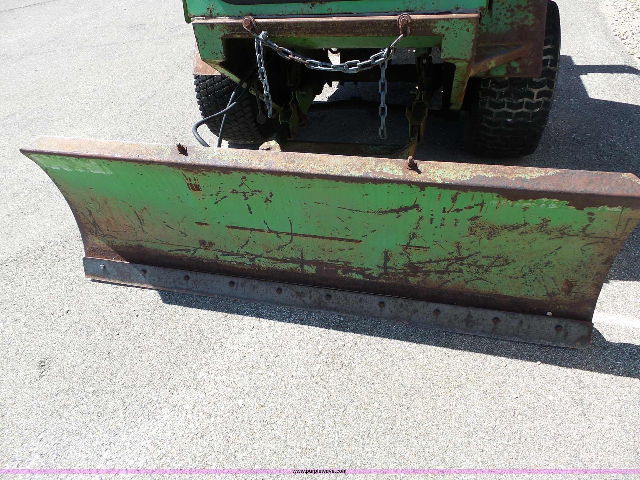 CTL 2800 Turf Runner mower. 2,844 hours on meter, Four cylinder engine, Enclosed cab, Vinyl seat, Strobe light, Front wiper, Front and rear work lights, 6'W deck, 5'W blade Model 60AB, 5'W broom Model HRB60, 23x10.5-12 front tires, 16x6.50-8 rear tires, Serial 706-269. Riley County Public Works. 6215 Tuttle Creek Blvd. Manhattan, KS 66503
