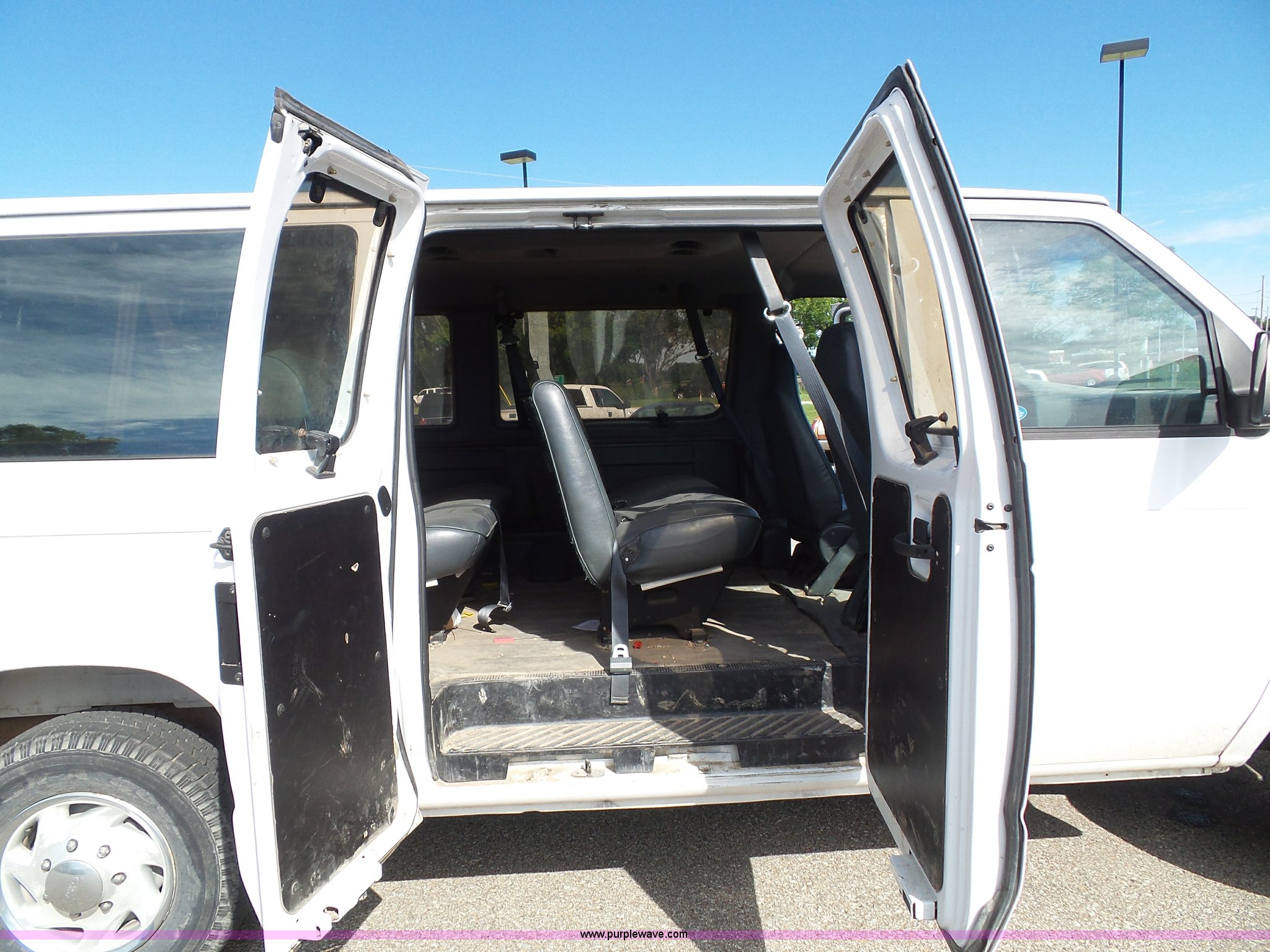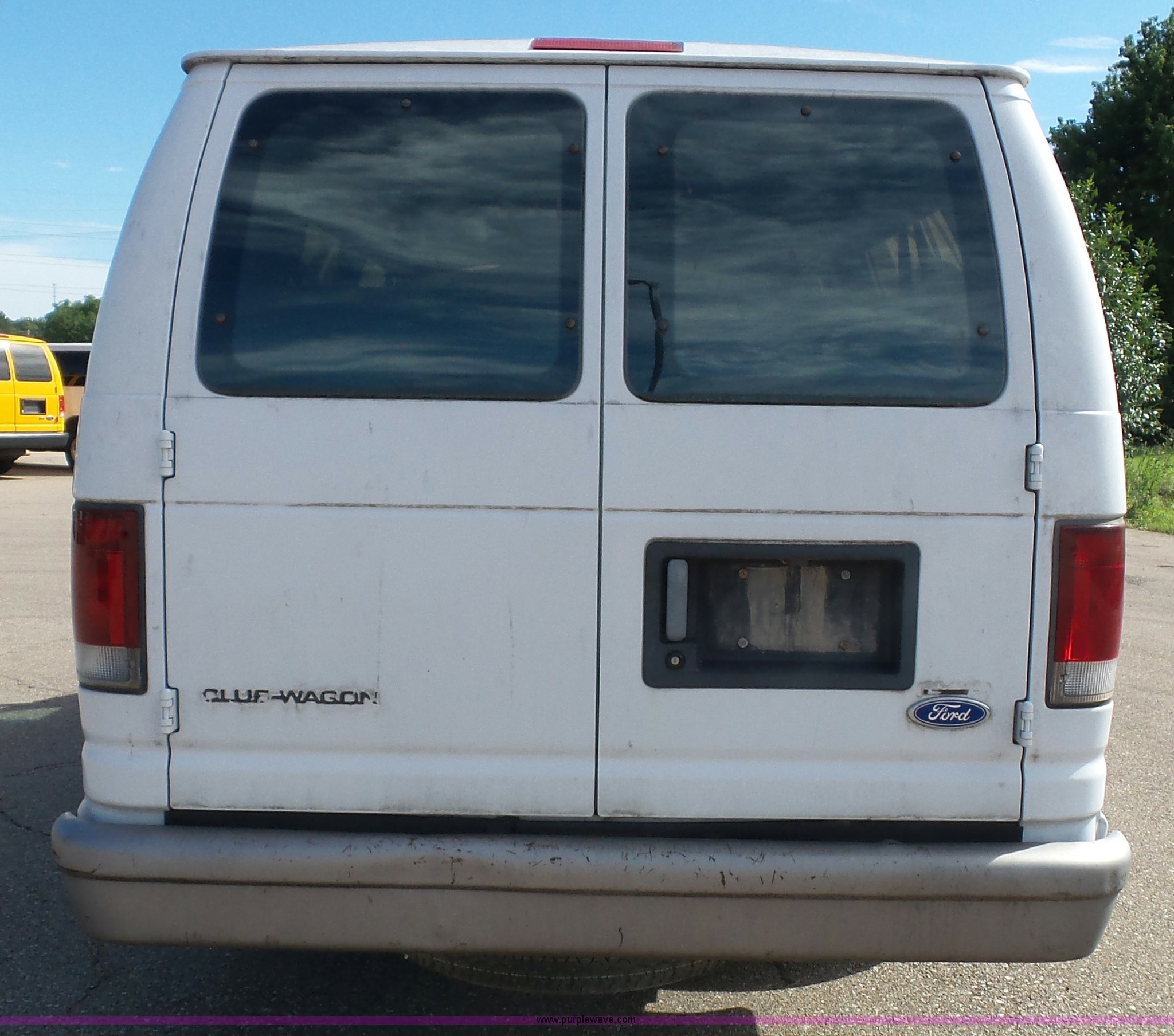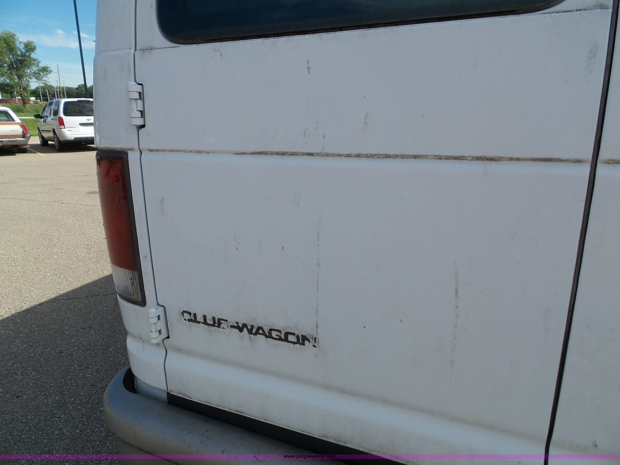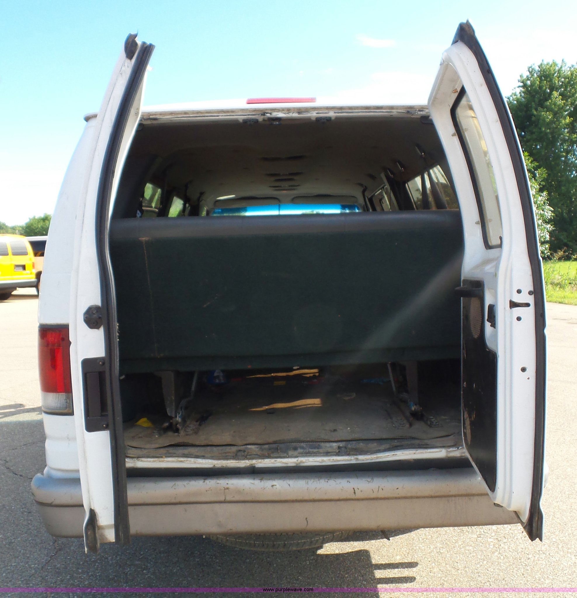 Purple Wave is selling a used Passenger Vehicle in Kansas. This item is a 1996 Ford Club Wagon van with the following: 73,135 miles on odometer, 5.8L V8 OHV 16V gas engine, Automatic transmission, AC and heat, Tilt, Cruise, AM/FM, Manual windows and locks, Vinyl interior, 245/75R16 tires, Rear passenger doors will not open from exterior, Front passenger door will not unlock with key from exterior