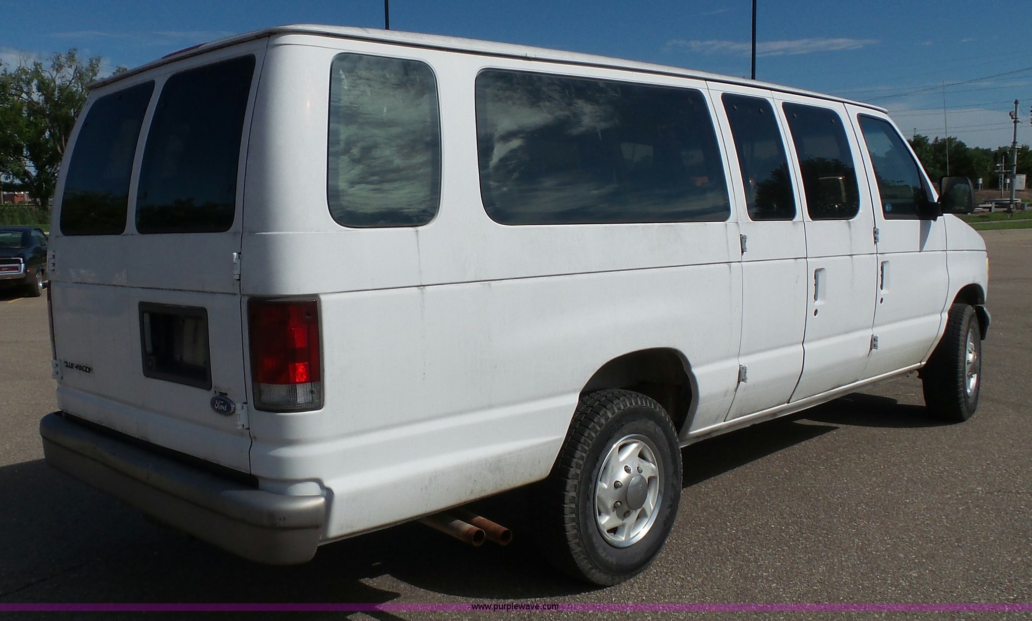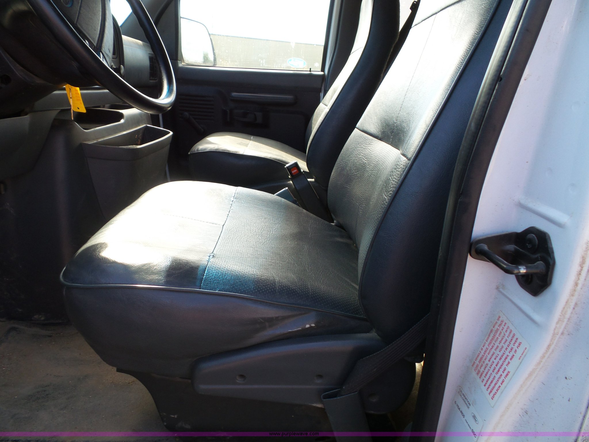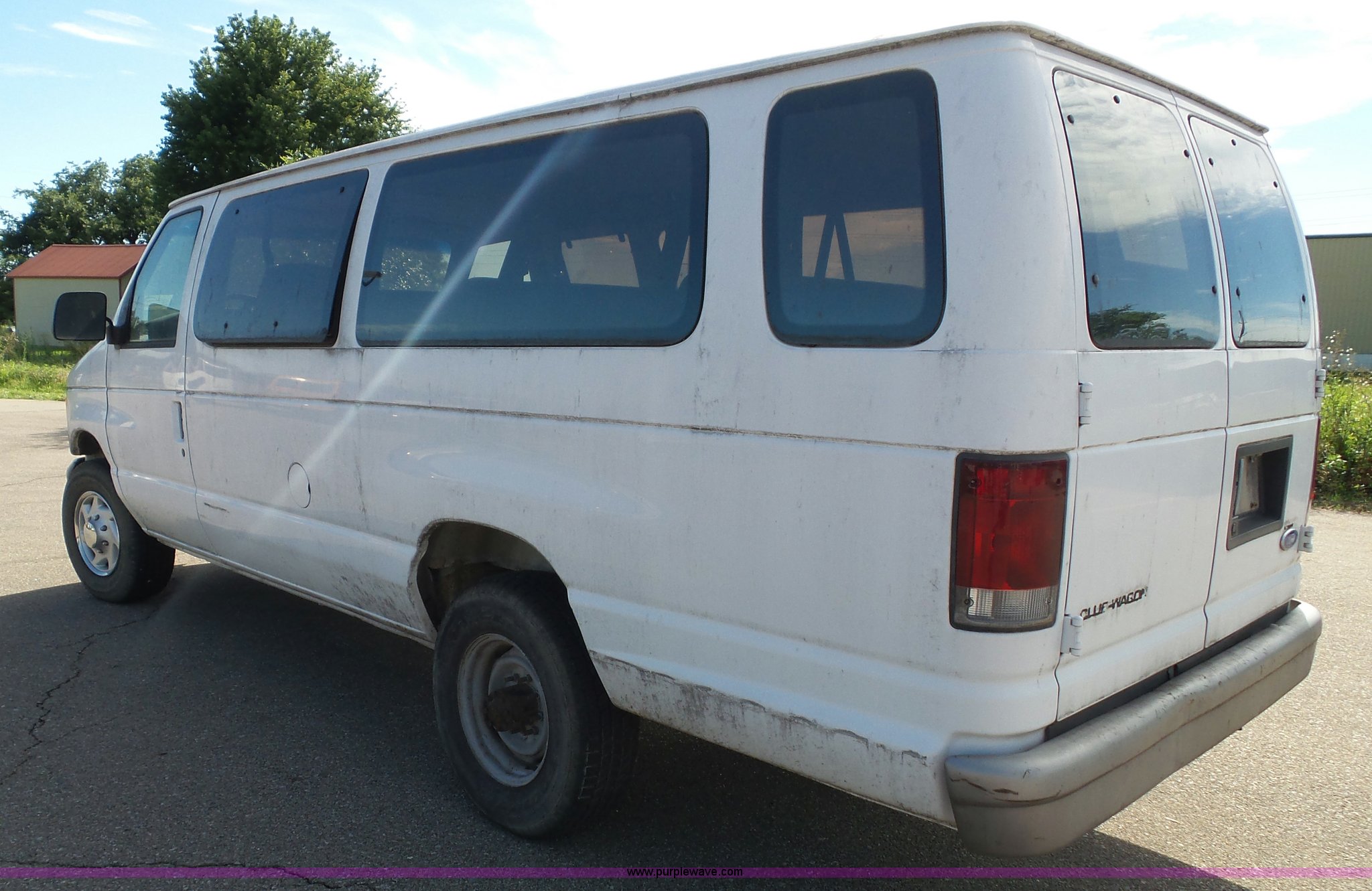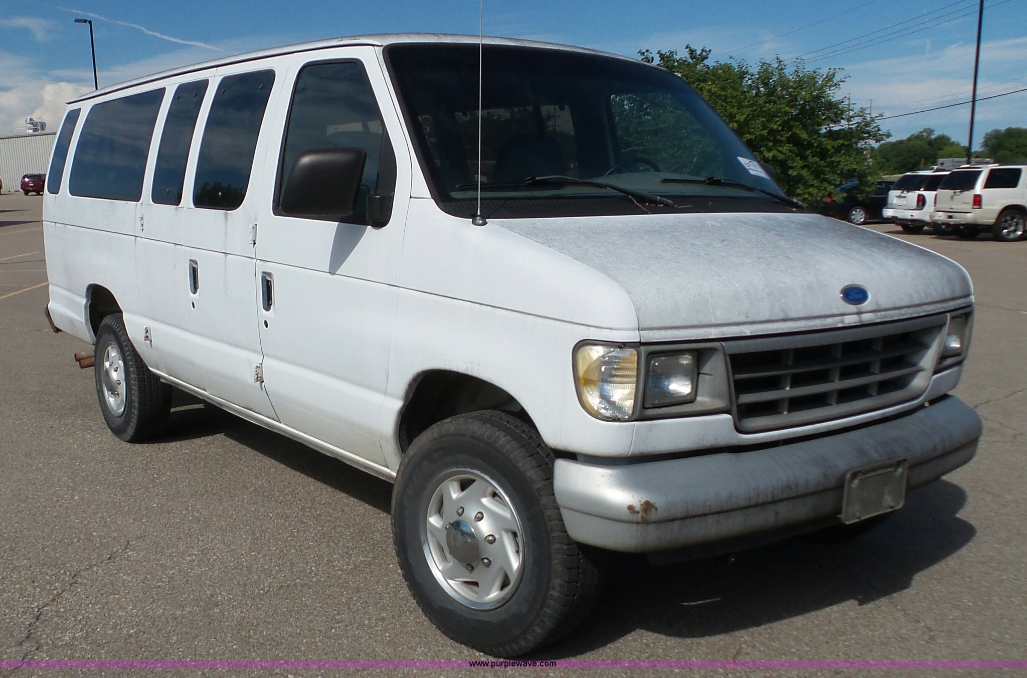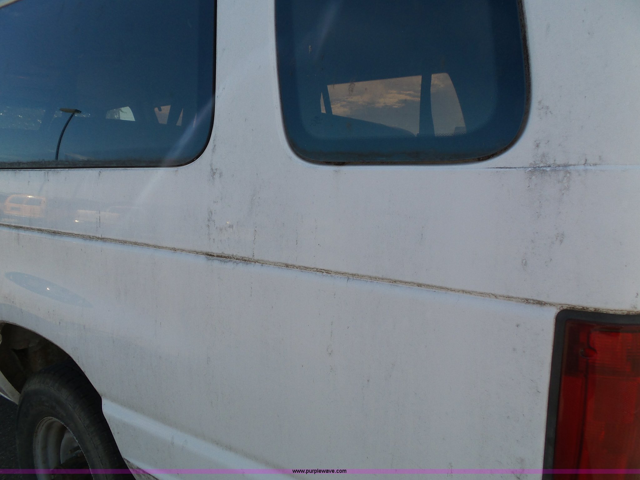 Purple Wave is selling a used Passenger Vehicle in Kansas. This item is a 1996 Ford Club Wagon van with the following: 73,135 miles on odometer, 5.8L V8 OHV 16V gas engine, Automatic transmission, AC and heat, Tilt, Cruise, AM/FM, Manual windows and locks, Vinyl interior, 245/75R16 tires, Rear passenger doors will not open from exterior, Front passenger door will not unlock with key from exterior