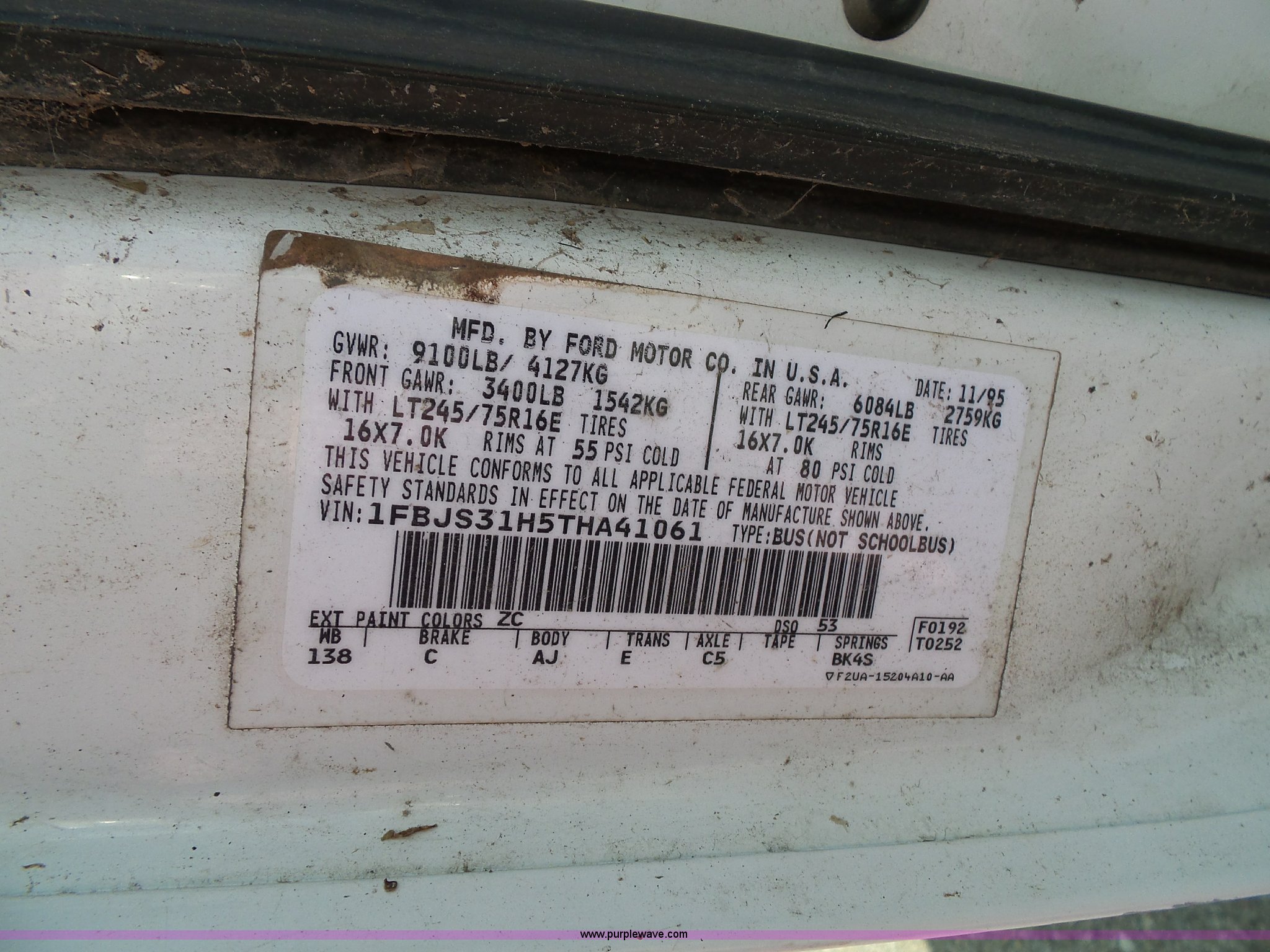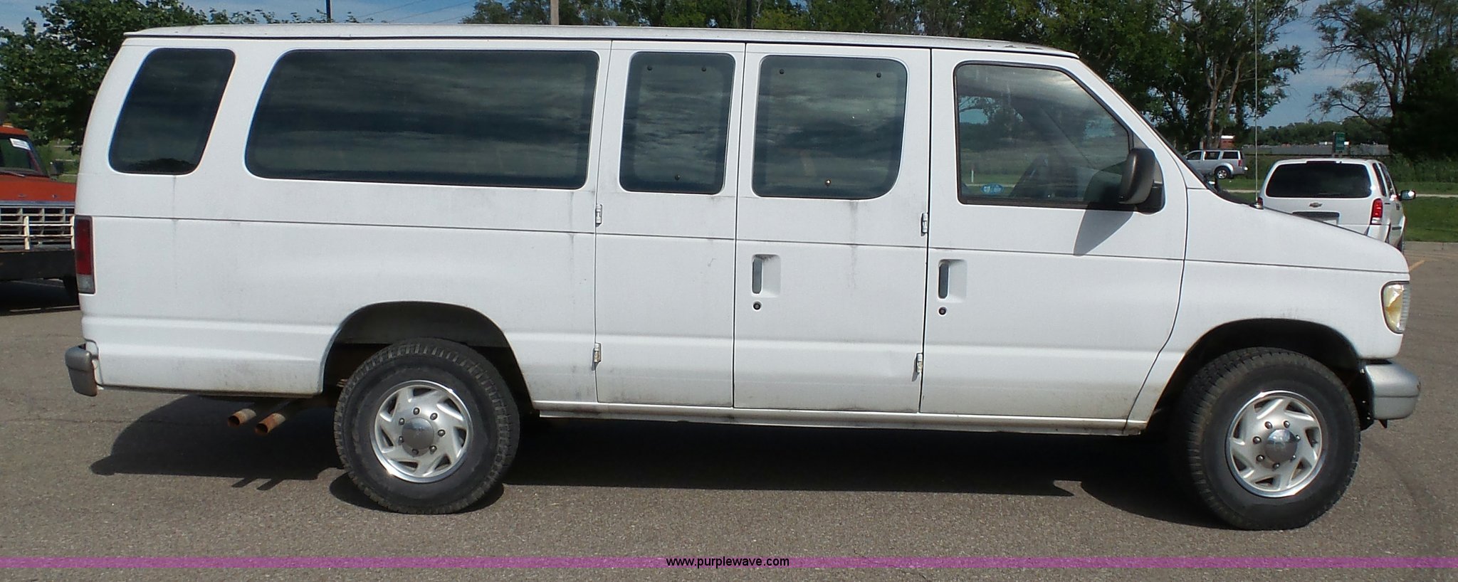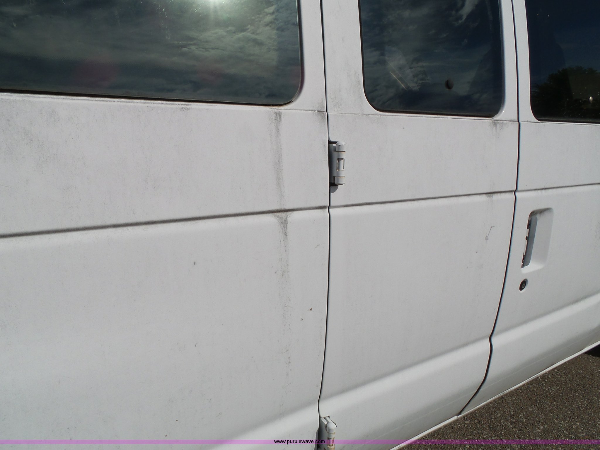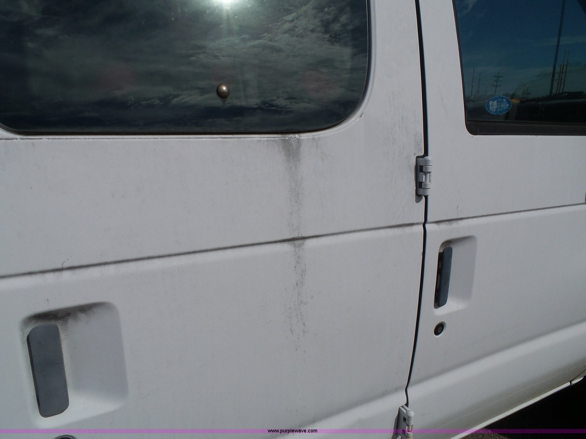 Purple Wave is selling a used Passenger Vehicle in Kansas. This item is a 1996 Ford Club Wagon van with the following: 73,135 miles on odometer, 5.8L V8 OHV 16V gas engine, Automatic transmission, AC and heat, Tilt, Cruise, AM/FM, Manual windows and locks, Vinyl interior, 245/75R16 tires, Rear passenger doors will not open from exterior, Front passenger door will not unlock with key from exterior