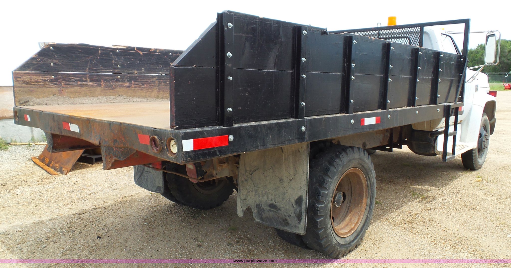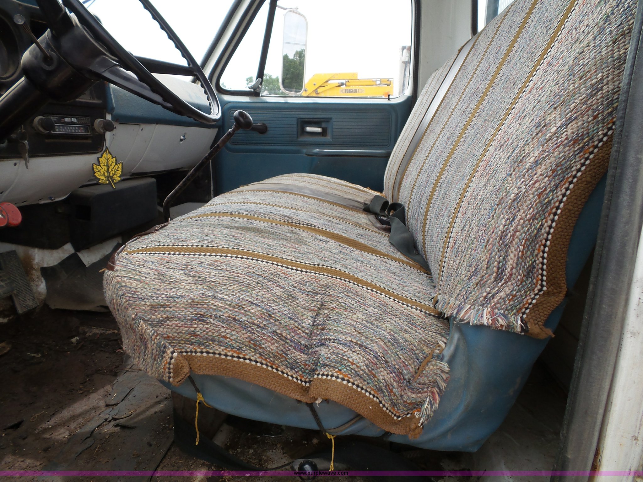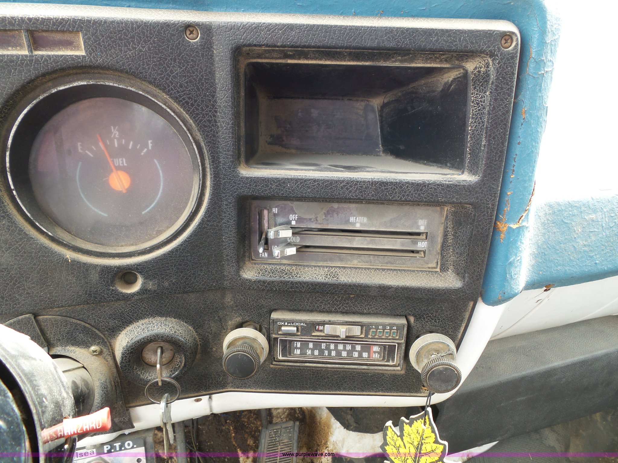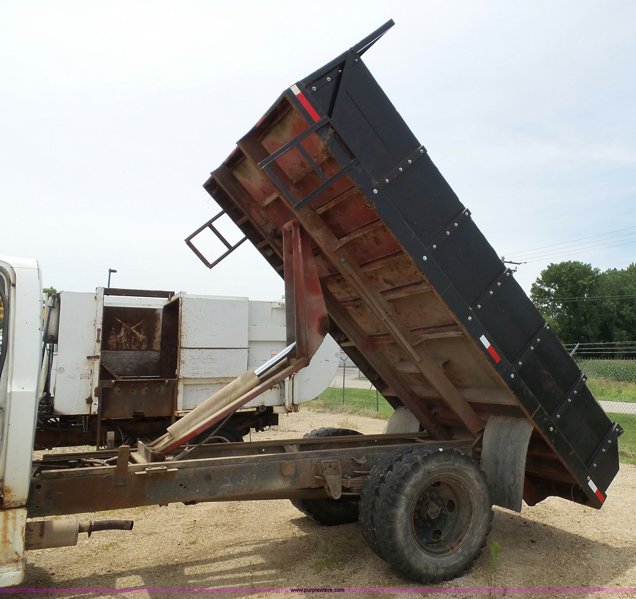 Purple Wave is selling a used Construction Dump Truck in Kansas. This item is a 1978 Chevrolet C60 dump truck with the following: 45,004 miles on odometer, Gas engine, Four speed manual transmission, Single axle, Heat, AM/FM, Vinyl interior, Strobe light, Chelsea PTO, 14'L x 8'W steel dump bed, 23"H wood sides, Single fuel tank, Spring suspension, Hydraulic brakes, 168" wheelbase, 8.25-20 tires, GVWR 19,200 lbs, FAWR 5,000 lbs, RAWR 14,200 lbs, Rust, Rear interior tires flat, Wipers inoperable, Unit# 4