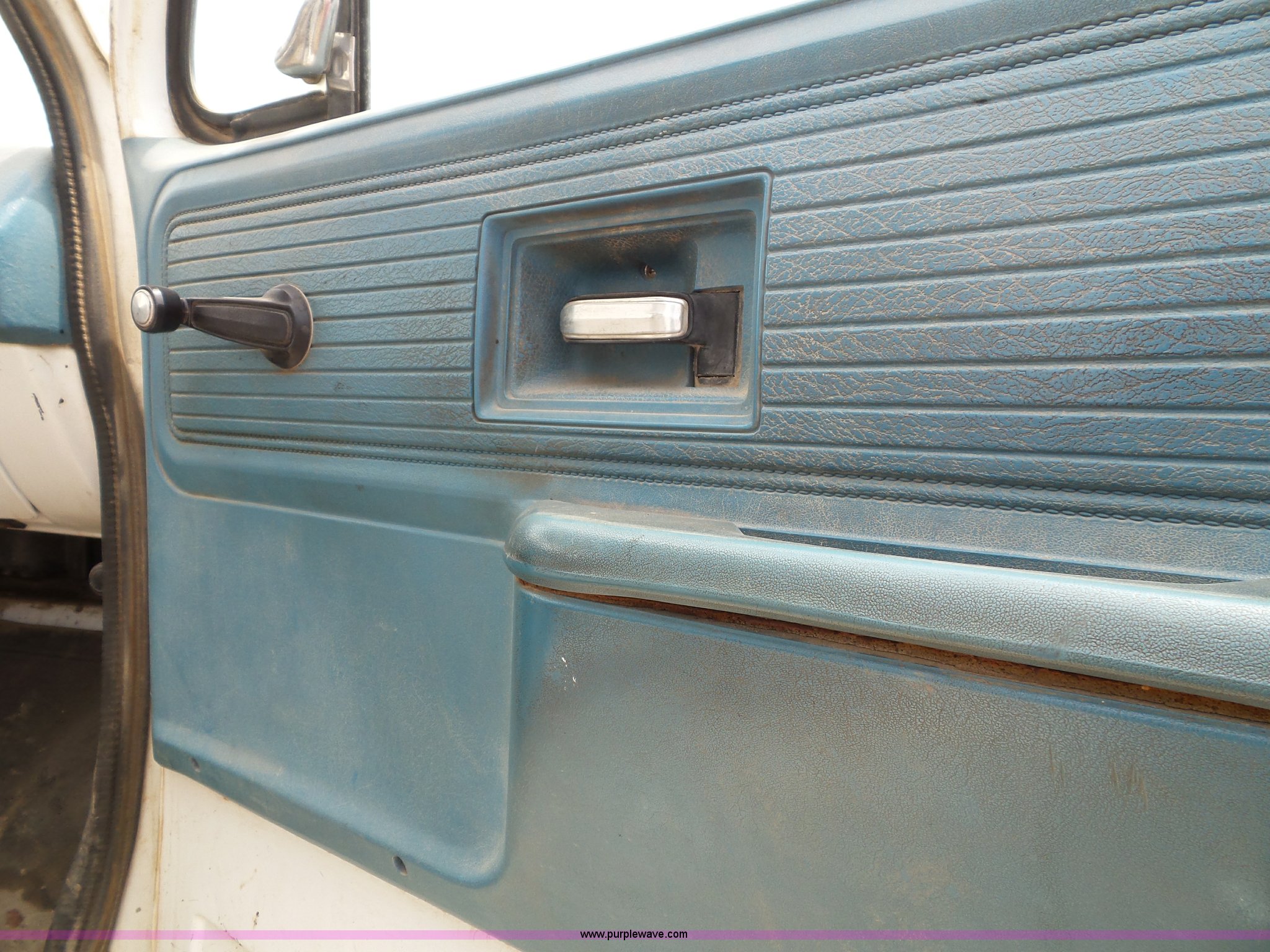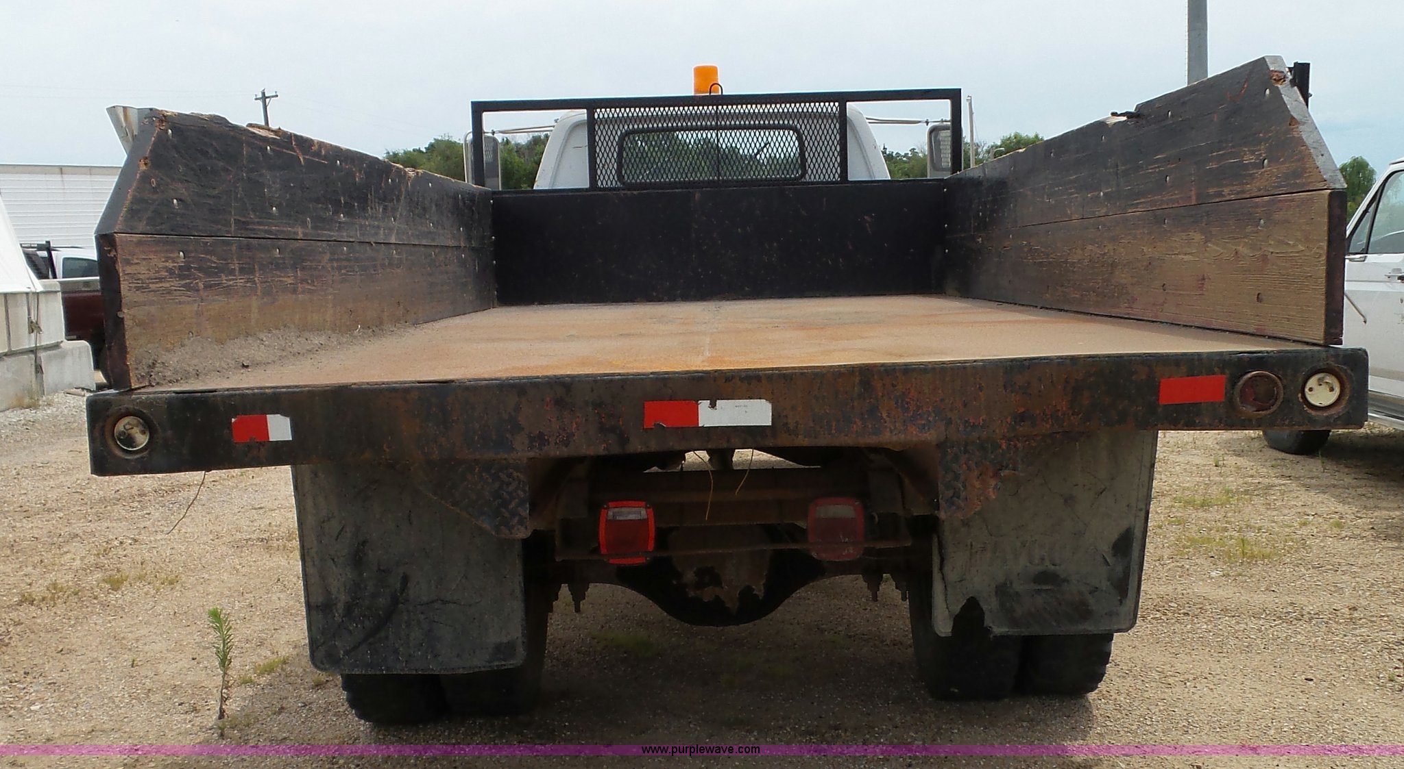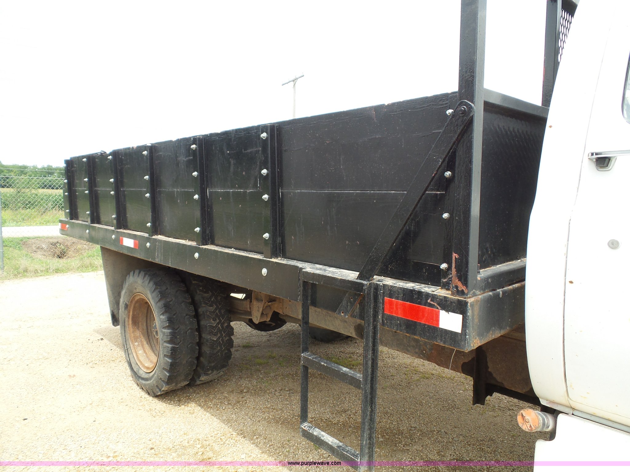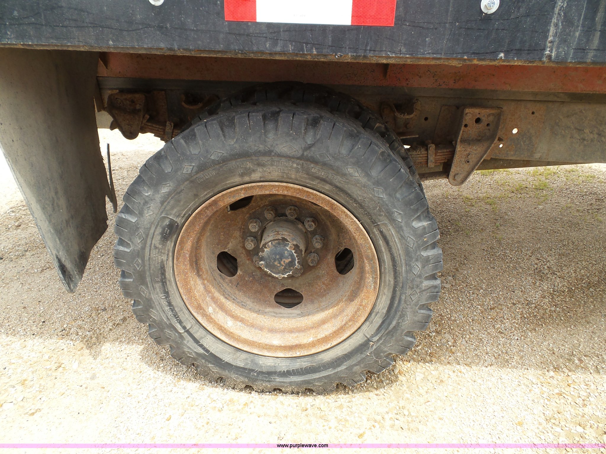 Purple Wave is selling a used Construction Dump Truck in Kansas. This item is a 1978 Chevrolet C60 dump truck with the following: 45,004 miles on odometer, Gas engine, Four speed manual transmission, Single axle, Heat, AM/FM, Vinyl interior, Strobe light, Chelsea PTO, 14'L x 8'W steel dump bed, 23"H wood sides, Single fuel tank, Spring suspension, Hydraulic brakes, 168" wheelbase, 8.25-20 tires, GVWR 19,200 lbs, FAWR 5,000 lbs, RAWR 14,200 lbs, Rust, Rear interior tires flat, Wipers inoperable, Unit# 4