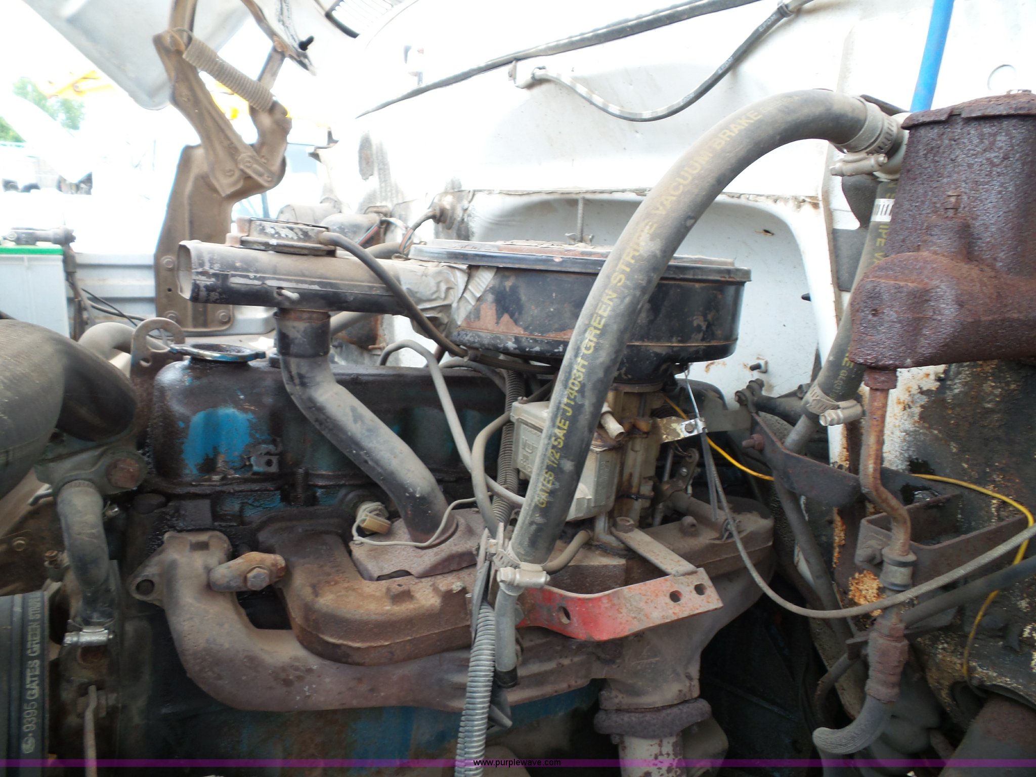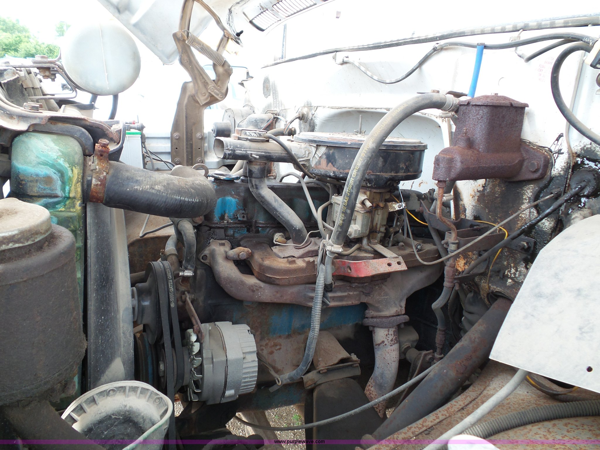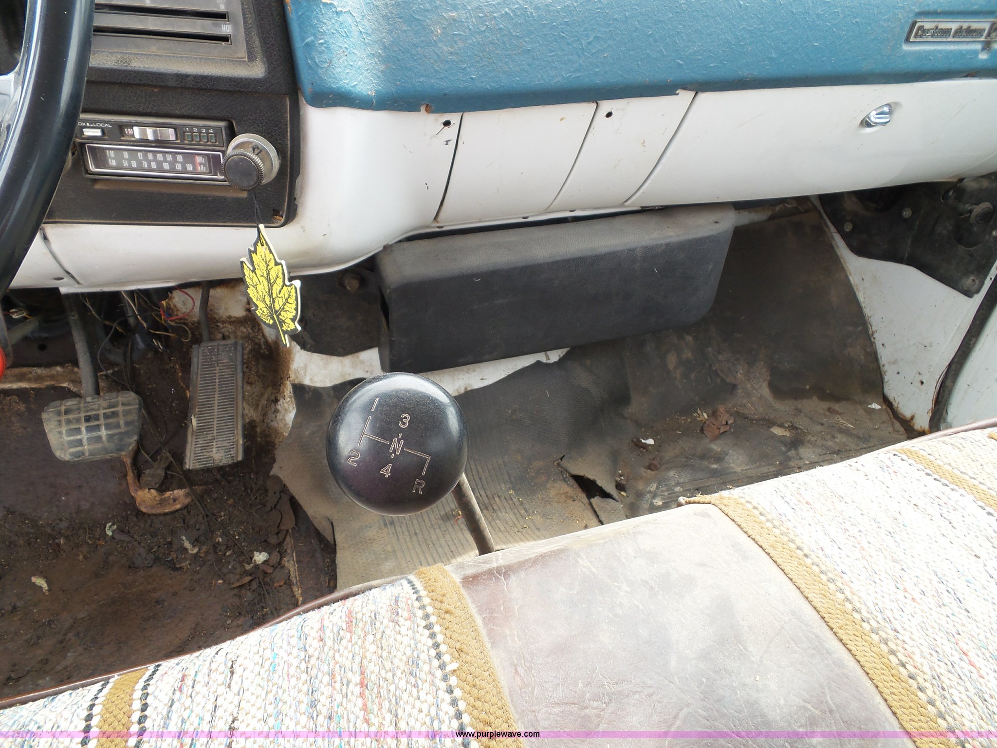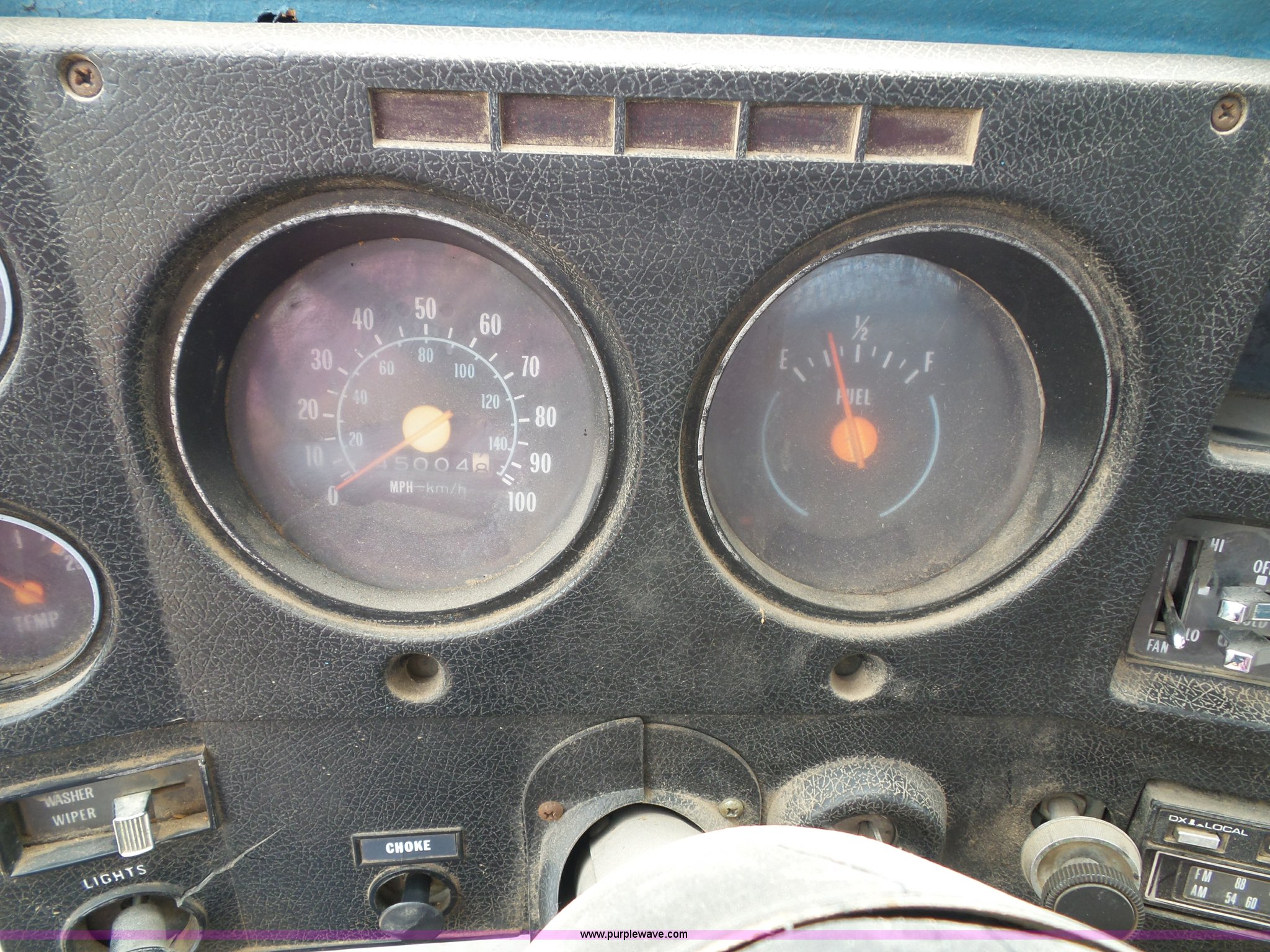 Purple Wave is selling a used Construction Dump Truck in Kansas. This item is a 1978 Chevrolet C60 dump truck with the following: 45,004 miles on odometer, Gas engine, Four speed manual transmission, Single axle, Heat, AM/FM, Vinyl interior, Strobe light, Chelsea PTO, 14'L x 8'W steel dump bed, 23"H wood sides, Single fuel tank, Spring suspension, Hydraulic brakes, 168" wheelbase, 8.25-20 tires, GVWR 19,200 lbs, FAWR 5,000 lbs, RAWR 14,200 lbs, Rust, Rear interior tires flat, Wipers inoperable, Unit# 4