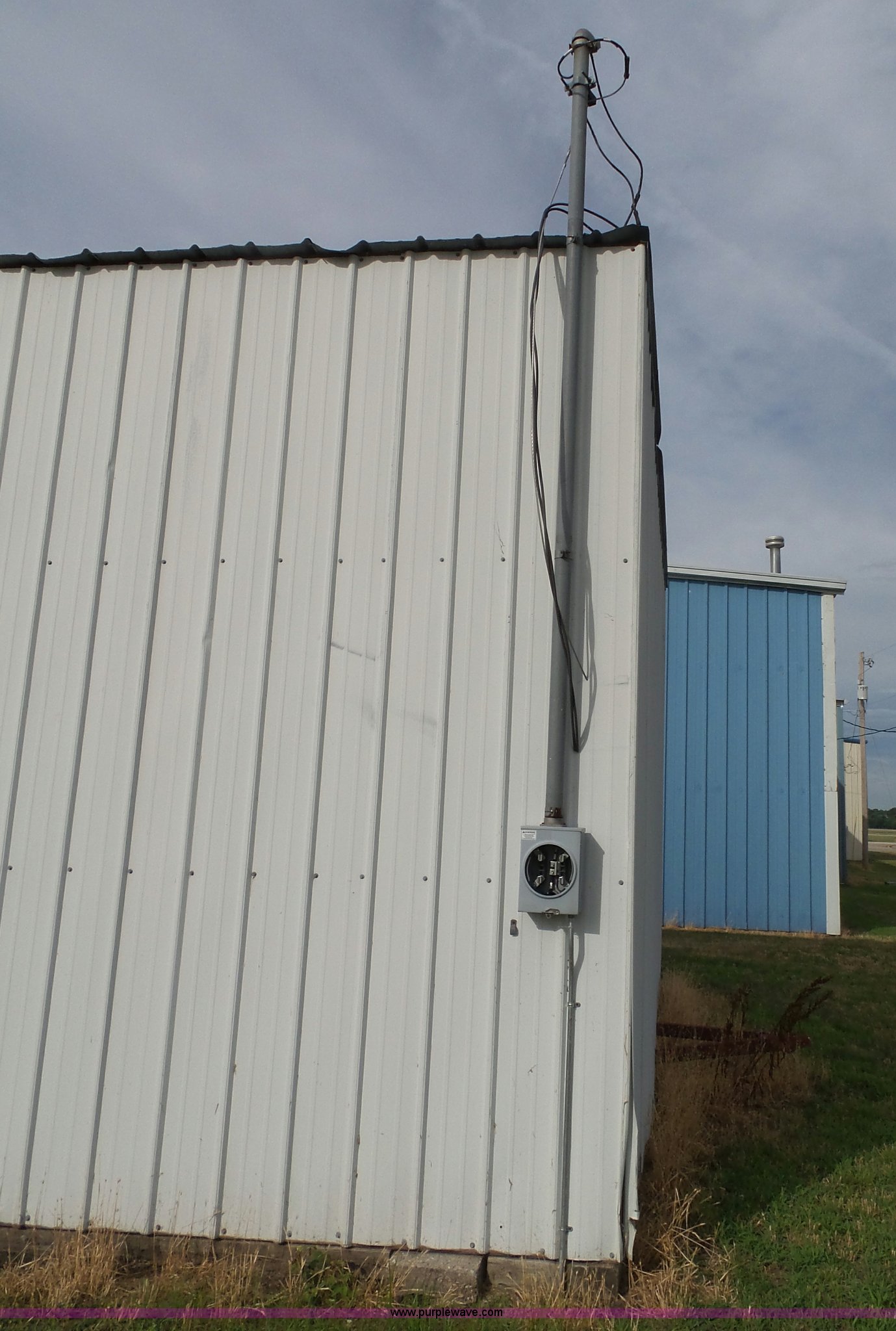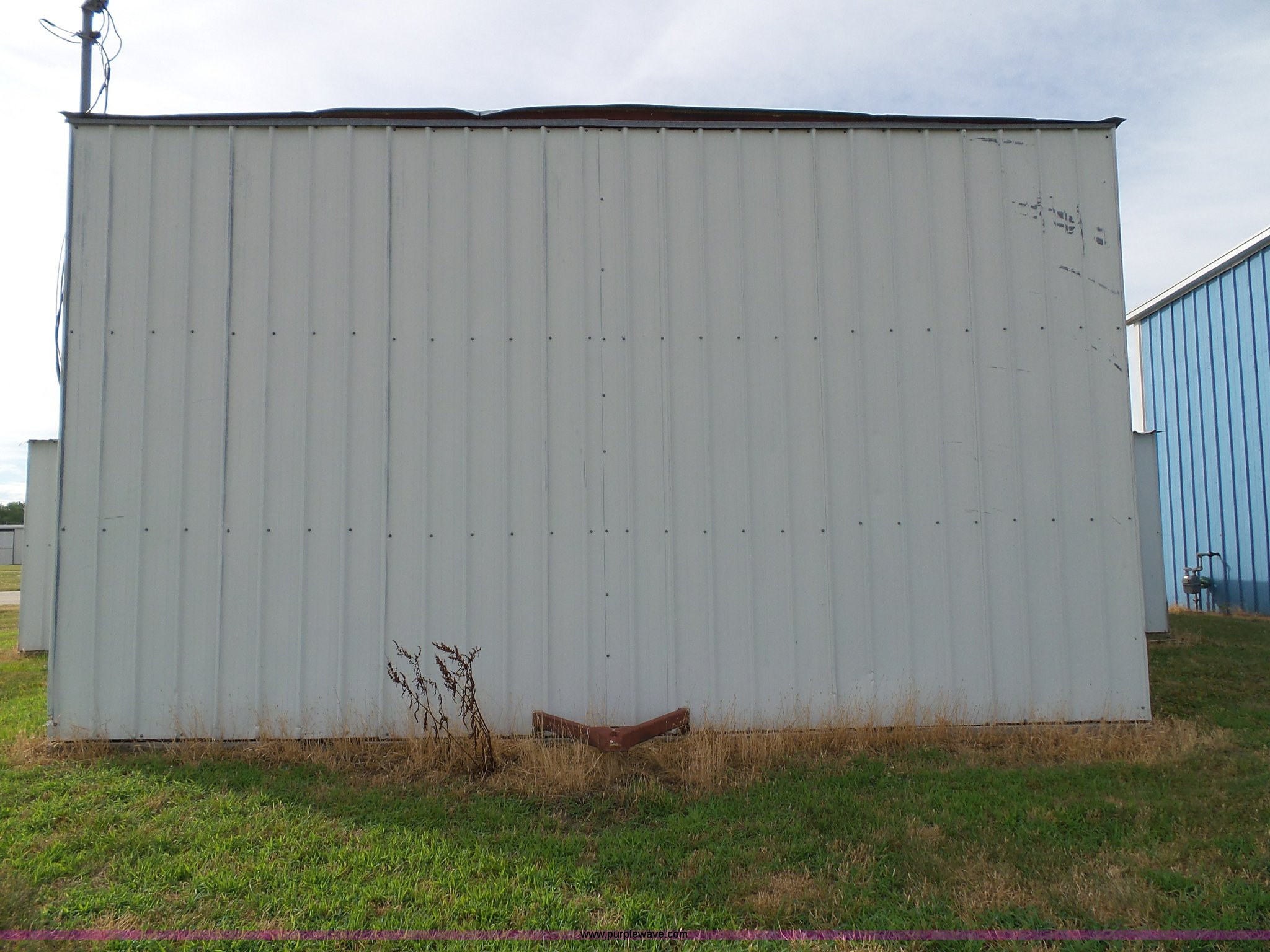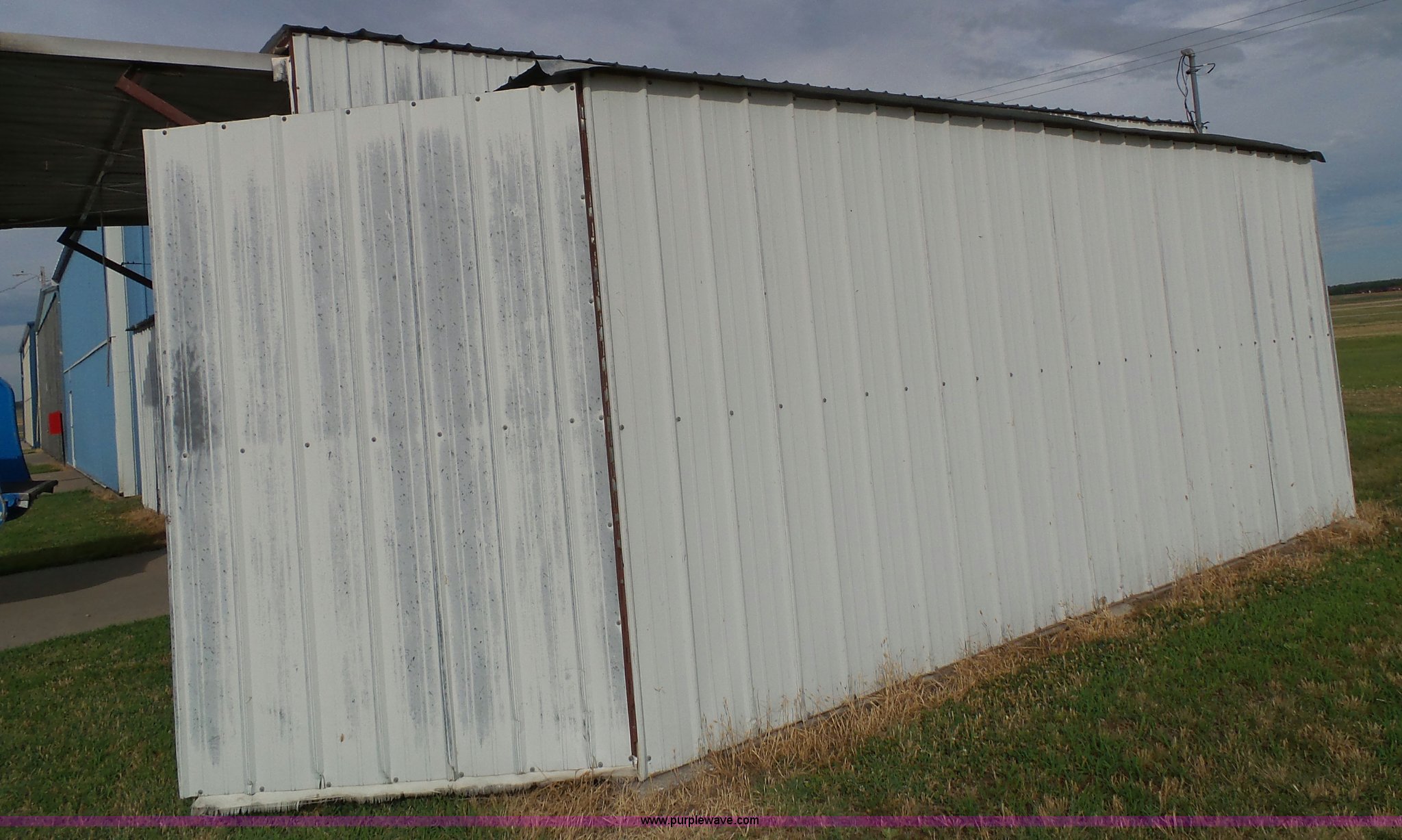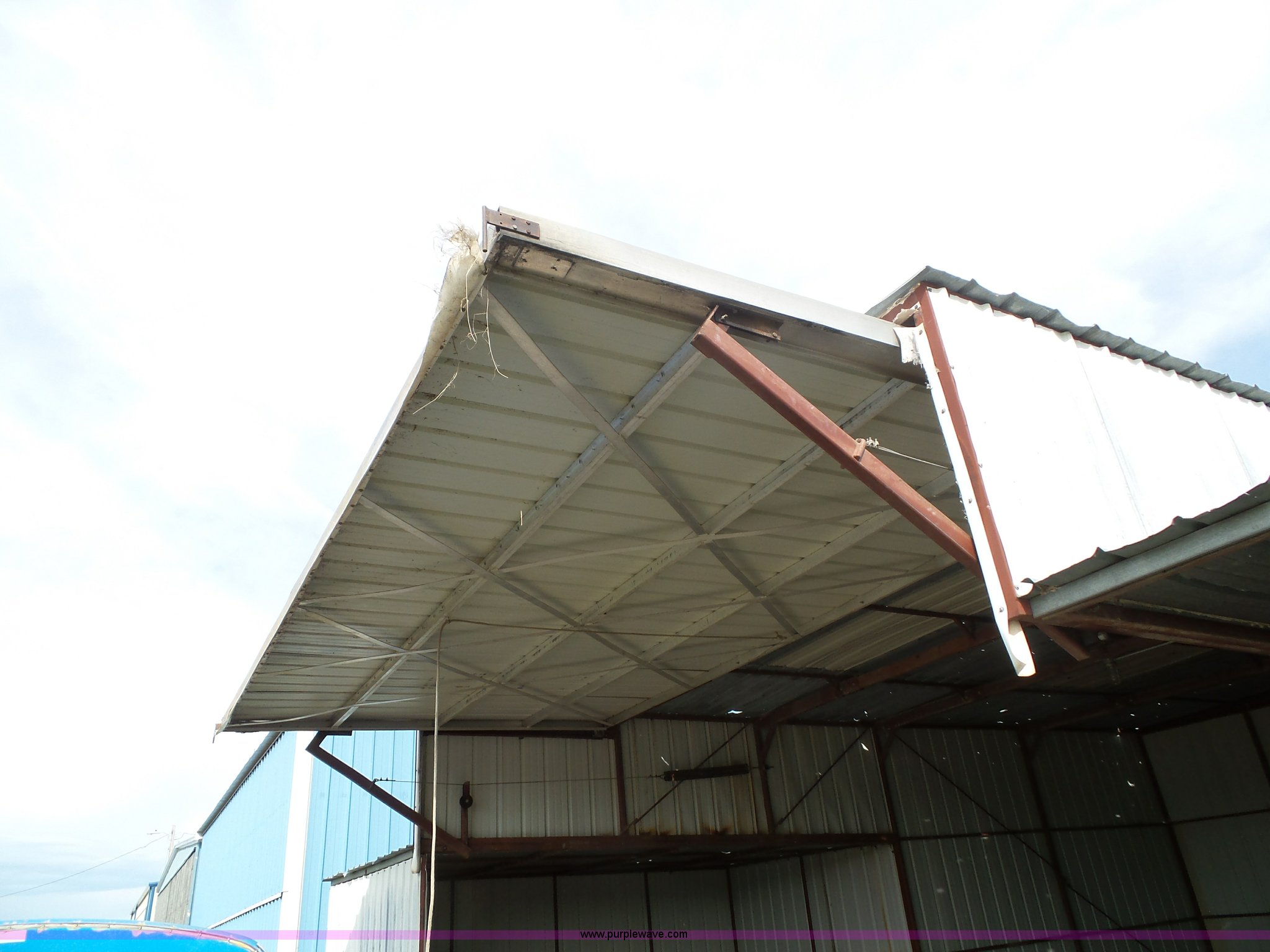 Portable airplane hanger. 42'W x 34'D, Power pole No meter, Removable sides for transport, Ball hitch, Skid base for transport, Hail damage to roof. Manhattan, KS 66502