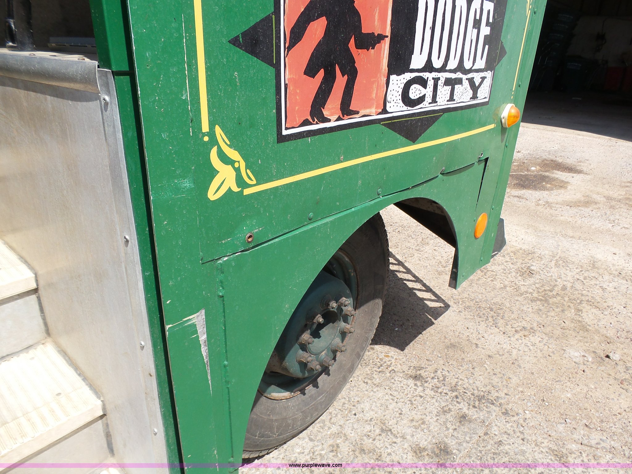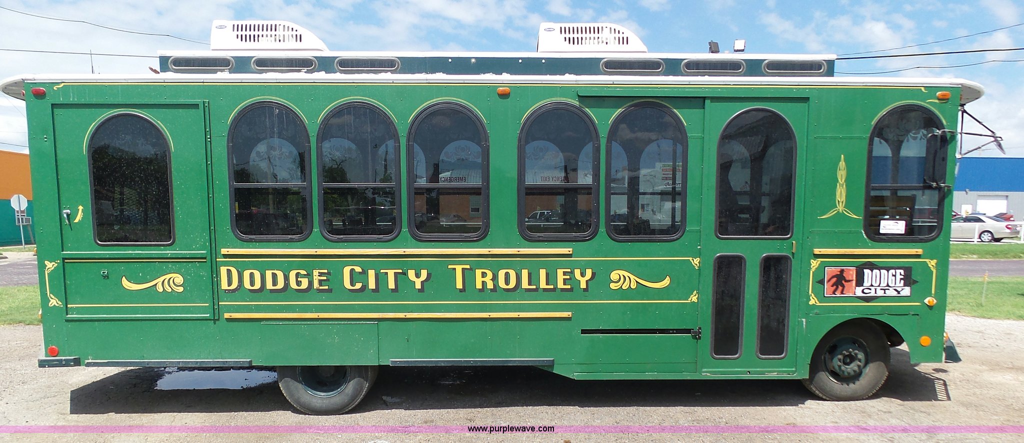 1994 Ford F53 trolley. 99,644 miles on odometer, 7.5L V8 gas engine, Automatic transmission, Single axle, AC and heat, AM/FM/CD, Suspension seat, Ceiling handrail, 30 passenger capacity, Braun L211U70AR3 wheelchair lift Serial 2674, One wheelchair tie down area, Rear and side emergency egress, Carrier roof AC unit, Hydraulic suspension, Hydraulic brakes, 180" wheelbase, 235/85R16 tires, Honda generator not included. Kansas title. 3FCMF53G5RJB06123. City of Dodge City. 110 W Spruce. Dodge City, KS 67801