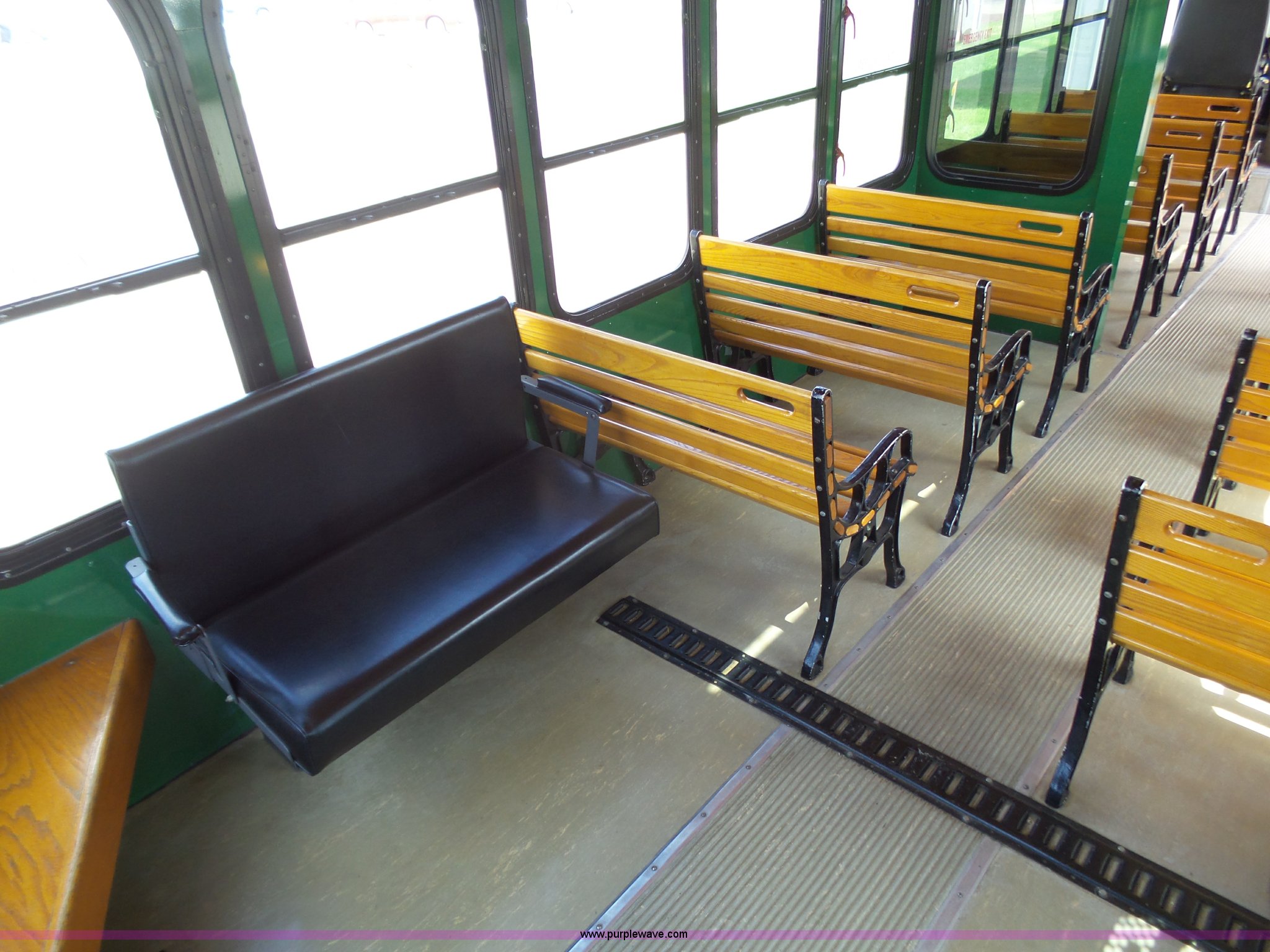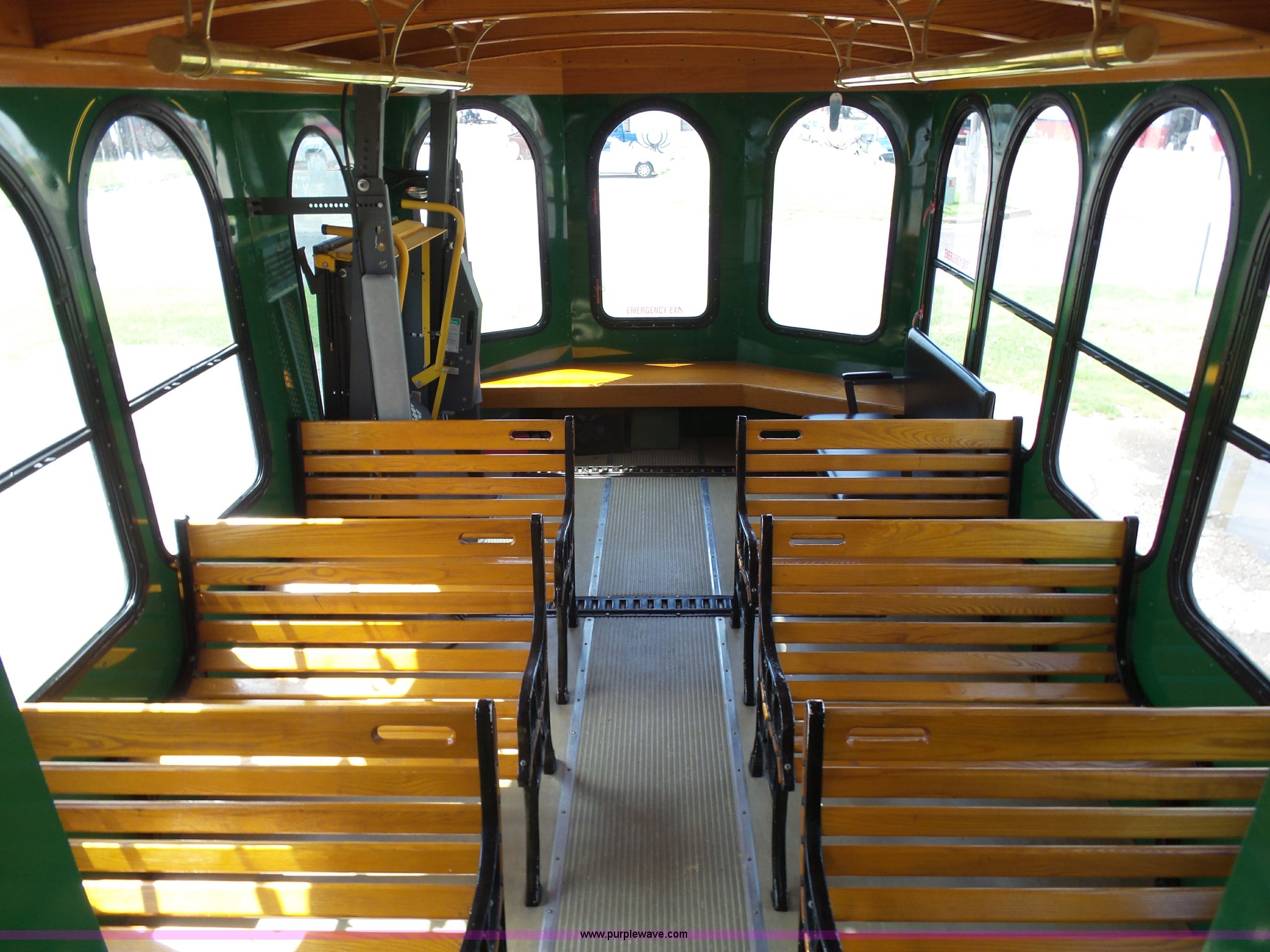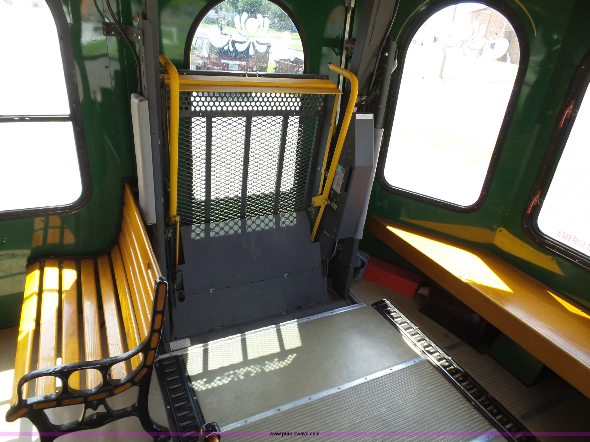 Purple Wave is selling a used Bus in Kansas. This item is a 1994 Ford F53 trolley with the following: 99,644 miles on odometer, 7.5L V8 gas engine, Automatic transmission, Single axle, AC and heat, AM/FM/CD, Suspension seat, Ceiling handrail, 30 passenger capacity, Braun L211U70AR3 wheelchair lift, Serial 2674, One wheelchair tie down area, Rear and side emergency egress, Carrier roof AC unit, Hydraulic suspension, Hydraulic brakes, 180" wheelbase, 235/85R16 tires, Honda generator not included