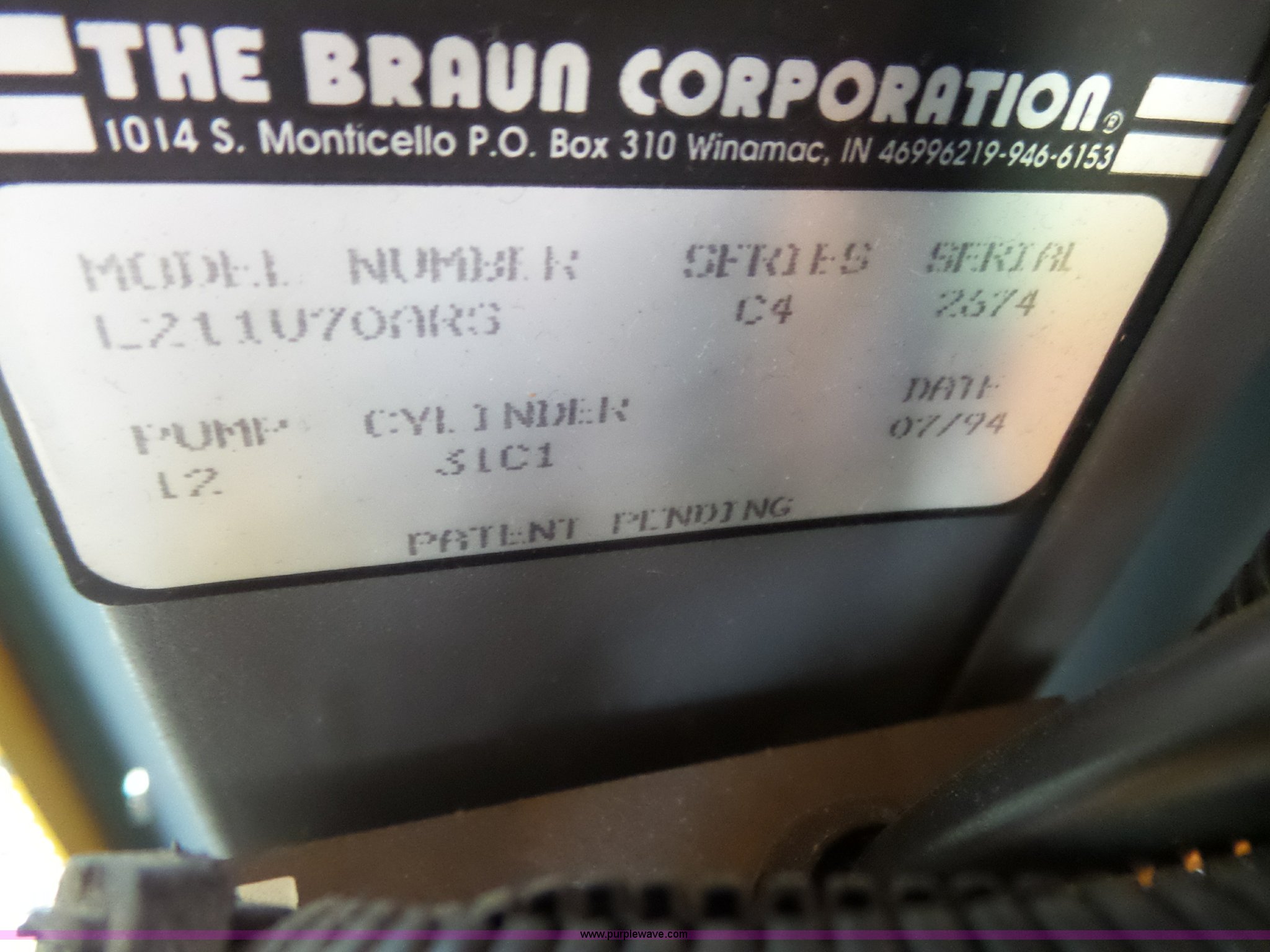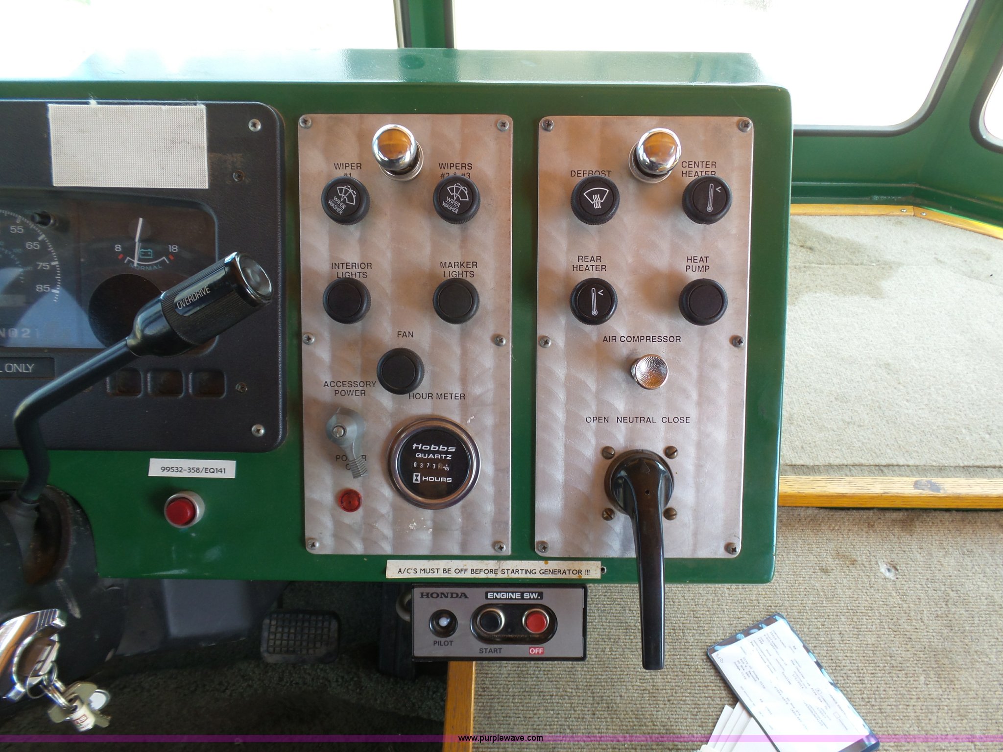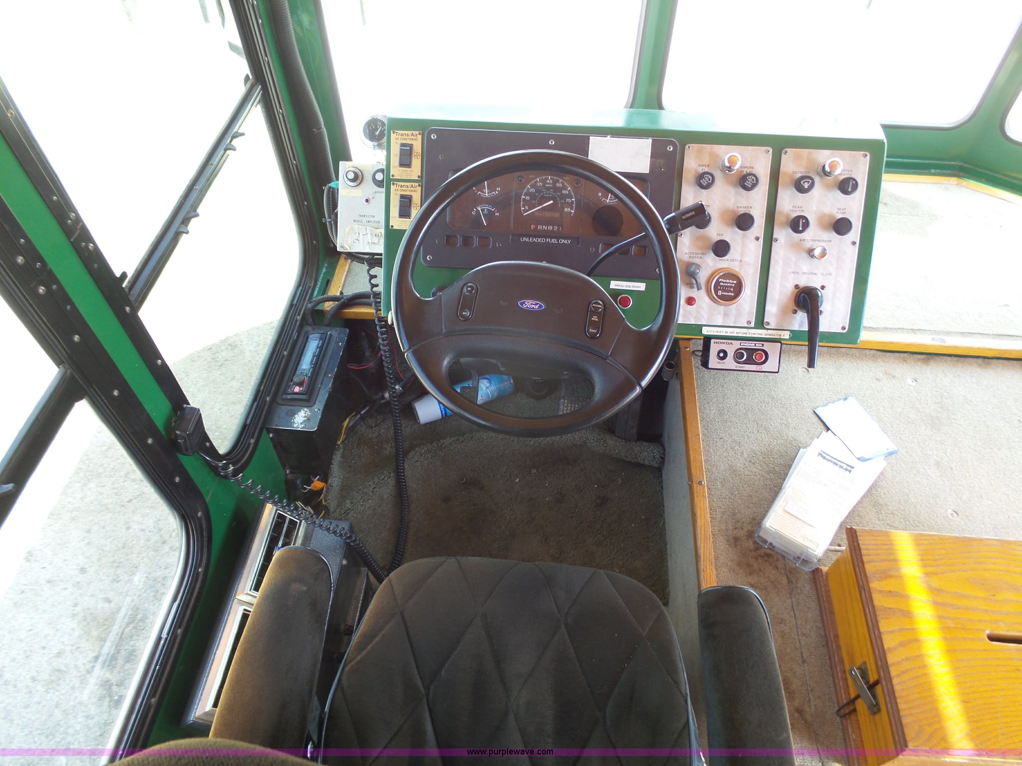 Purple Wave is selling a used Bus in Kansas. This item is a 1994 Ford F53 trolley with the following: 99,644 miles on odometer, 7.5L V8 gas engine, Automatic transmission, Single axle, AC and heat, AM/FM/CD, Suspension seat, Ceiling handrail, 30 passenger capacity, Braun L211U70AR3 wheelchair lift, Serial 2674, One wheelchair tie down area, Rear and side emergency egress, Carrier roof AC unit, Hydraulic suspension, Hydraulic brakes, 180" wheelbase, 235/85R16 tires, Honda generator not included