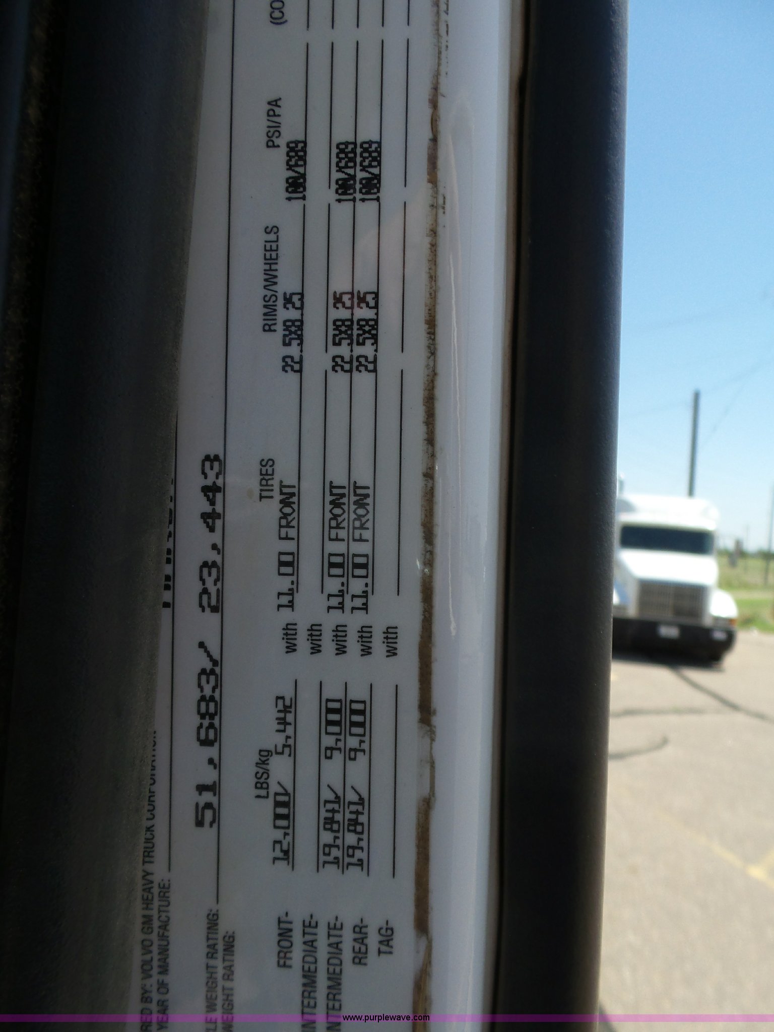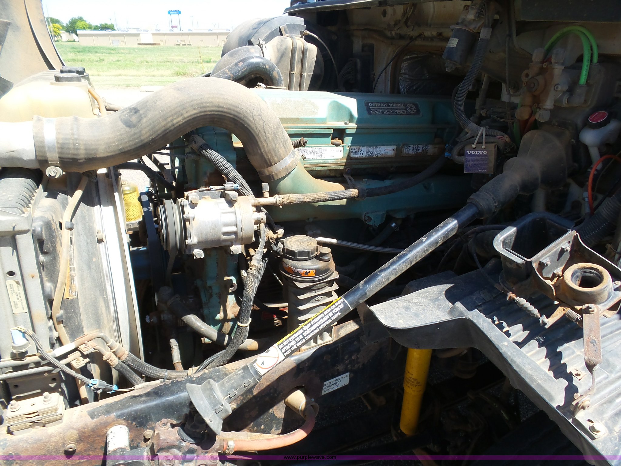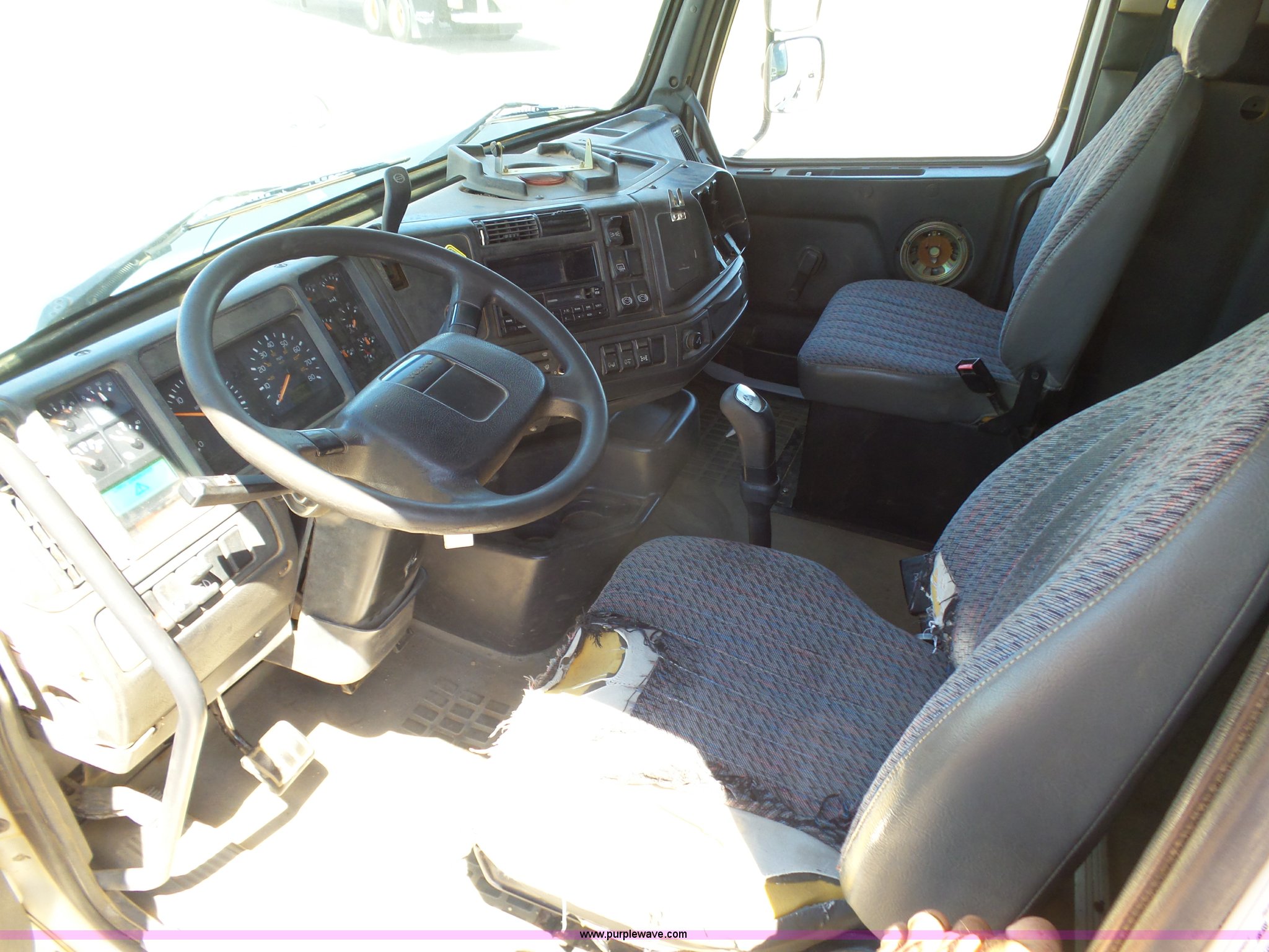 Purple Wave is selling a used Truck Tractor in Kansas. This item is a 1998 Volvo S60 semi truck with the following: 23,509 miles on odometer, Actual mileage unknown, Detroit Diesel Series 60 12.7L L6 turbo diesel engine, Serial 06R0410747, Rockwell manual transmission, Tandem axle, AC and heat, Cruise, AM/FM/cassette, Air suspension seat, Integral 51" sleeper, Single bed, Two seats, Rear climate control, Single rear exhaust stack, Aluminum deck plate, Air operated sliding fifth wheel plate, Dual fuel tanks, Quarter fenders, Air suspension, Air brakes, 11R22.5 tires, GVWR 51,683 lbs, FAWR 12,000 lbs, IAWR 19,841 lbs, RAWR 19,841 lbs, Hail damage, Unit# 12