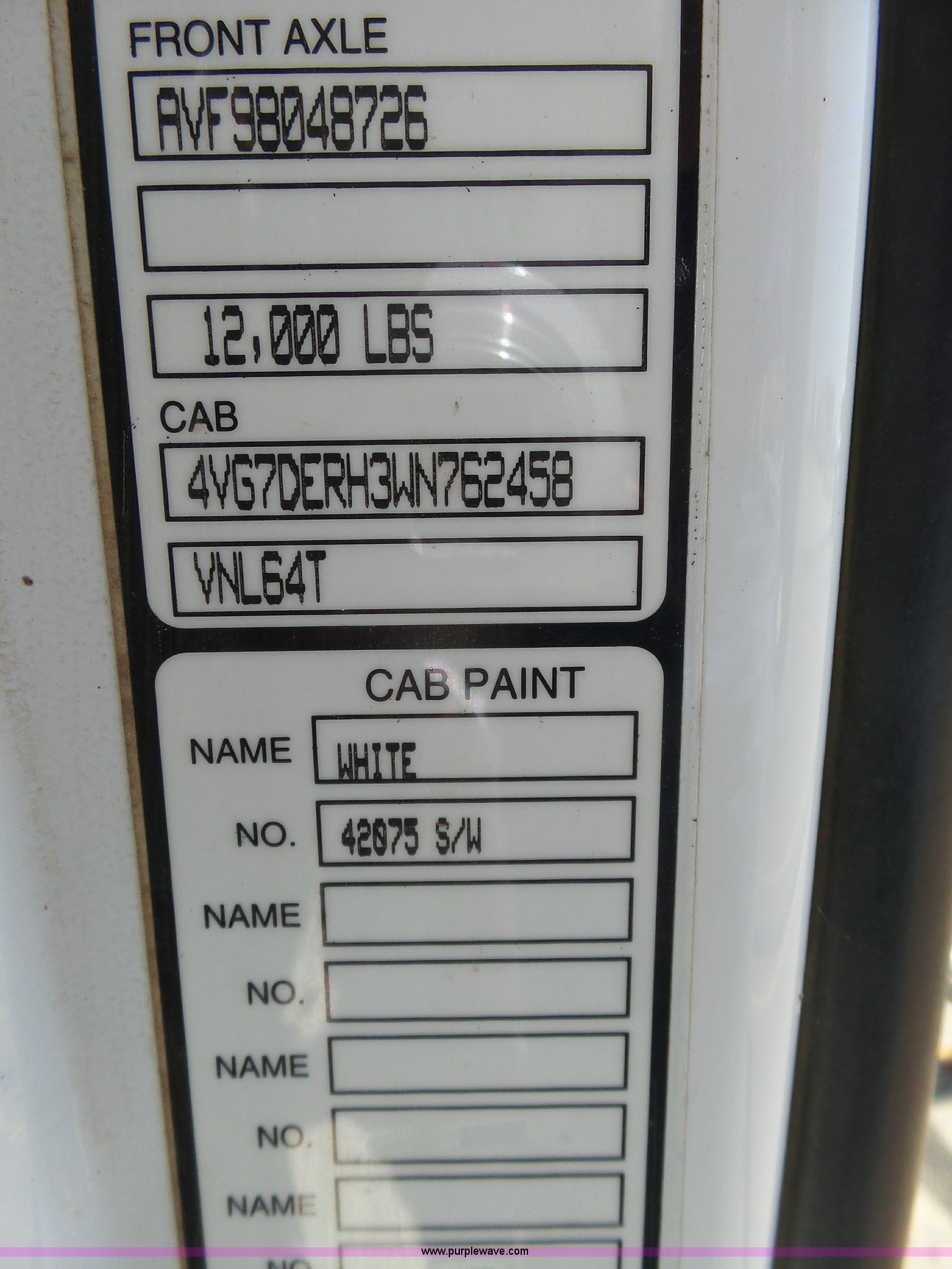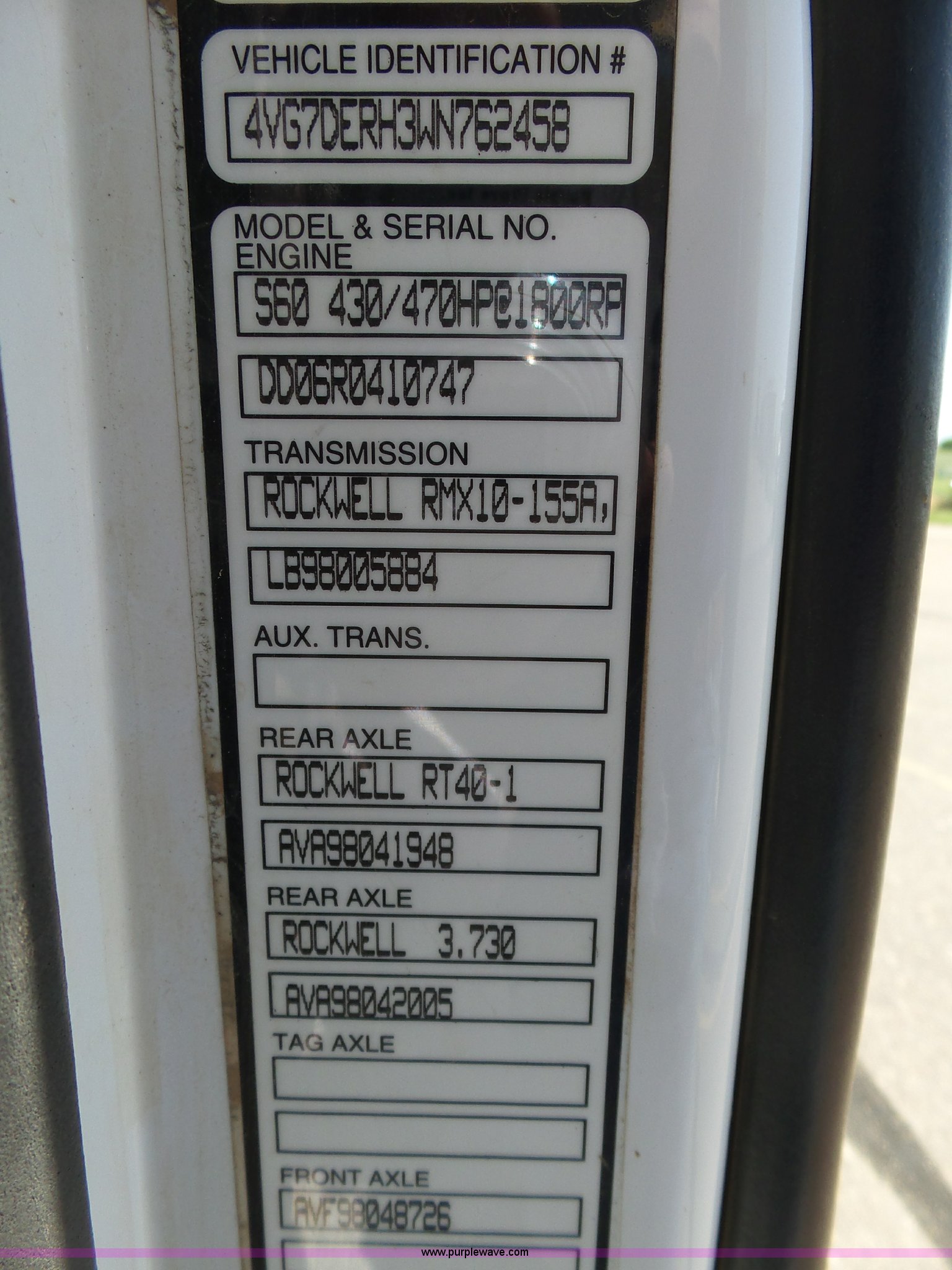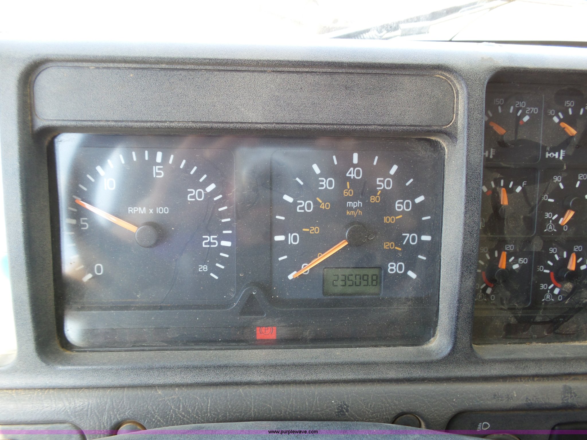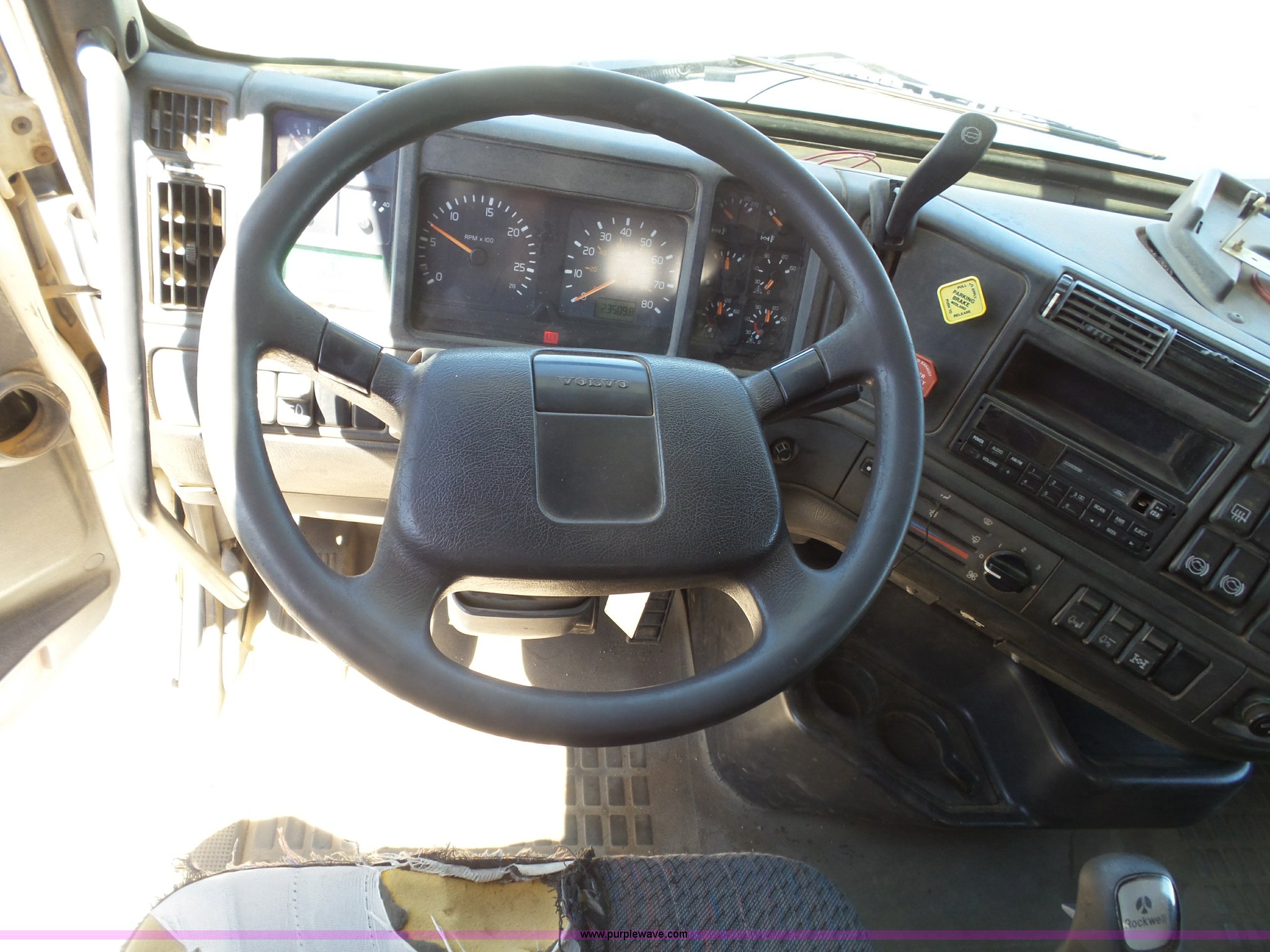 Purple Wave is selling a used Truck Tractor in Kansas. This item is a 1998 Volvo S60 semi truck with the following: 23,509 miles on odometer, Actual mileage unknown, Detroit Diesel Series 60 12.7L L6 turbo diesel engine, Serial 06R0410747, Rockwell manual transmission, Tandem axle, AC and heat, Cruise, AM/FM/cassette, Air suspension seat, Integral 51" sleeper, Single bed, Two seats, Rear climate control, Single rear exhaust stack, Aluminum deck plate, Air operated sliding fifth wheel plate, Dual fuel tanks, Quarter fenders, Air suspension, Air brakes, 11R22.5 tires, GVWR 51,683 lbs, FAWR 12,000 lbs, IAWR 19,841 lbs, RAWR 19,841 lbs, Hail damage, Unit# 12