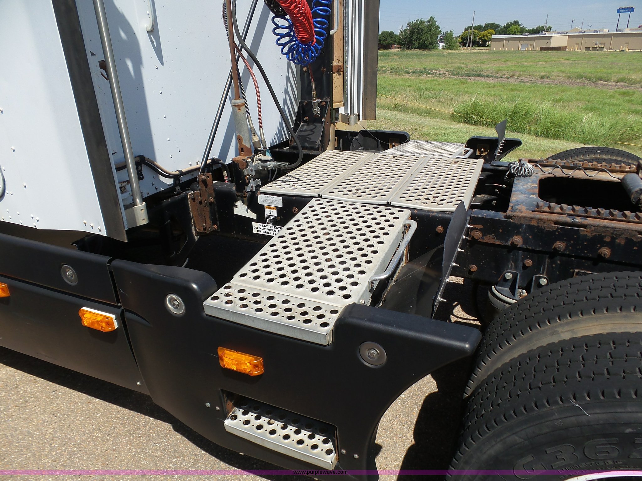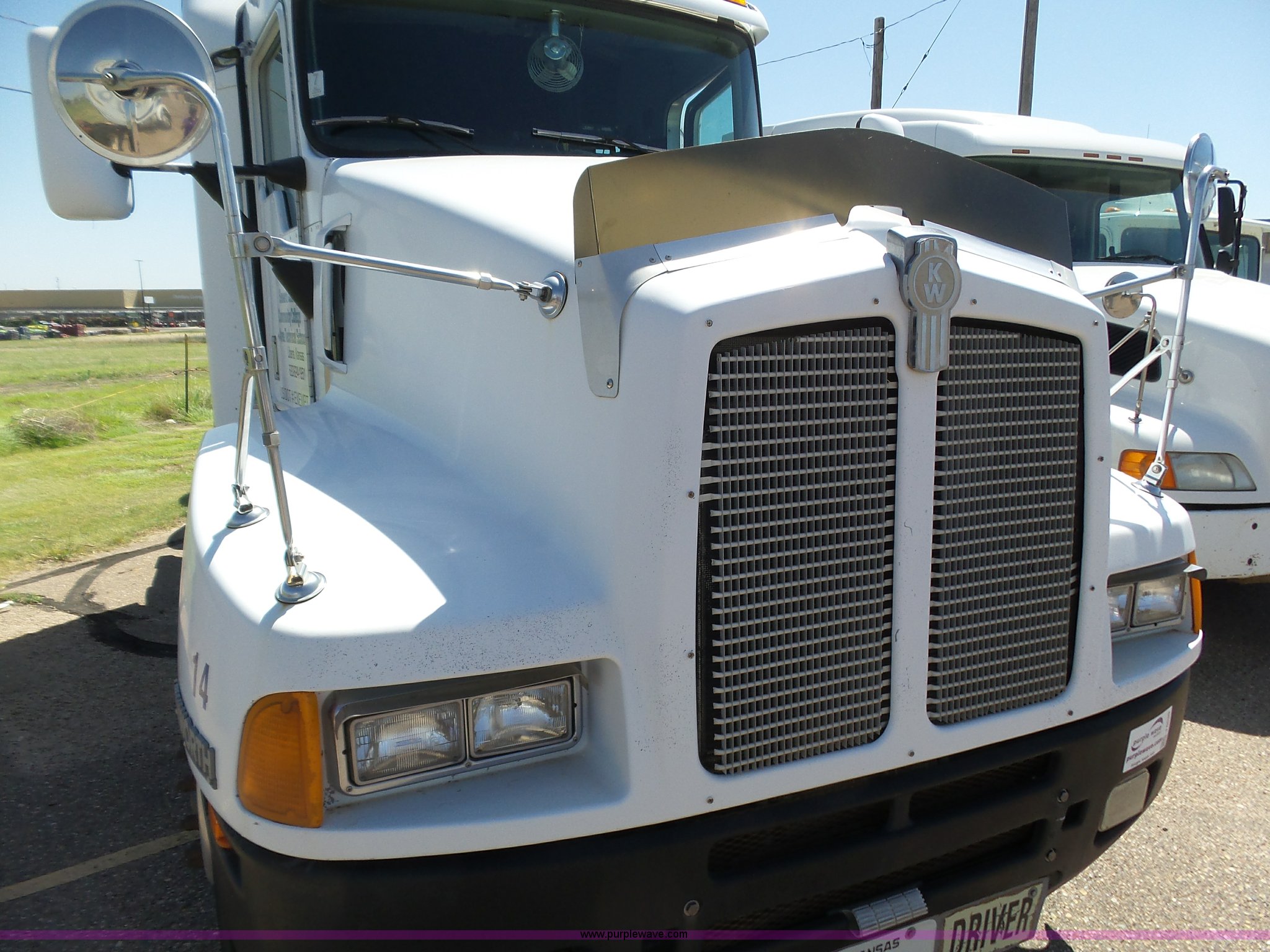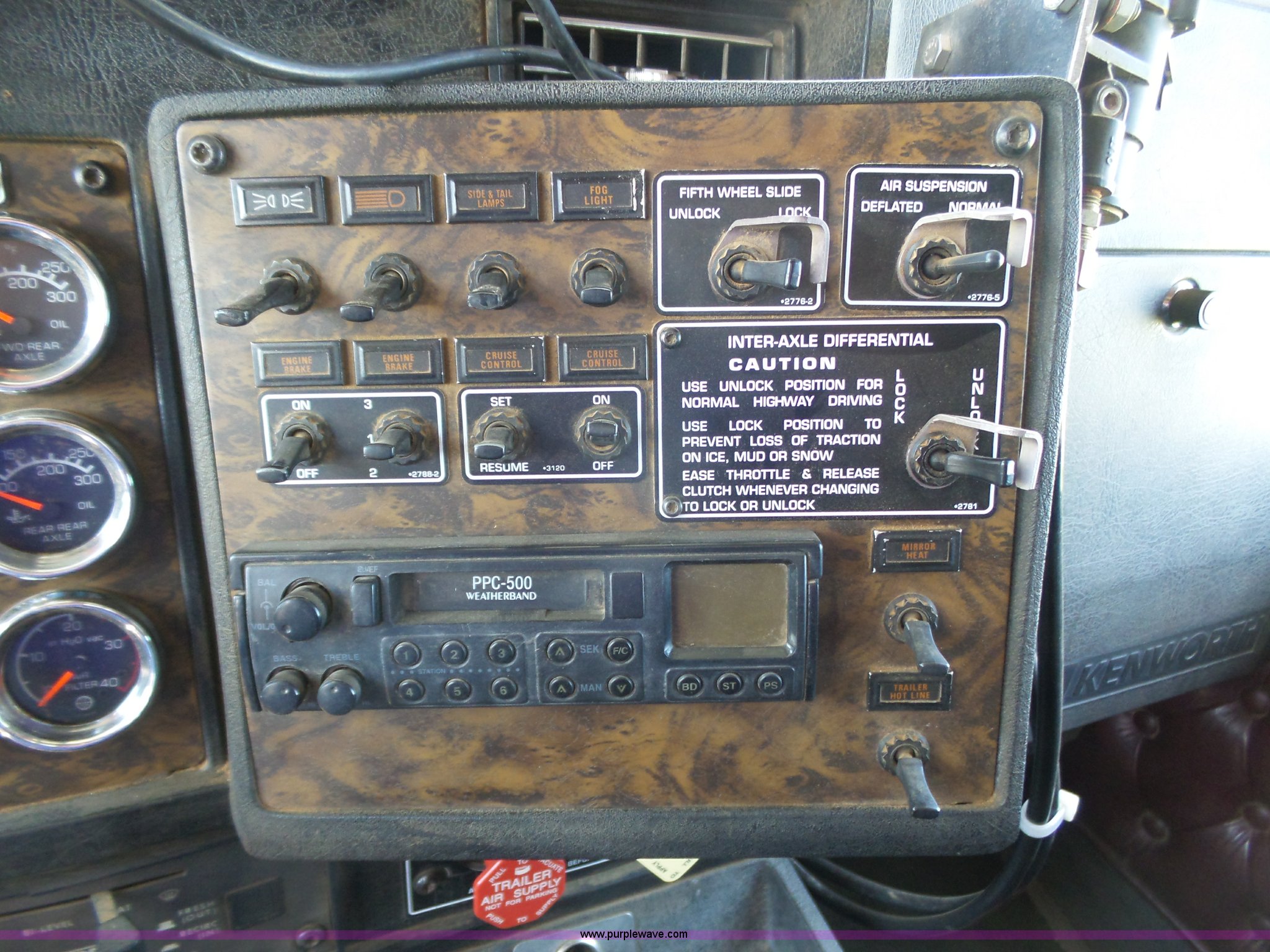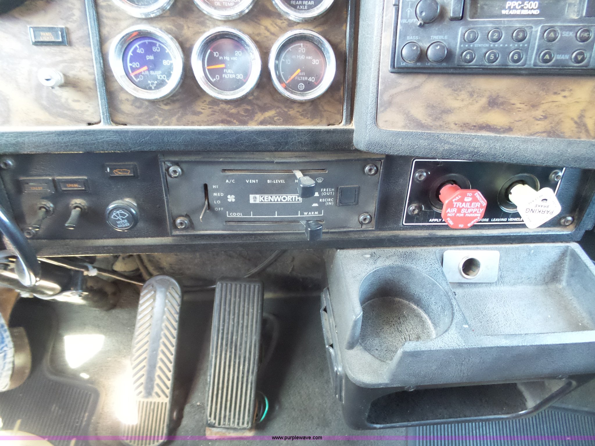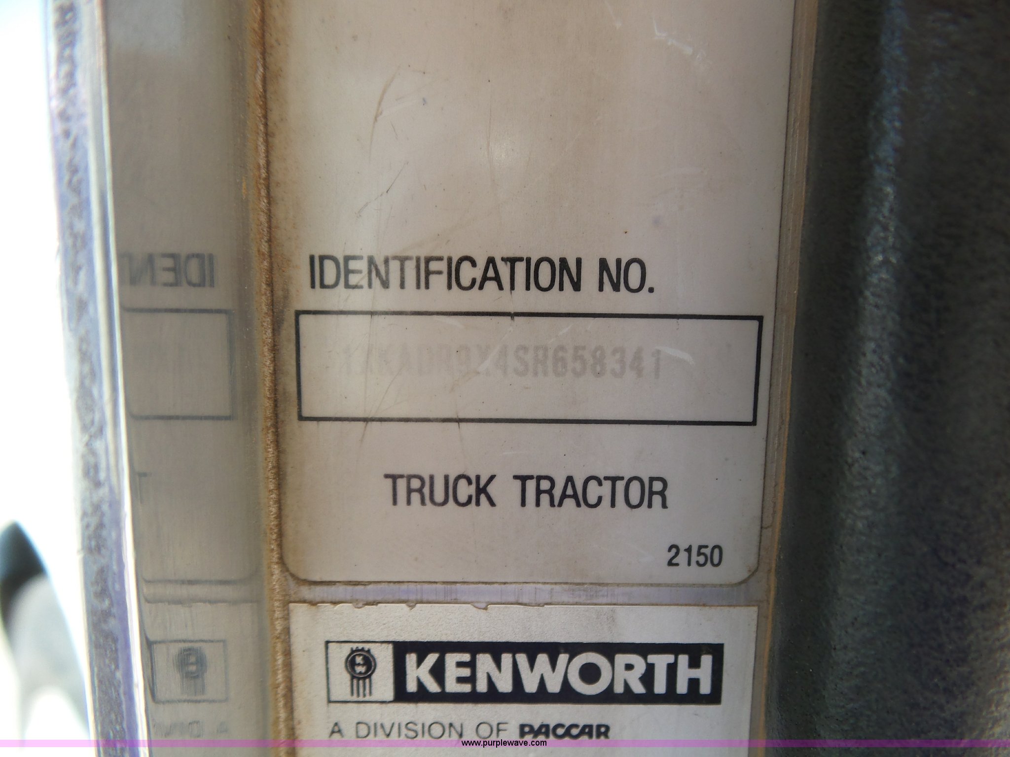 Purple Wave is selling a used Truck Tractor in Kansas. This item is a 1995 Kenworth T600 semi truck with the following: 110,517 miles on odometer, Actual mileage unknown, Detroit Diesel Series 60 12.7L L6 turbo diesel engine, Serial 06R0220761, Eight speed manual transmission, Tandem axle, Inter-axle differential lock, AC and heat, Tilt, Cruise, AM/FM/cassette, Power passenger window, Power and heated mirrors, Air suspension seat, Block heater, AeroCab sleeper, Three seats, Rear climate control, Exterior visor, Single rear exhaust stack, Aluminum deck plate, Air operated sliding fifth wheel plate, Dual fuel tanks, Quarter fenders, Mud flaps, Air suspension, Air brakes, Engine brake, 275/80R22.5 front tires, 295/75R22.5 rear tires, GVWR 50,000 lbs, IAWR 19,000 lbs, RAWR 19,000 lbs, Unit# 14