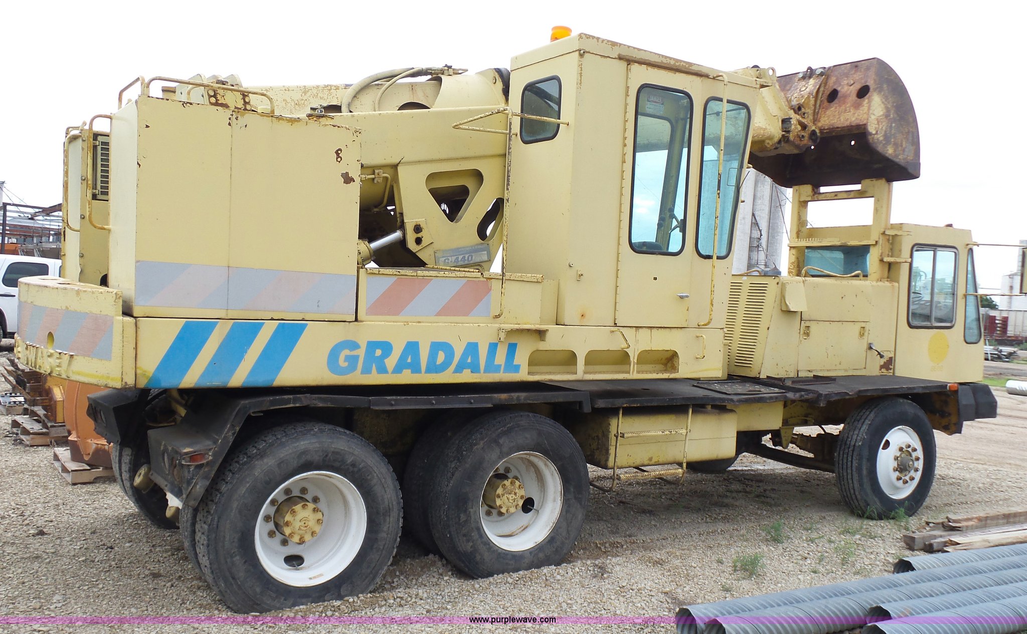 Purple Wave is selling a used Rubber Tired Excavator in Kansas. This item is a Gradall G440 rubber tired excavator with the following: 51,805 miles on odometer, Detroit Diesel engine, Five speed manual transmission, Extendable rotating boom, 58"W bucket, 15"W bucket, Spring suspension, Air brakes, 11R22.5 tires, Serial NP315055