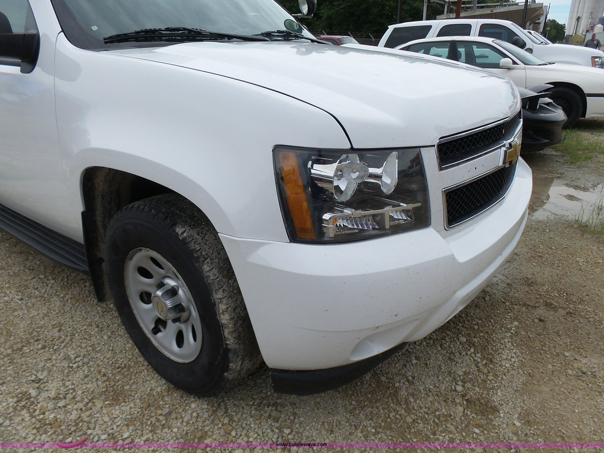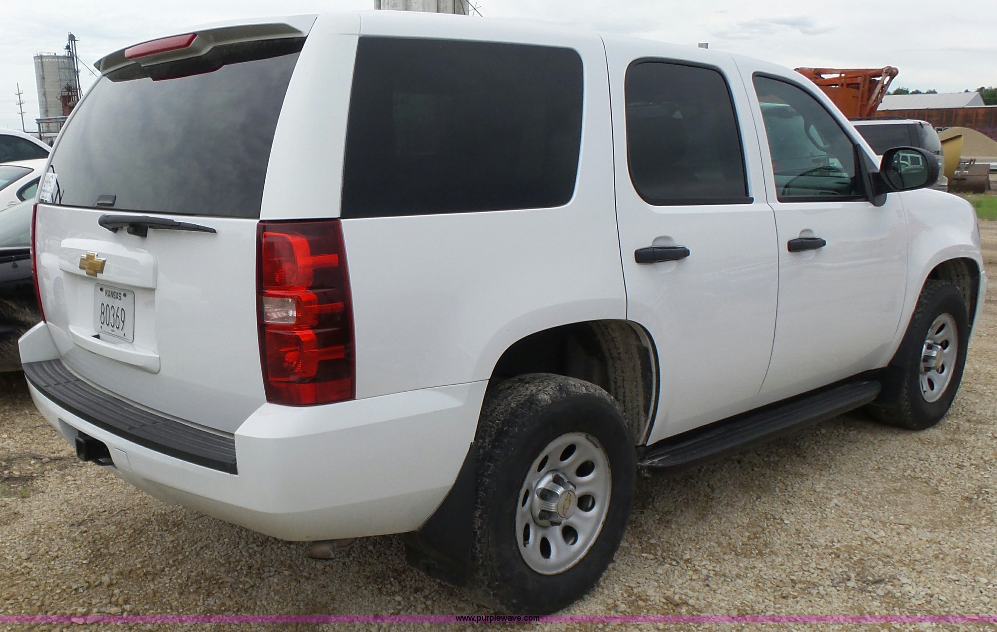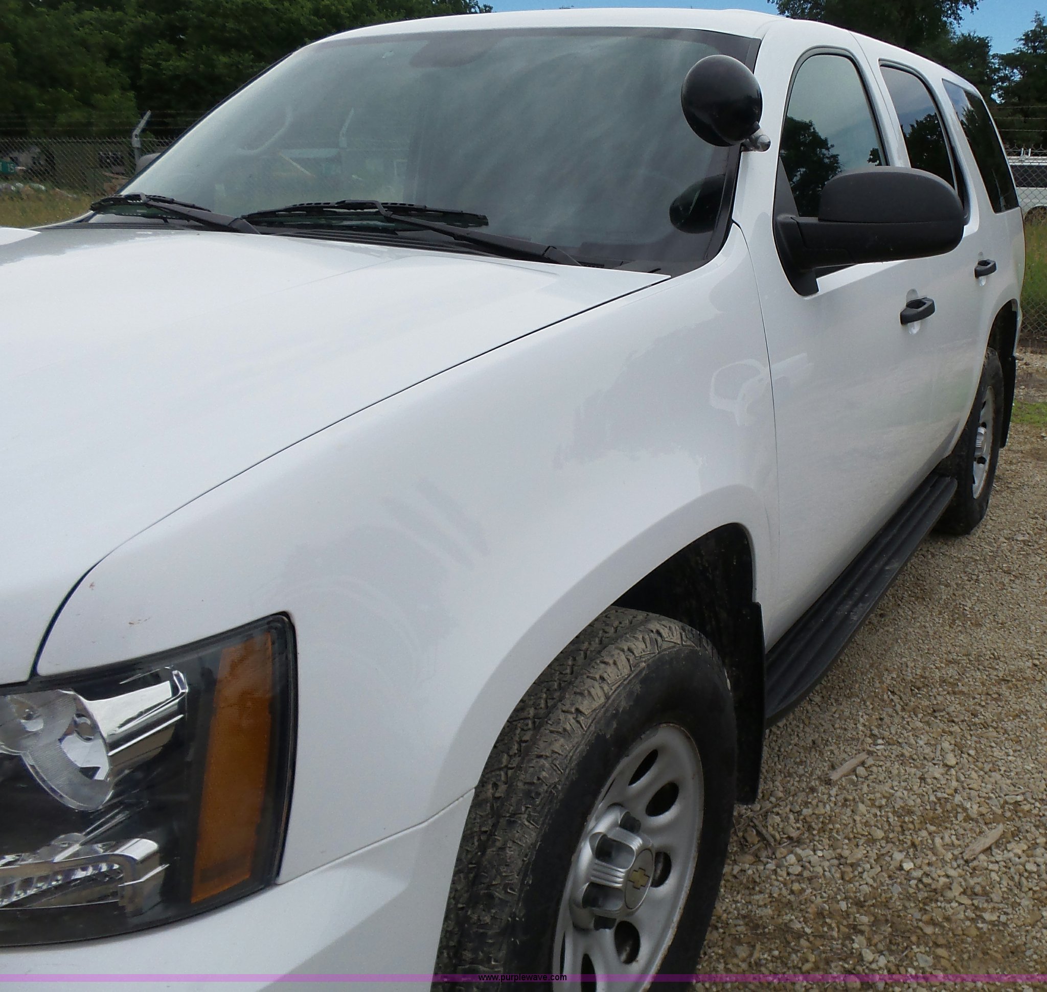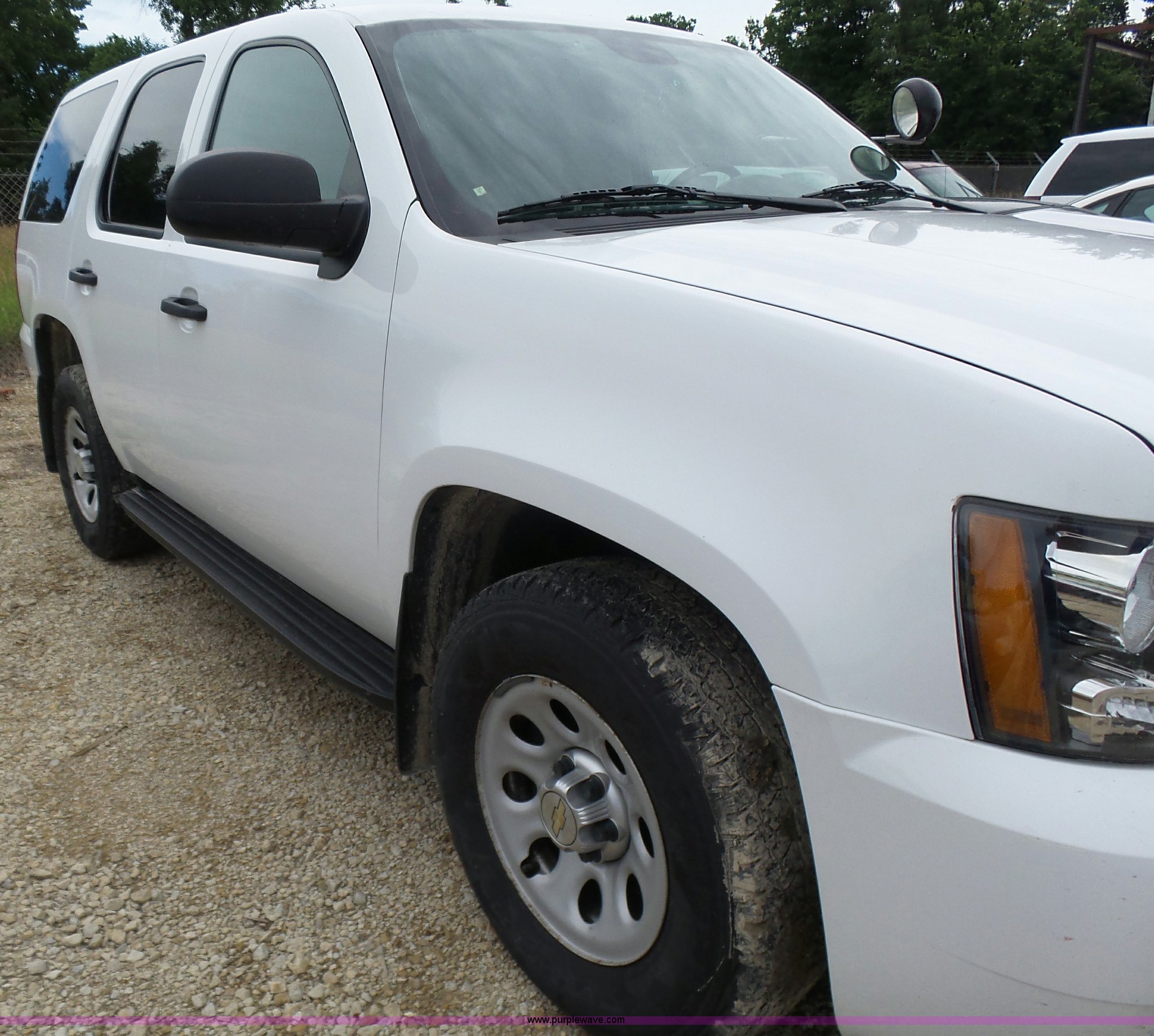Purple Wave is selling a used Passenger Vehicle in Kansas. This item is a 2012 Chevrolet Tahoe Police SUV with the following: 143,540 miles on odometer, 5.3L V8 OHV 16V FFV gas engine, Automatic transmission, Four wheel drive, AC and heat, Tilt, Cruise, AM/FM/CD, Power windows, locks, and mirrors, Cloth/vinyl interior, 265/70R17 tires