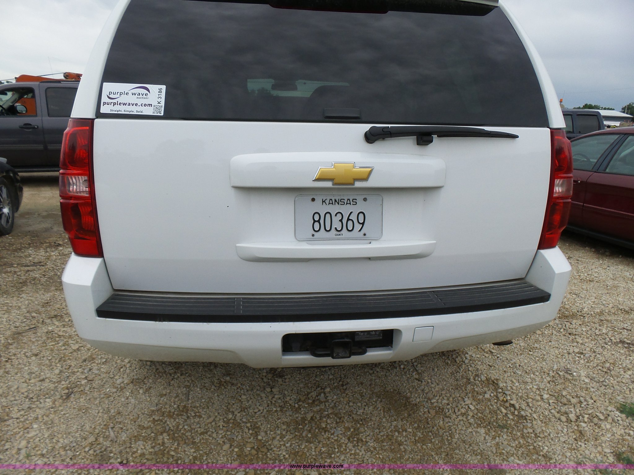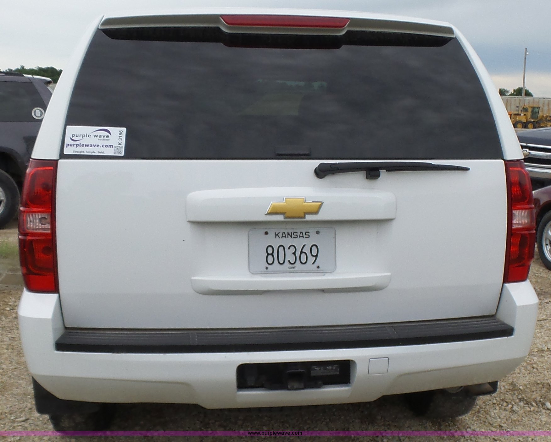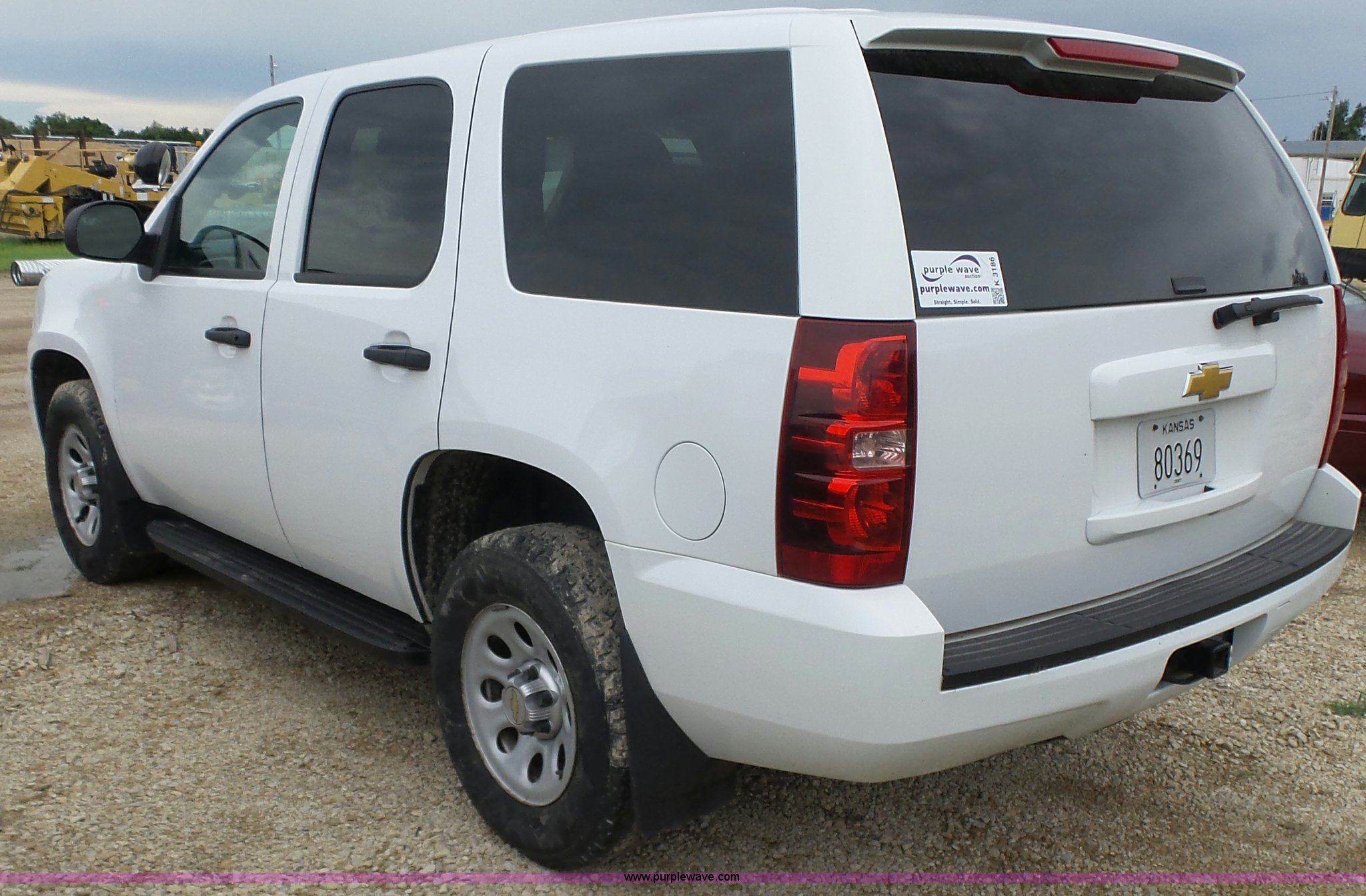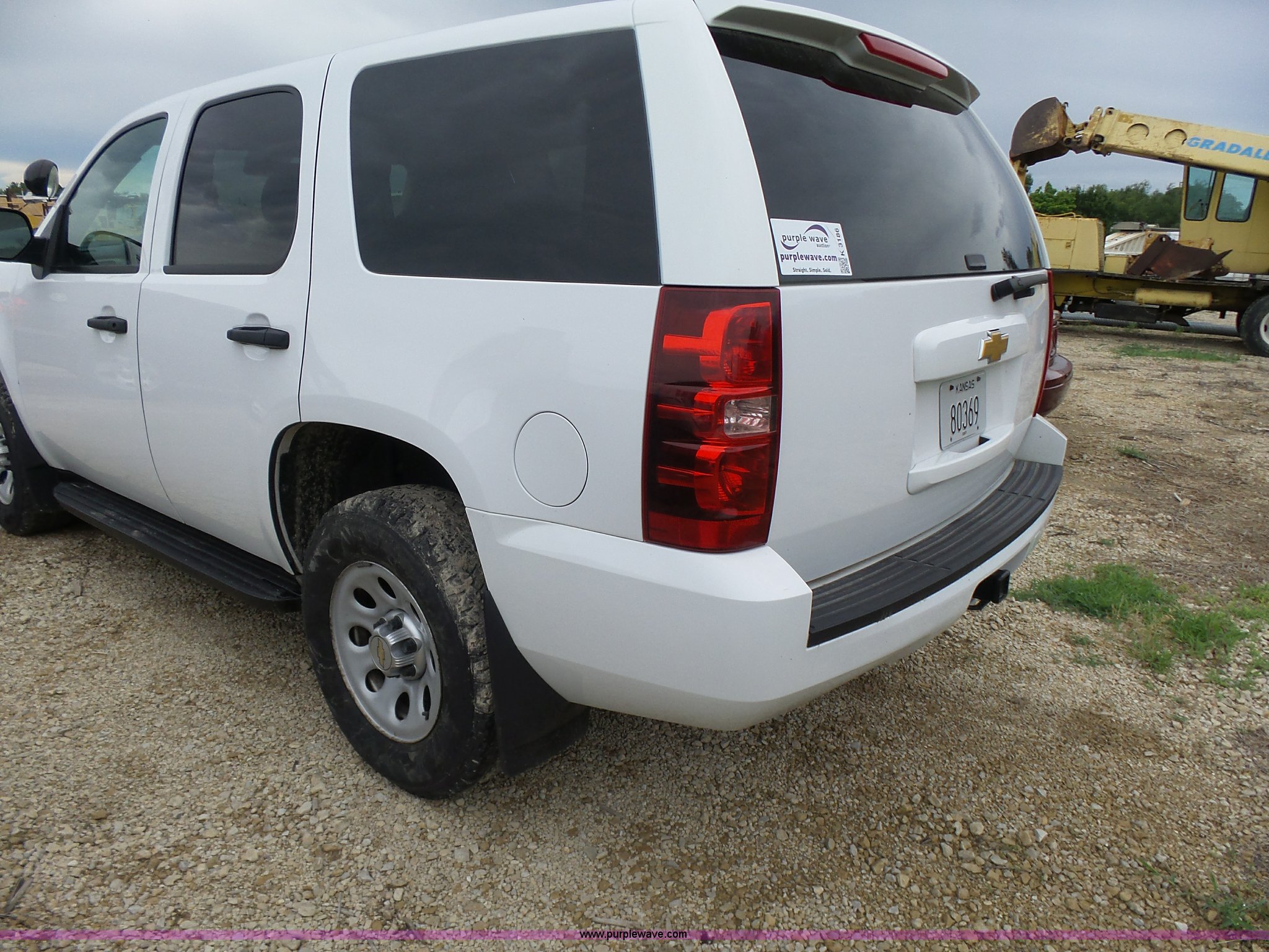 Purple Wave is selling a used Passenger Vehicle in Kansas. This item is a 2012 Chevrolet Tahoe Police SUV with the following: 143,540 miles on odometer, 5.3L V8 OHV 16V FFV gas engine, Automatic transmission, Four wheel drive, AC and heat, Tilt, Cruise, AM/FM/CD, Power windows, locks, and mirrors, Cloth/vinyl interior, 265/70R17 tires