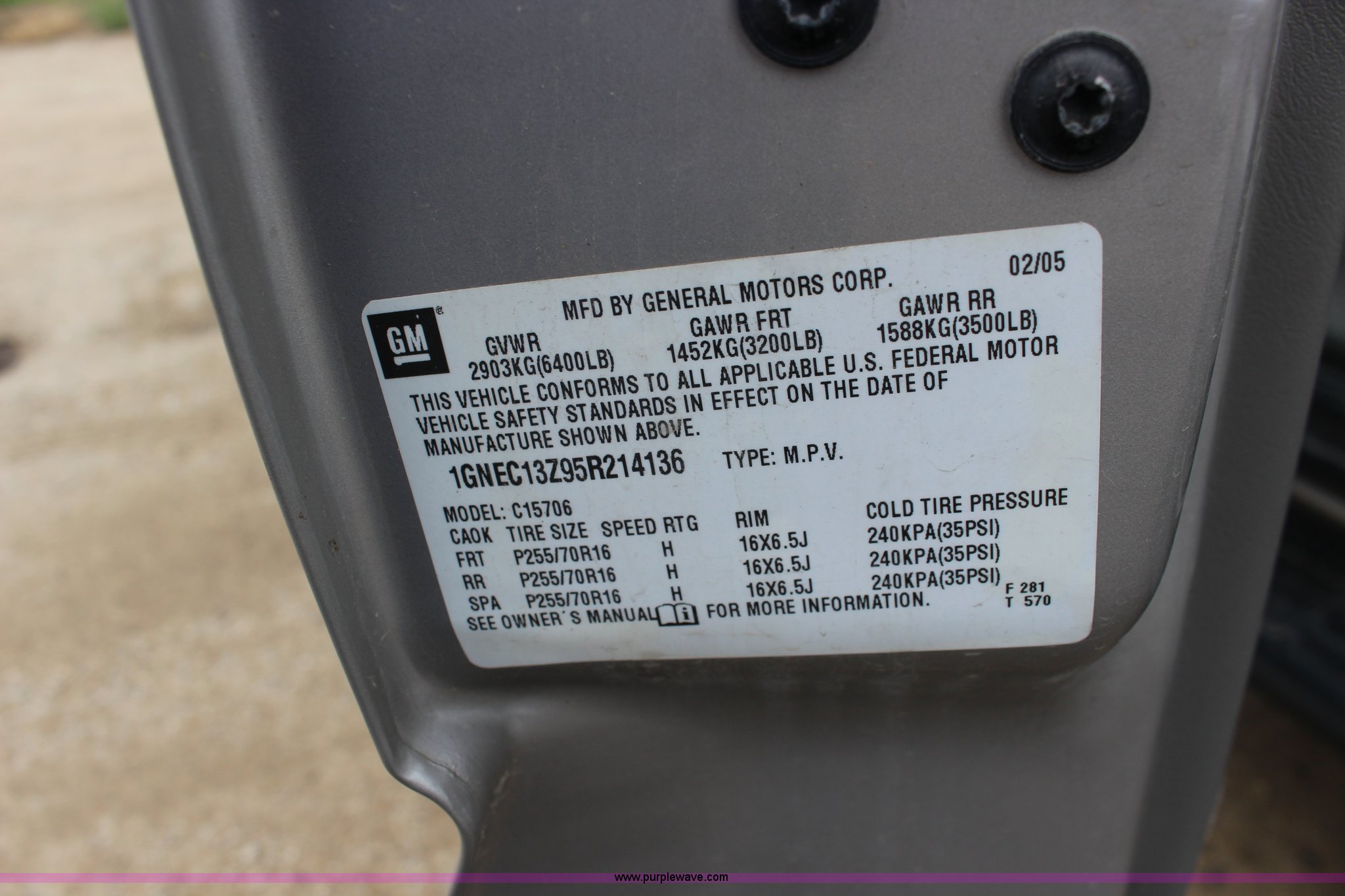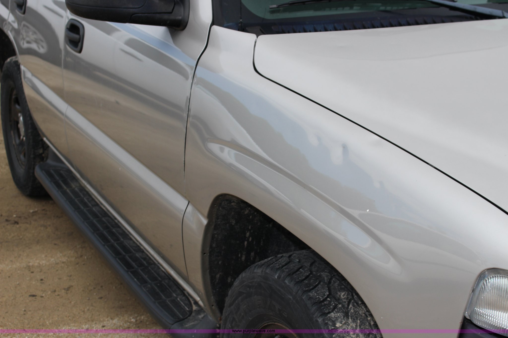 Purple Wave is selling a used Passenger Vehicle in Kansas. This item is a 2005 Chevrolet Tahoe SUV with the following: 115,683 miles on odometer, 5.3L V8 OHV 16V FFV gas engine, Automatic transmission, AC and heat, Tilt, Cruise, AM/FM/cassette, Power windows, locks, and mirrors, Cloth/vinyl interior, 16" tires, Hail damage