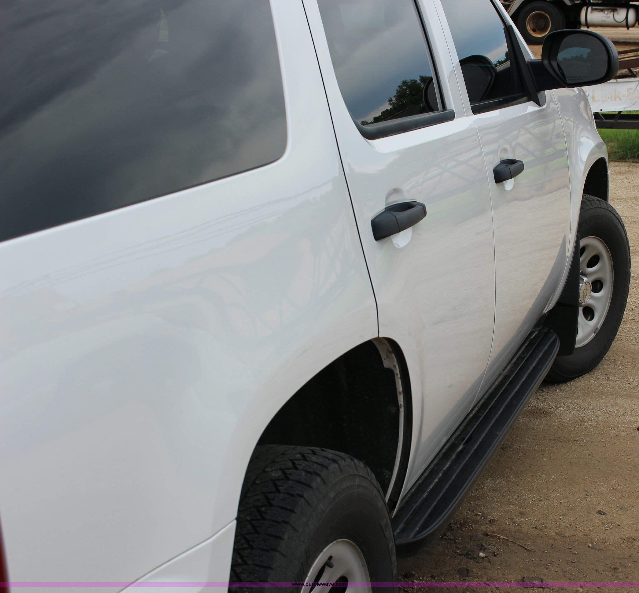 2012 Chevrolet Tahoe Police SUV. 153,075 miles on odometer, 5.3L V8 OHV 16V FFV gas engine, Automatic transmission, Four wheel drive, AC and heat, Tilt, Cruise, AM/FM/CD, Power windows, locks, and mirrors, Cloth/vinyl interior, 265/70R17 tires, Previously used as a K-9 unit. Kansas title. 1GNSK2E07CR193858. Dickinson County Sheriff. Abilene, KS 67410