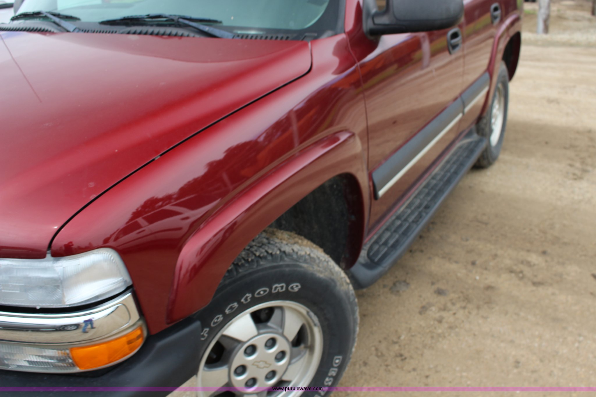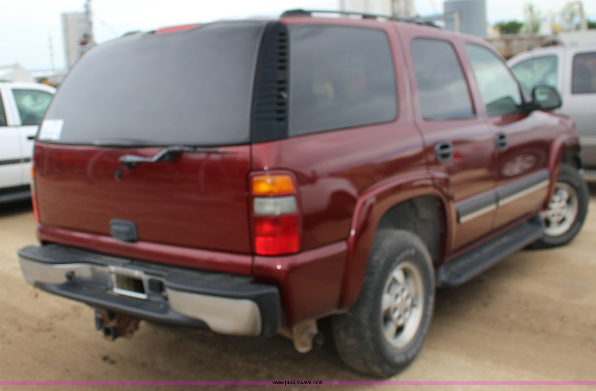 Purple Wave is selling a used Passenger Vehicle in Kansas. This item is a 2003 Chevrolet Tahoe SUV with the following: 124,622 miles on odometer, 5.3L V8 OHV 16V FFV gas engine, Automatic transmission, AC and heat, Tilt, Cruise, Power windows, locks, mirrors, and seat, Cloth interior, 245/75R16 tires