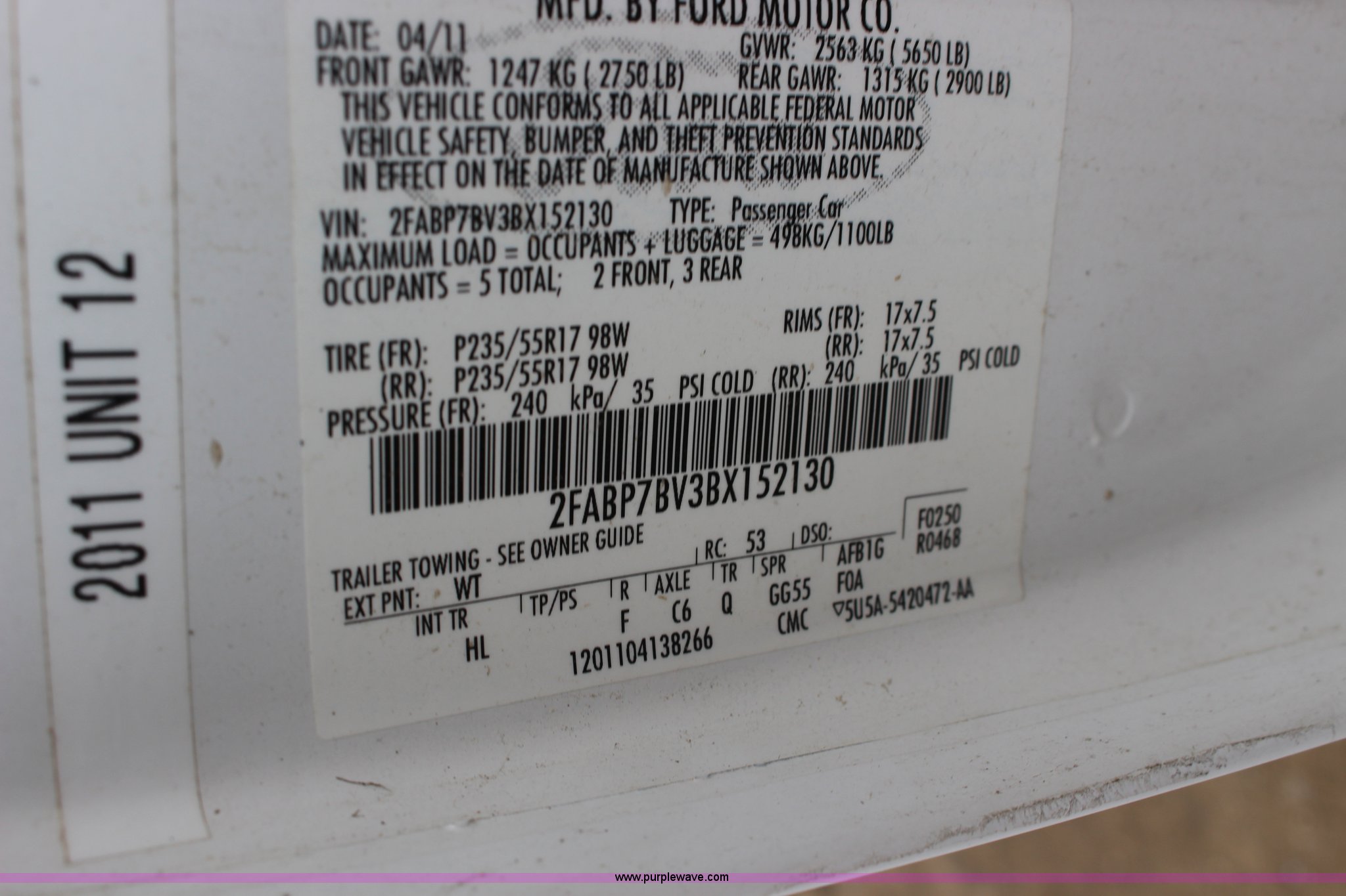 Purple Wave is selling a used Passenger Vehicle in Kansas. This item is a 2011 Ford Crown Victoria Police Interceptor with the following: 146,041 miles on odometer, 4.6L V8 SOHC 16V FFV gas engine, Automatic transmission, AC and heat, Tilt, Cruise, AM/FM, Power windows, locks, and mirrors, Cloth interior, 235/55R17 tires
