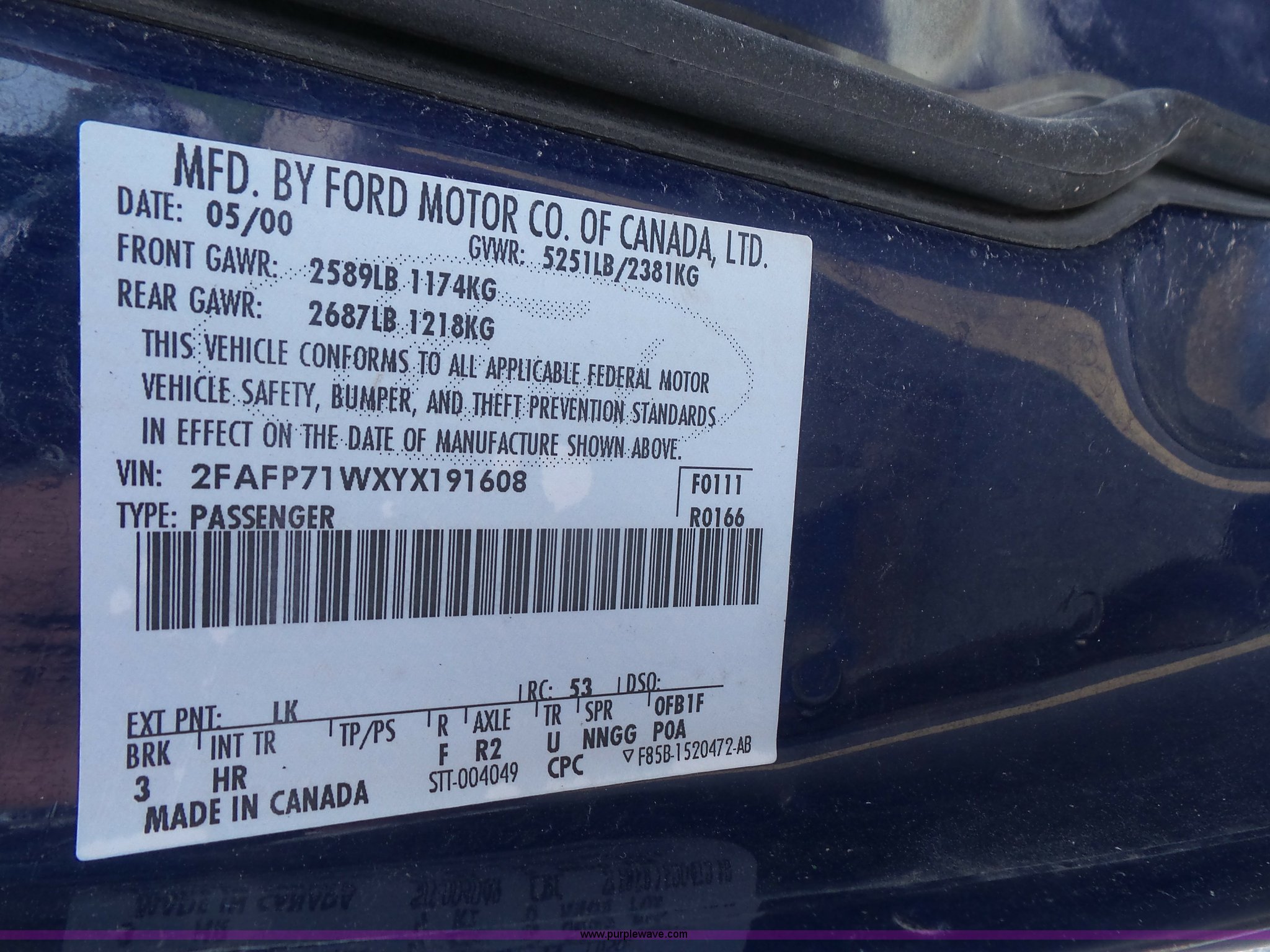 Purple Wave is selling a used Passenger Vehicle in Kansas. This item is a 2000 Ford Crown Victoria Police Interceptor with the following: 151,994 miles on odometer, 4.6L V8 SOHC 16V gas engine, Automatic transmission, AC and heat, Tilt, AM/FM, Power windows, locks, and mirrors, Cloth interior, 225/60R16 tires, Cracked windshield, Unknown electric/charging issues