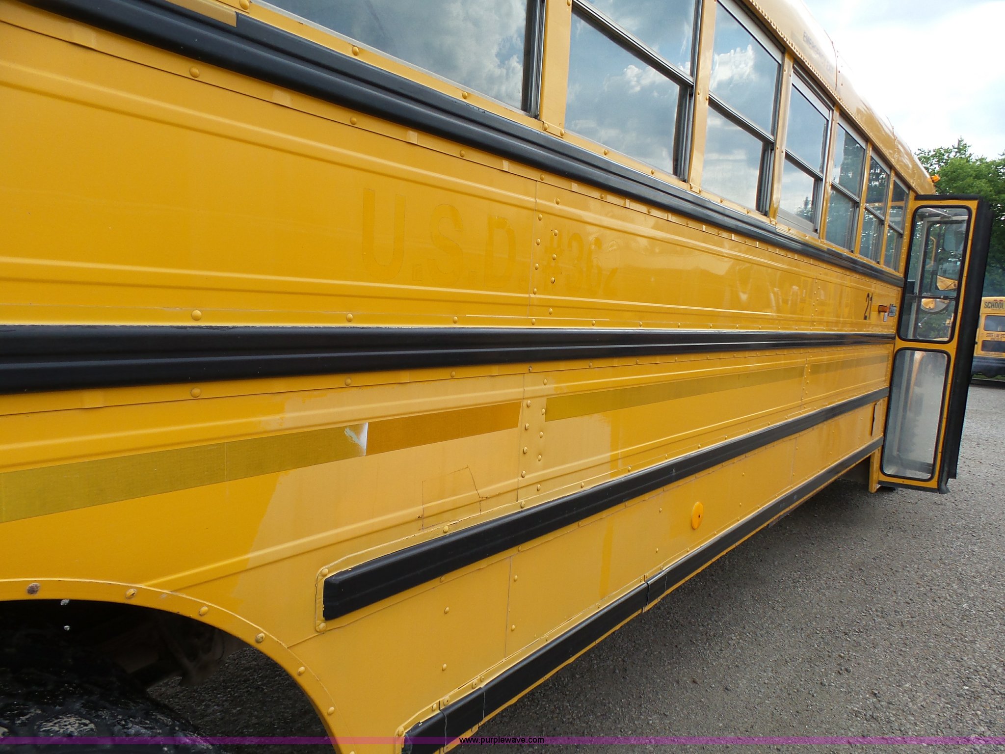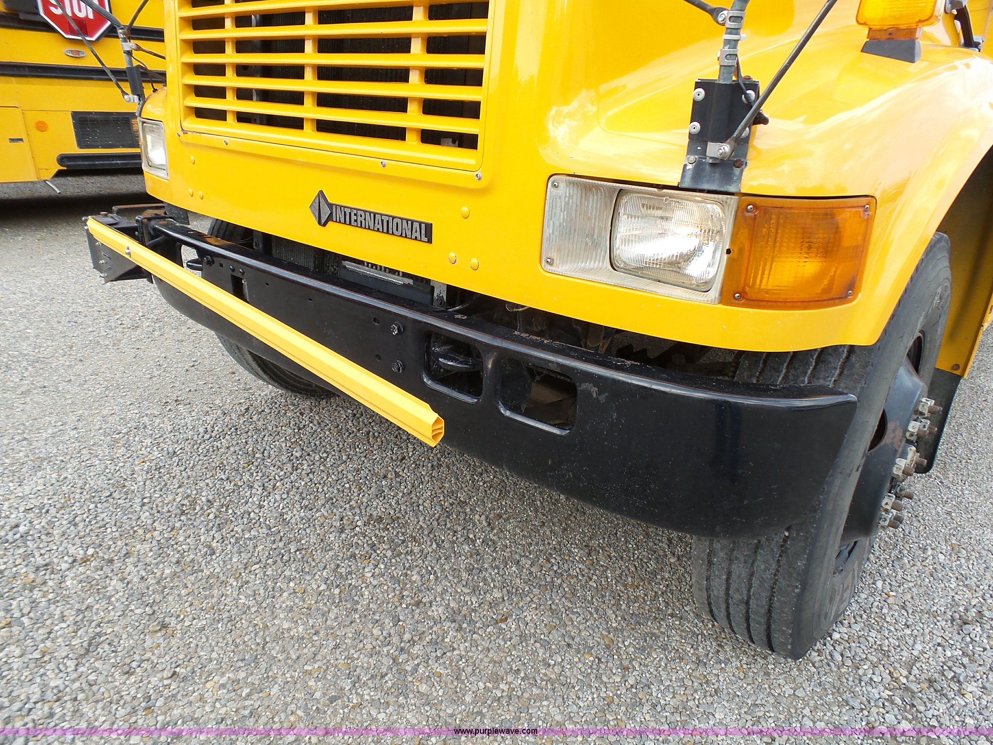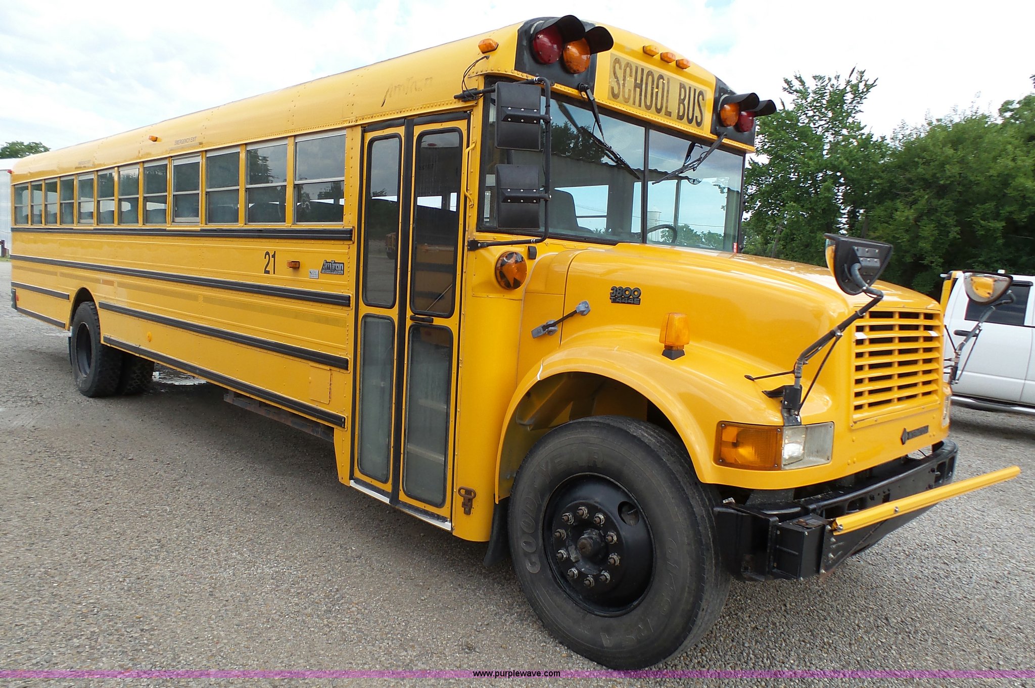 Purple Wave is selling a used Bus in Kansas. This item is a 2000 International 3800 school bus with the following: 209,943 miles on odometer, 8,867 hours on meter, International T444E 7.3L V8 turbo diesel engine, Automatic transmission, Single axle, Heat, AM/FM, Air suspension seat, 71 passenger capacity, Ceiling, rear, and side emergency egress, Stop sign, Hydraulic brakes, 11R22.5 tires