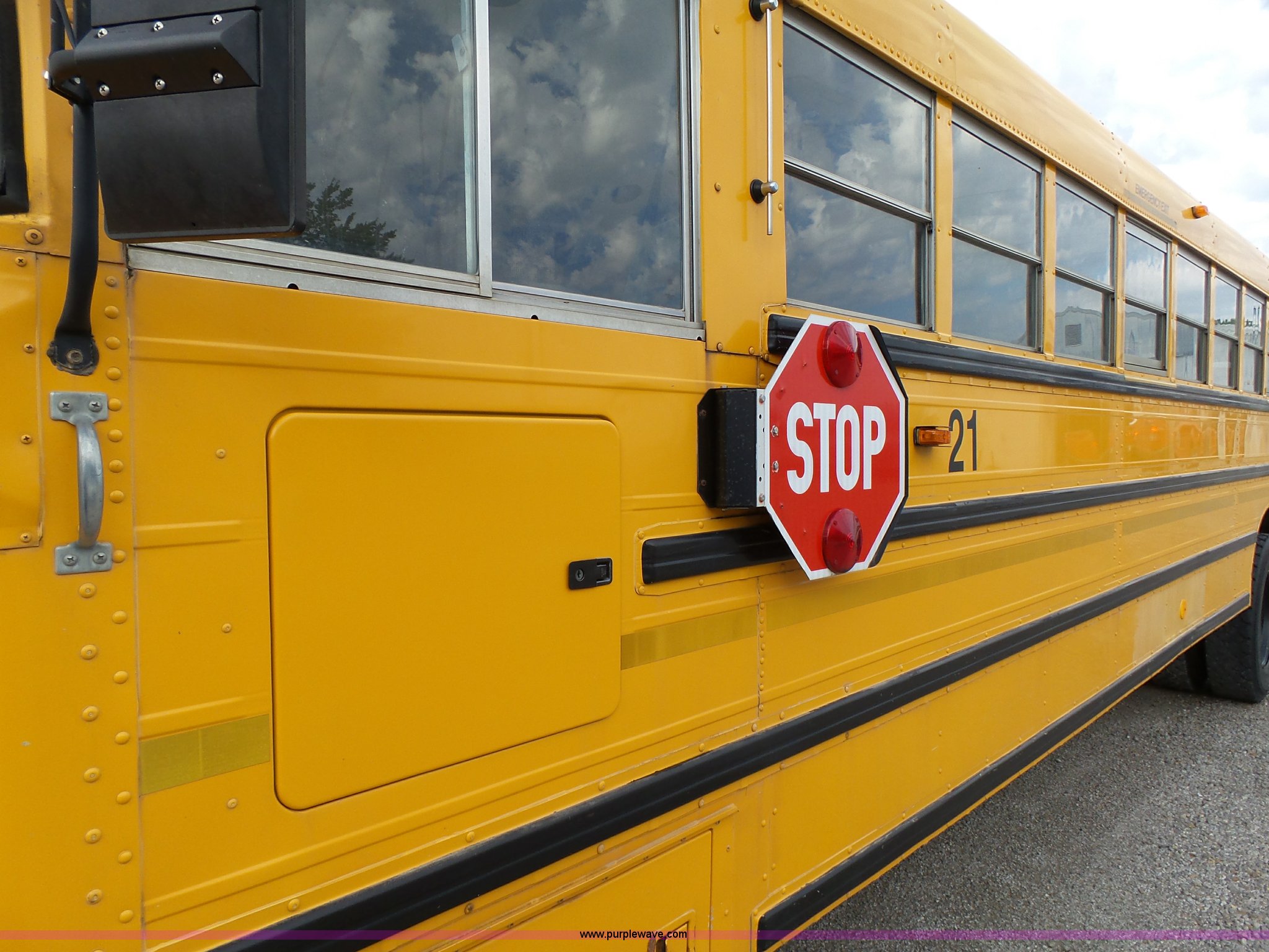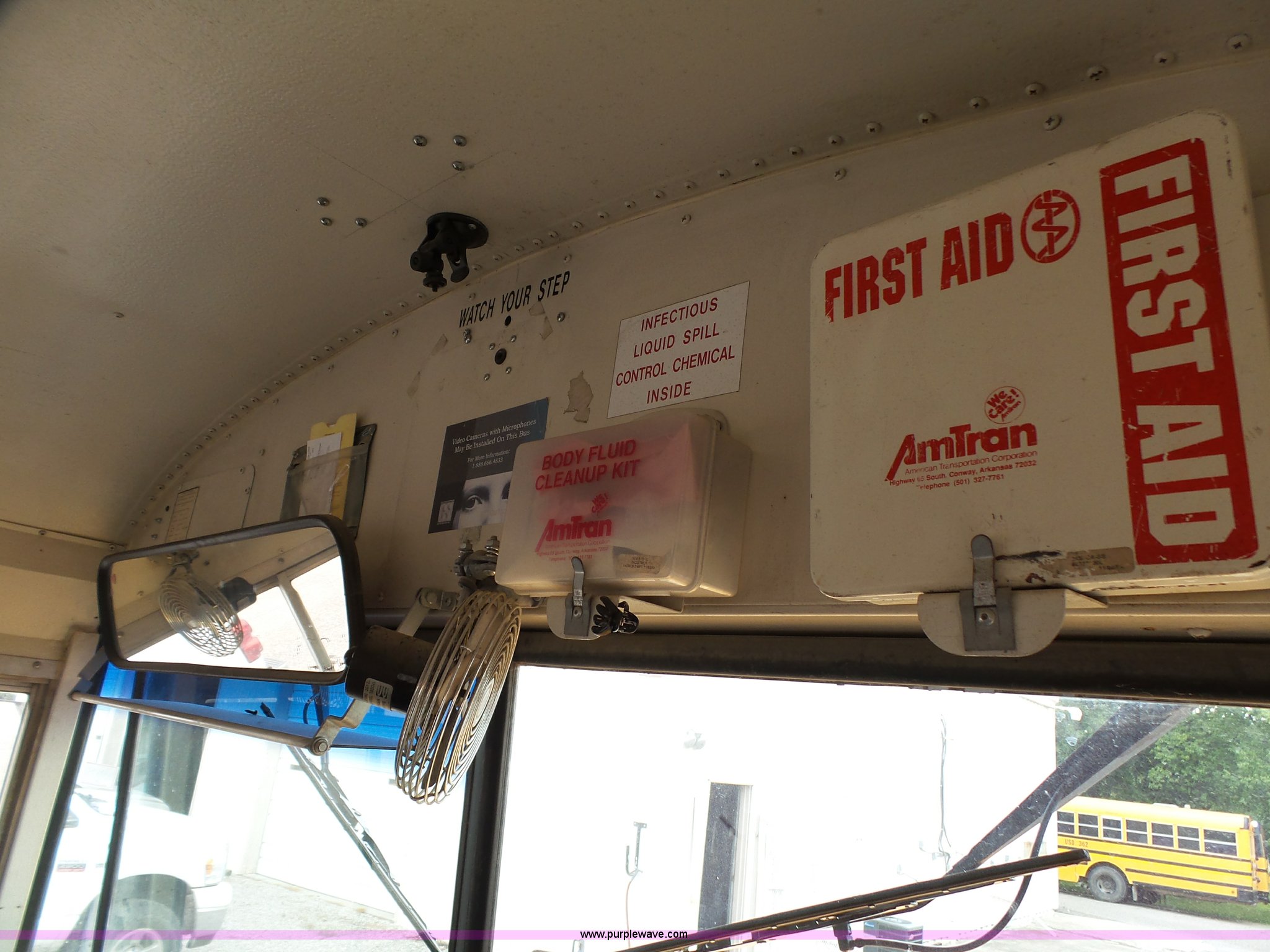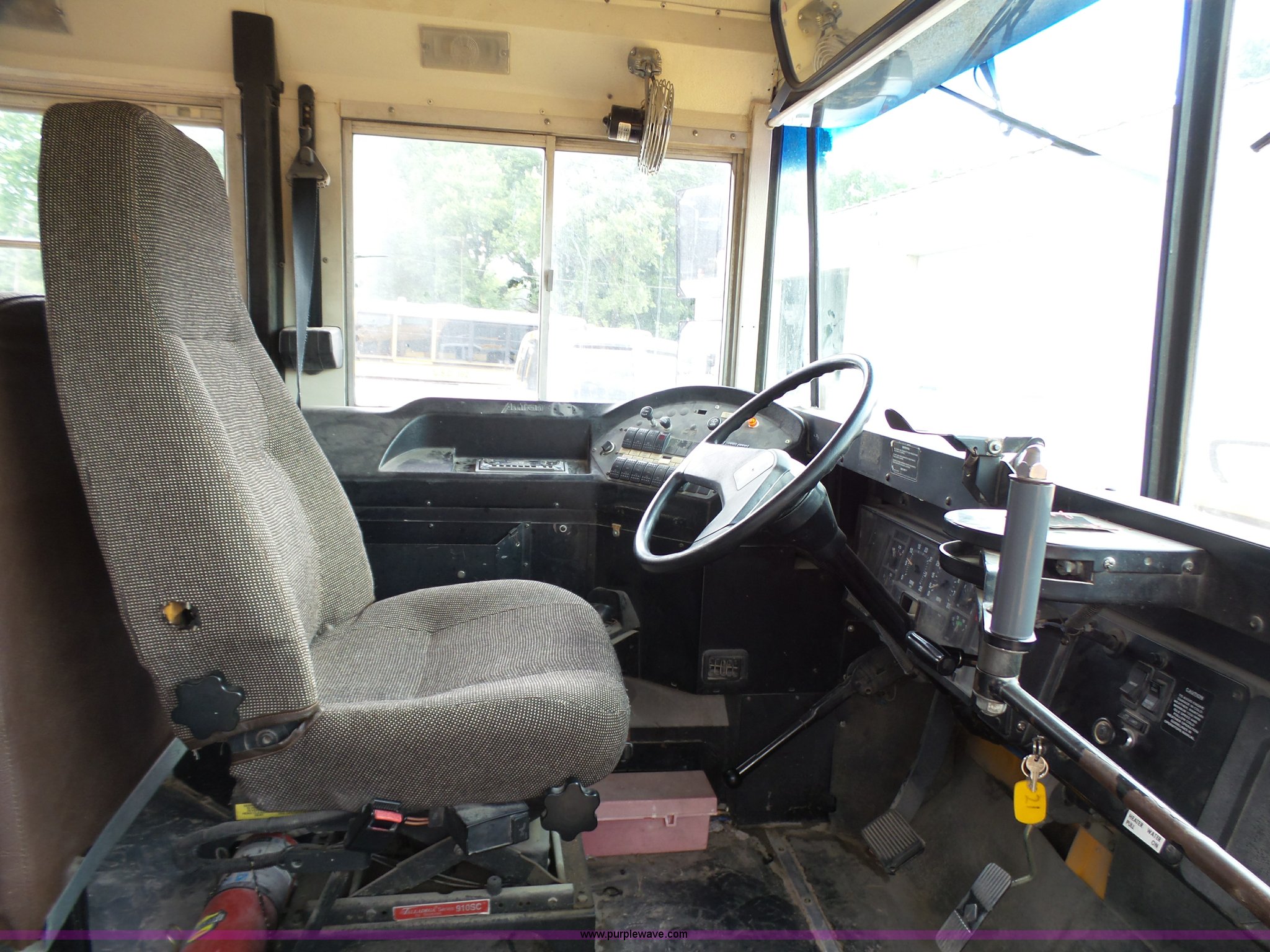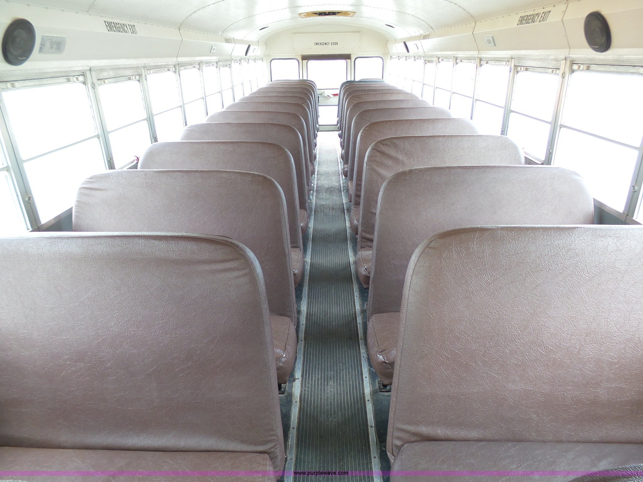 Purple Wave is selling a used Bus in Kansas. This item is a 2000 International 3800 school bus with the following: 209,943 miles on odometer, 8,867 hours on meter, International T444E 7.3L V8 turbo diesel engine, Automatic transmission, Single axle, Heat, AM/FM, Air suspension seat, 71 passenger capacity, Ceiling, rear, and side emergency egress, Stop sign, Hydraulic brakes, 11R22.5 tires