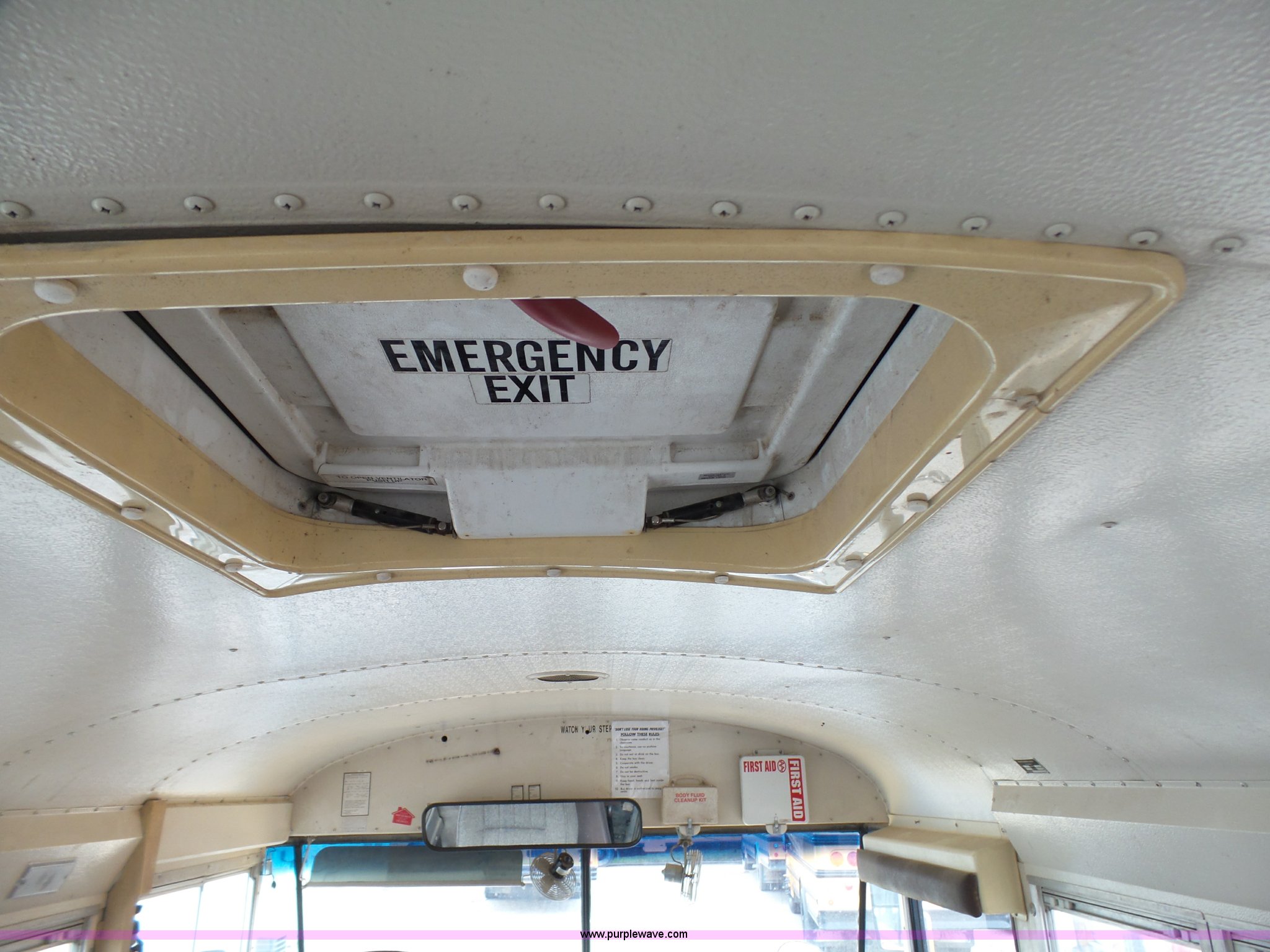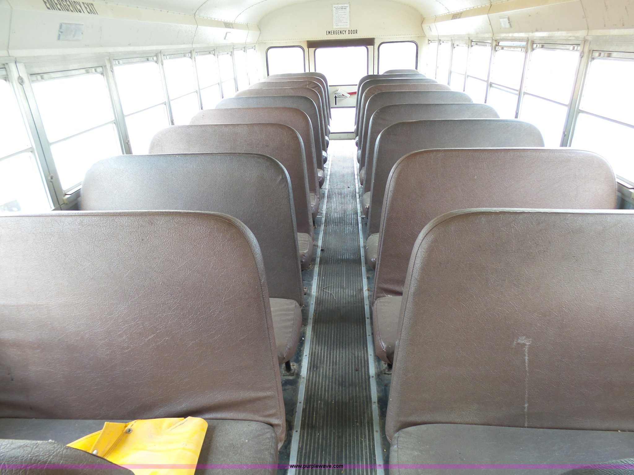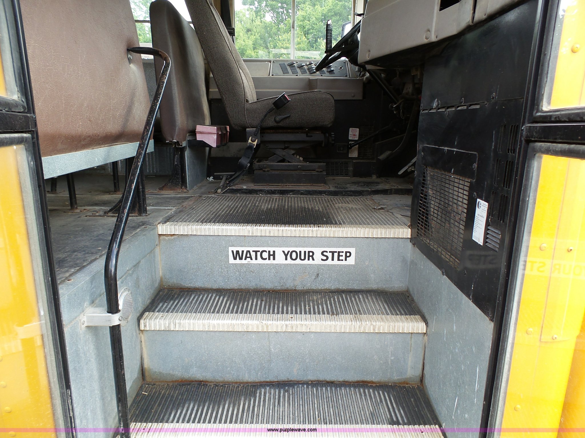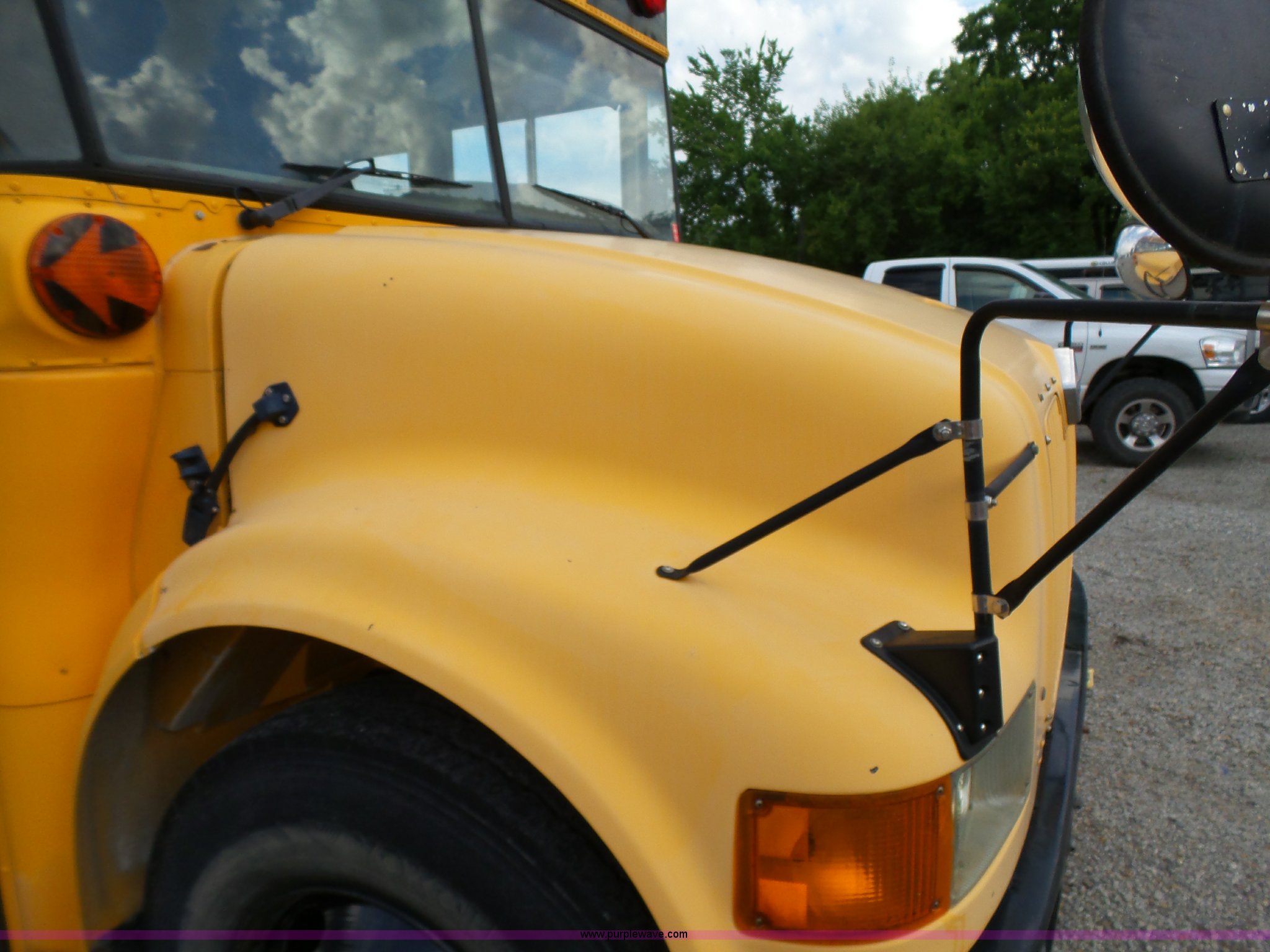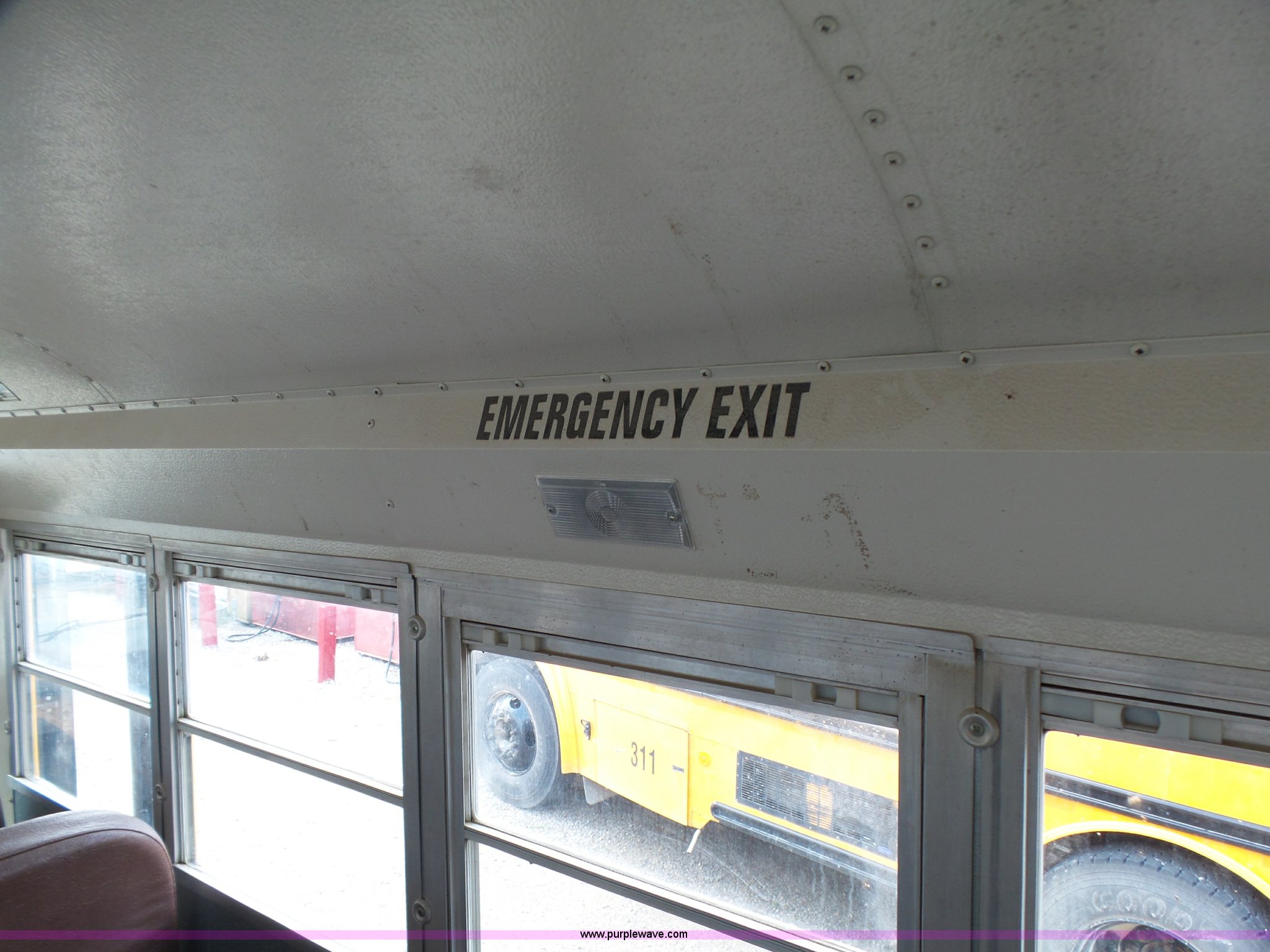 Purple Wave is selling a used Bus in Kansas. This item is a 2002 International 3800 school bus with the following: 162,782 miles on odometer, 7,246 hours on meter, International T444E 7.3L V8 turbo diesel engine, Automatic transmission, Single axle, Heat, Suspension seat, 53 passenger capacity, Ceiling, rear, and side emergency egress, Stop sign, Hydraulic brakes, 11R22.5 tires