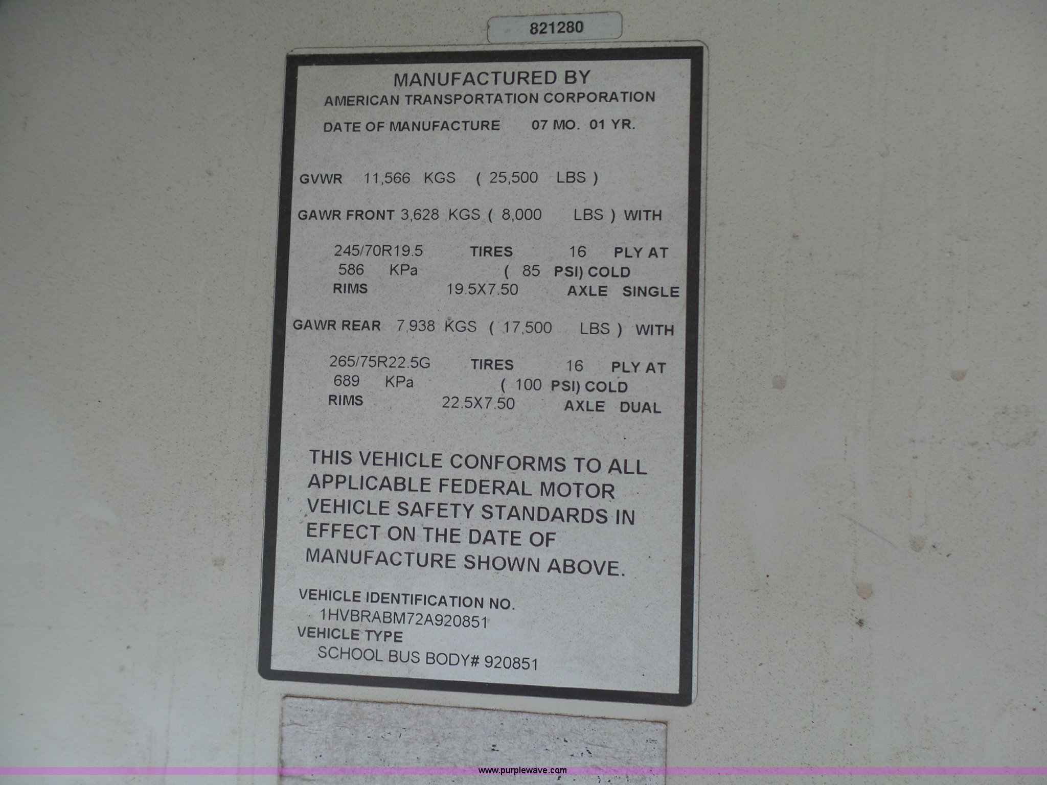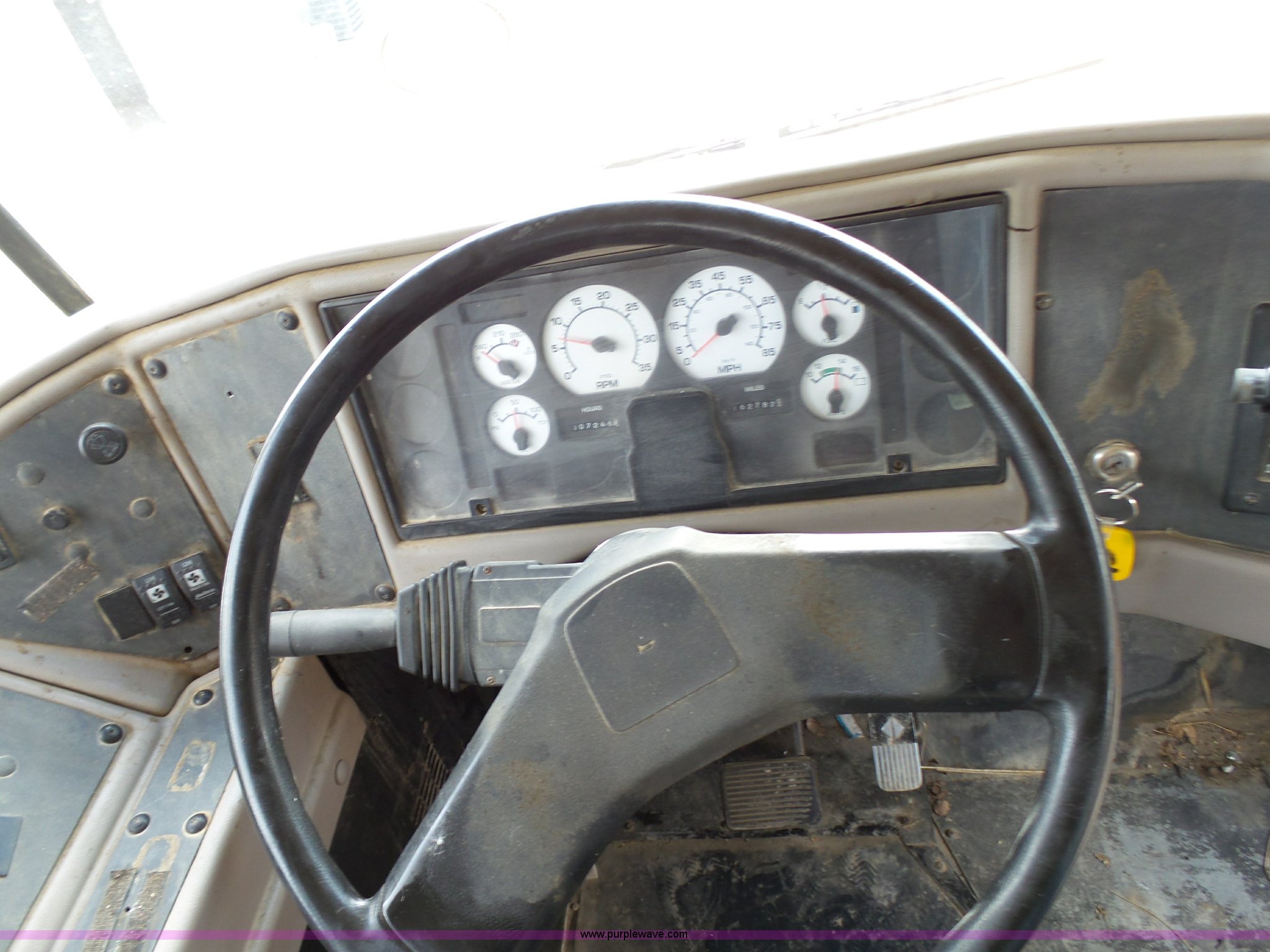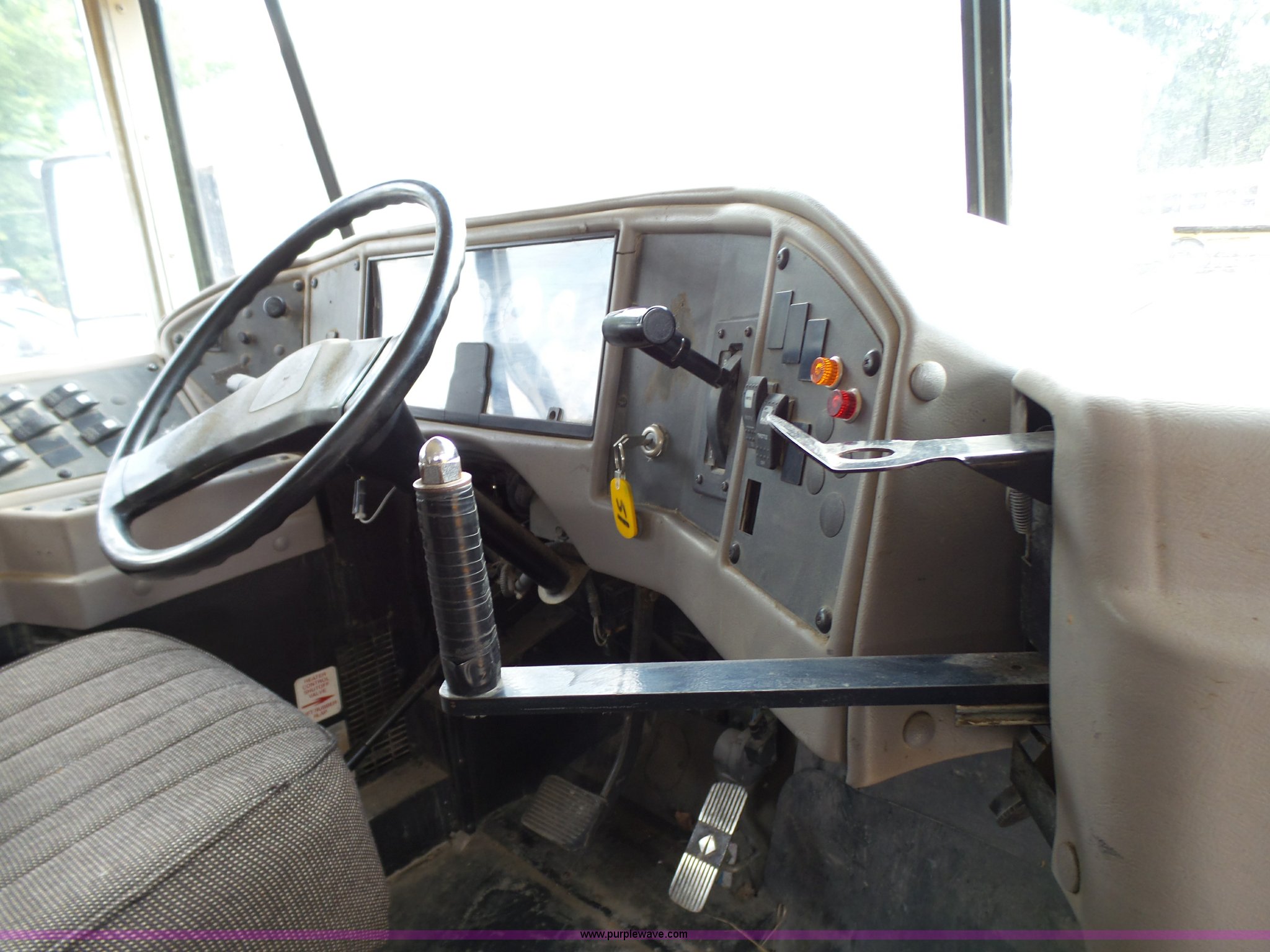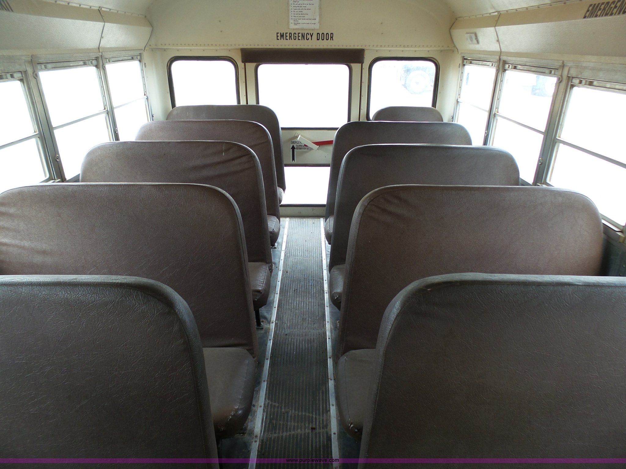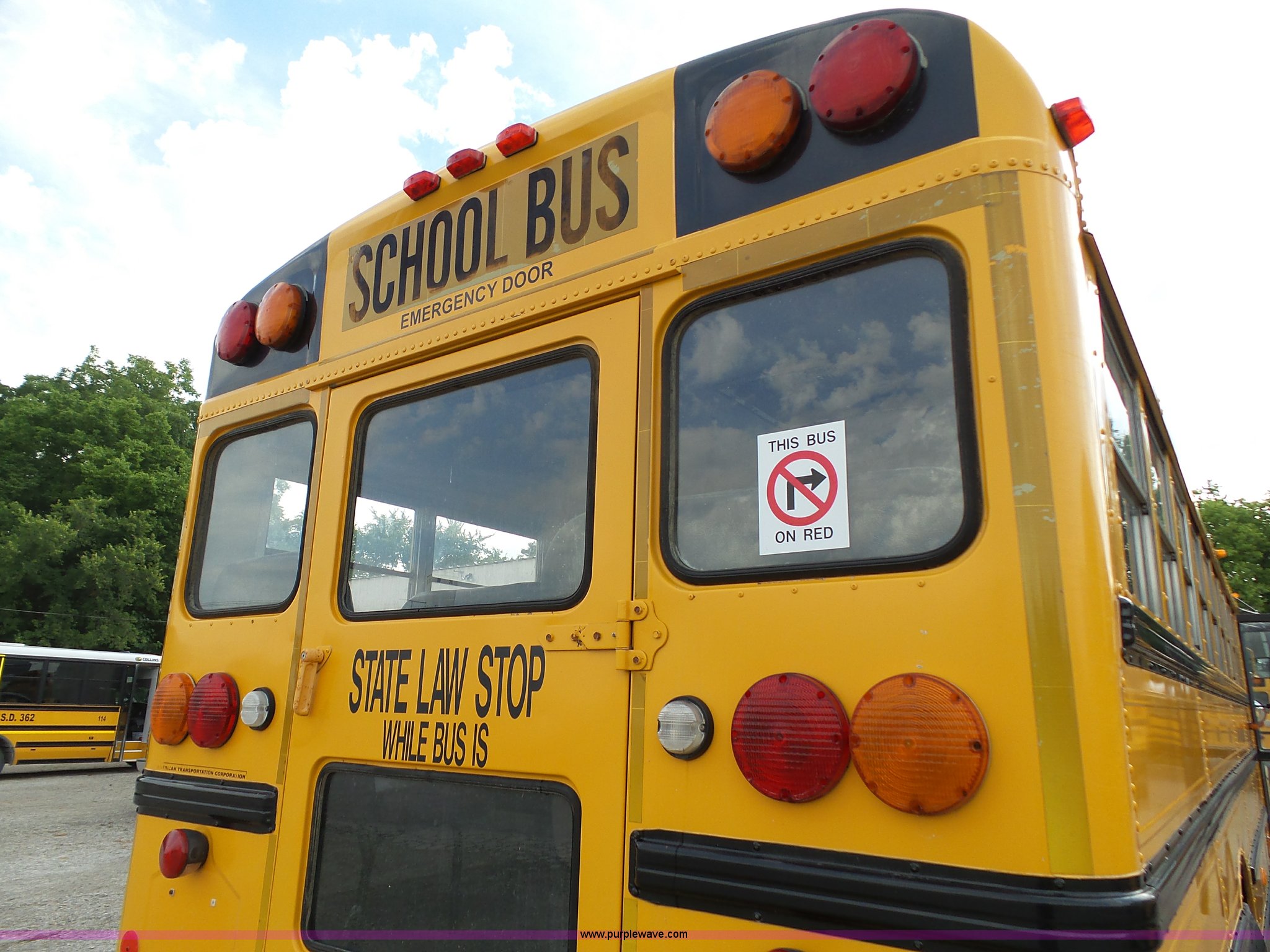Purple Wave is selling a used Bus in Kansas. This item is a 2002 International 3800 school bus with the following: 162,782 miles on odometer, 7,246 hours on meter, International T444E 7.3L V8 turbo diesel engine, Automatic transmission, Single axle, Heat, Suspension seat, 53 passenger capacity, Ceiling, rear, and side emergency egress, Stop sign, Hydraulic brakes, 11R22.5 tires