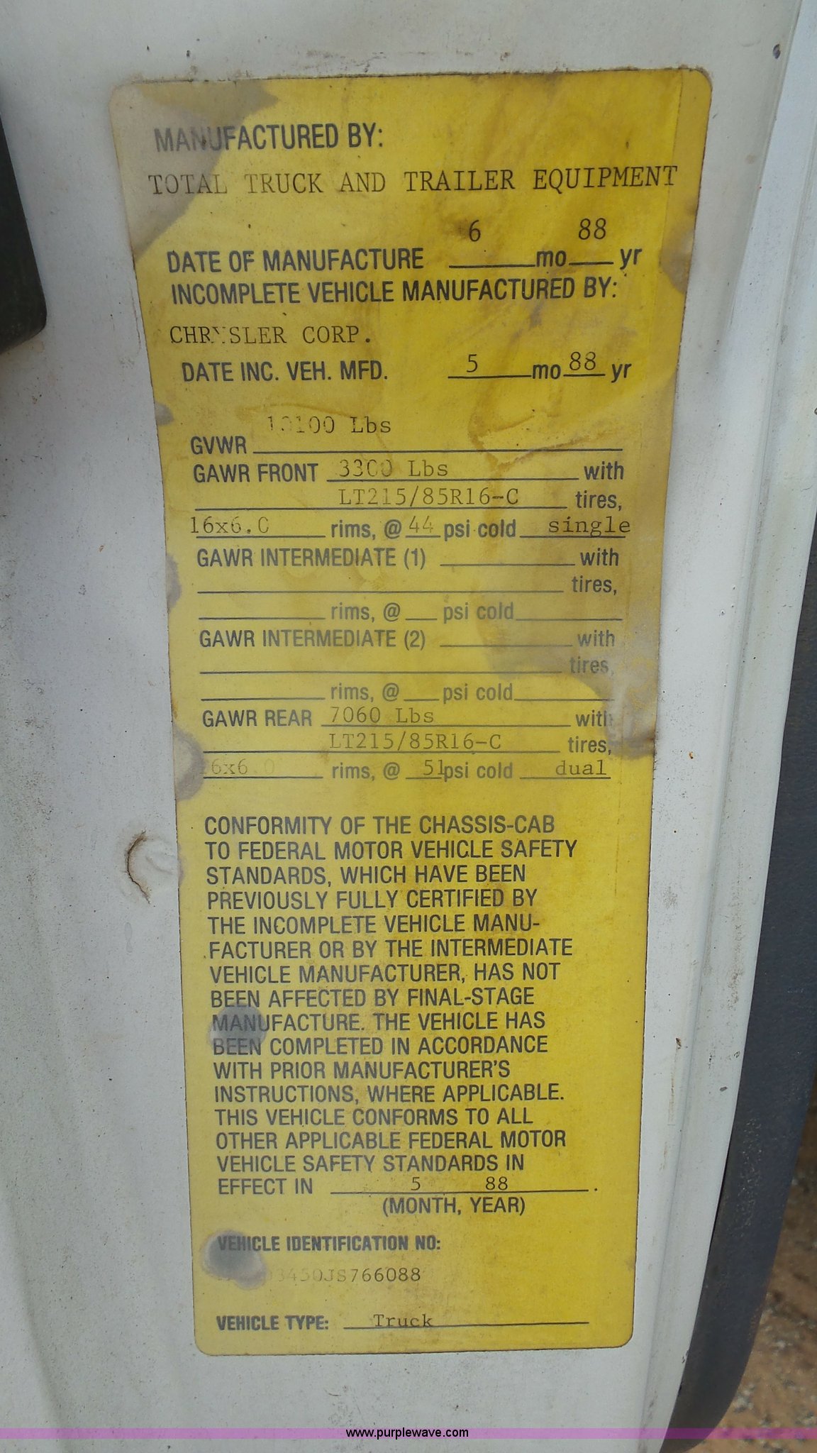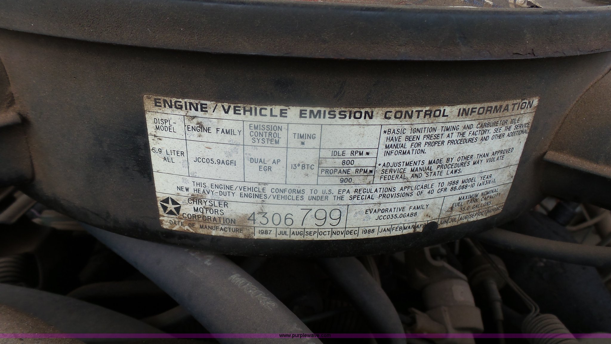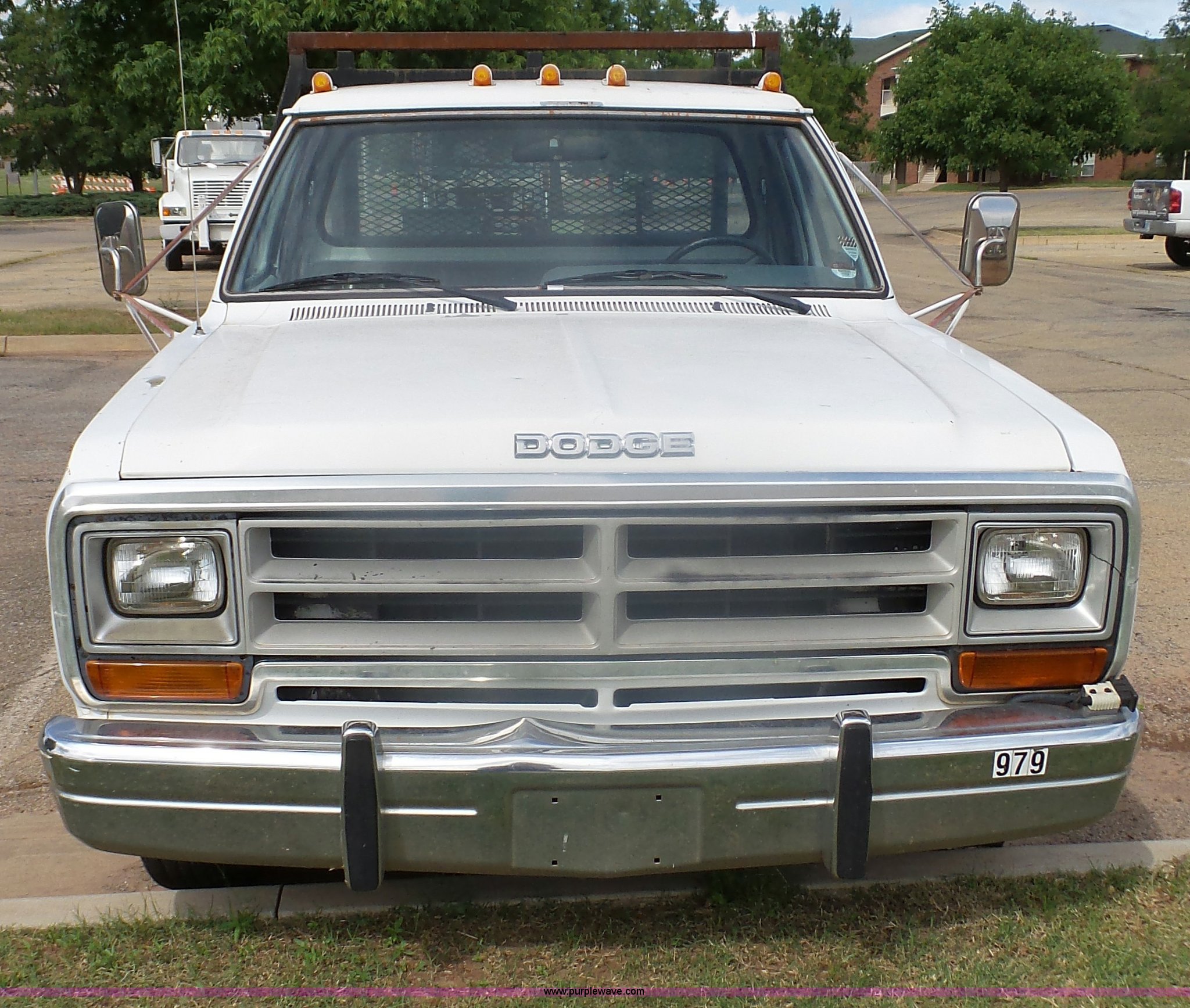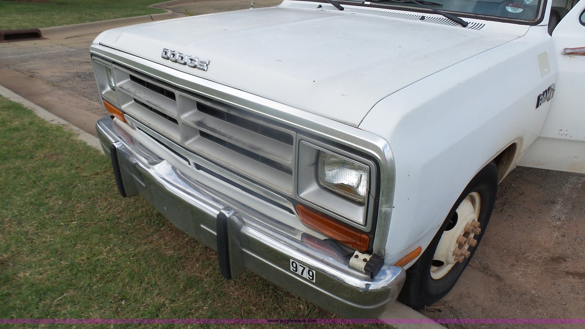 Purple Wave is selling a used 3/4 or 1 Ton Pickup or Van in Oklahoma. This item is a 1988 Dodge D350 flatbed pickup truck with the following: 68,537 miles on odometer, 5.9L V8 gas engine, Automatic transmission, AC and heat, AM/FM/CD, Manual windows and locks, Vinyl interior, 8'L x 89"W flatbed, 235/85R16 tires, Sale# 1702KP, Unit# 979