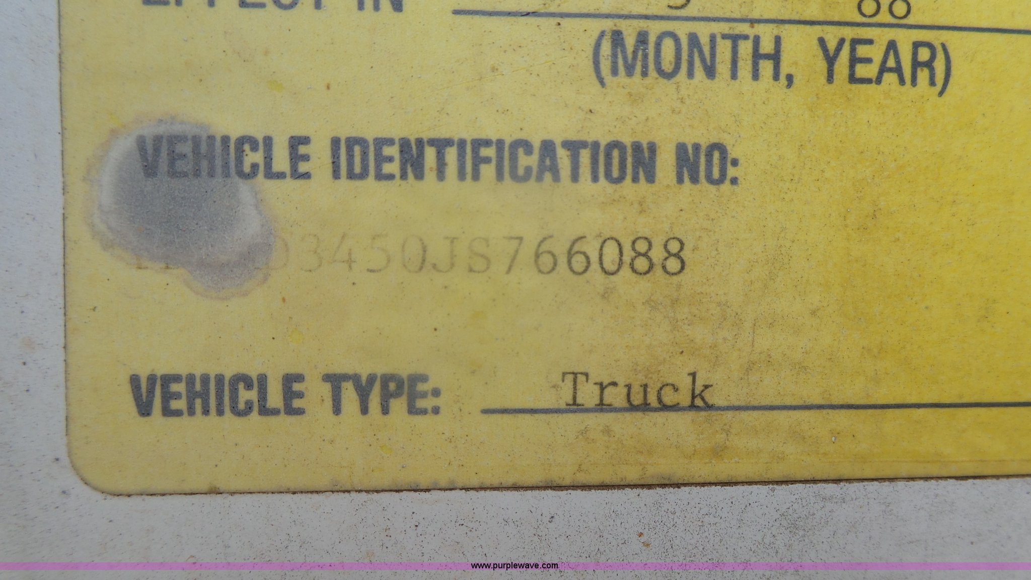 1988 Dodge D350 flatbed pickup truck. 68,537 miles on odometer, 5.9L V8 gas engine, Automatic transmission, AC and heat, AM/FM/CD, Manual windows and locks, Vinyl interior, 8'L x 89"W flatbed, 235/85R16 tires, Sale# 1702KP, Unit# 979. Oklahoma title. 1B6MD3450JS766088. 2024 West Farm Road. Stillwater, OK 74078