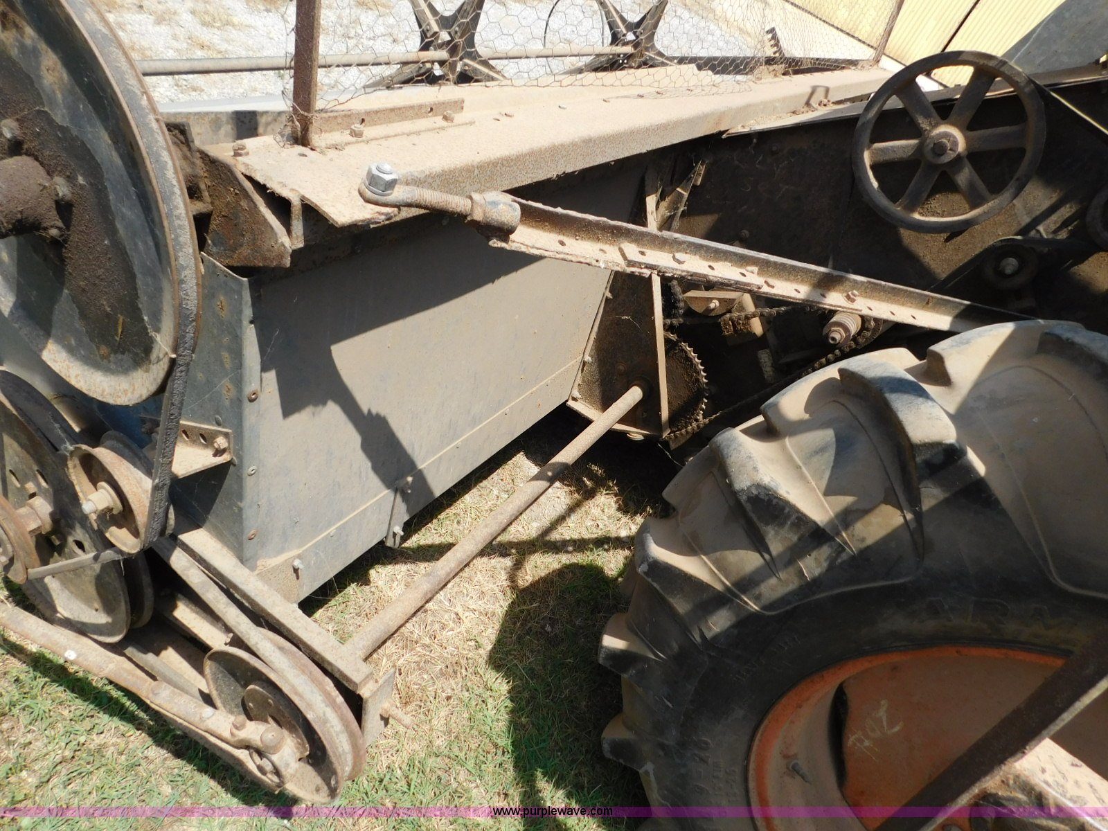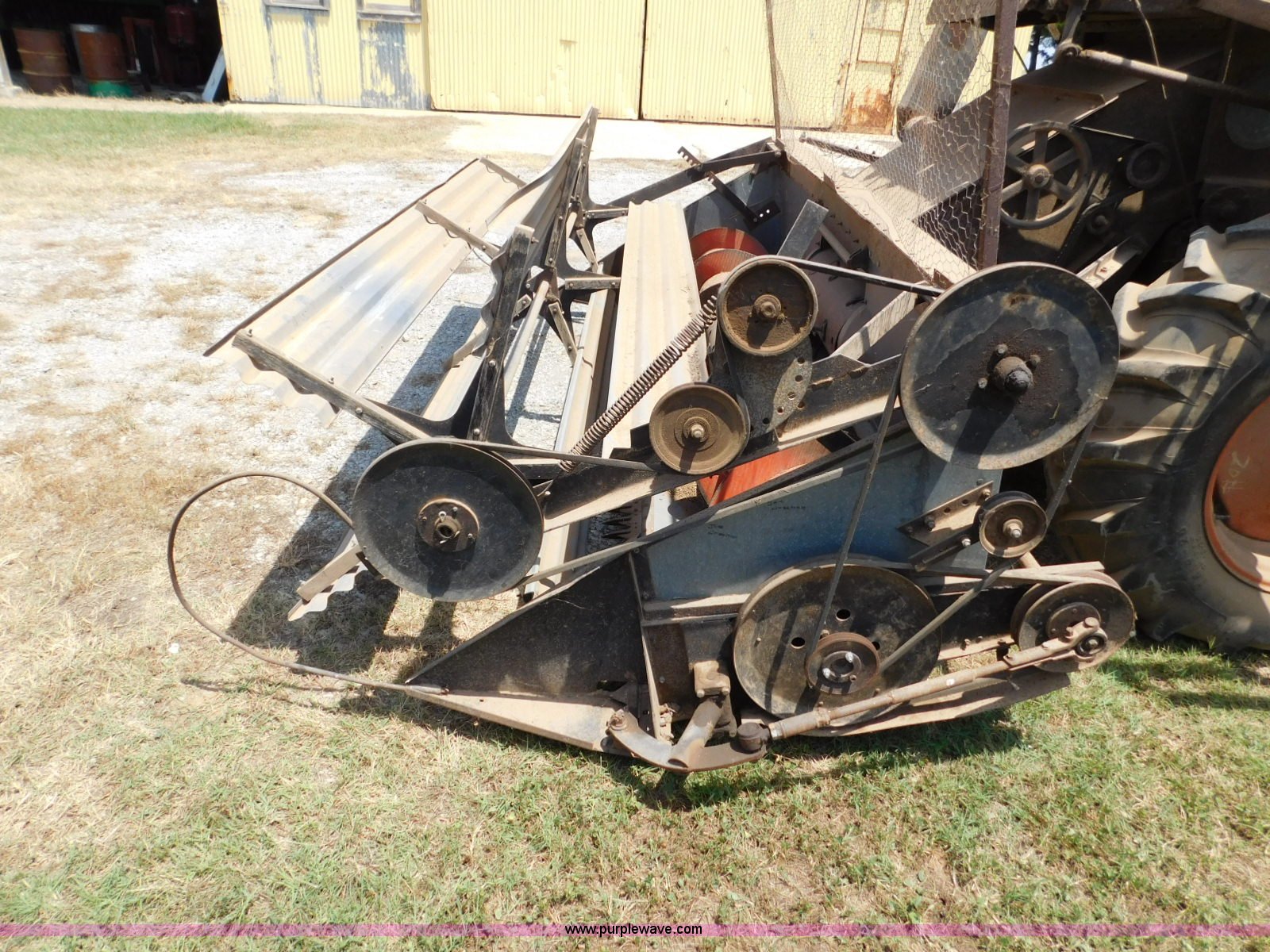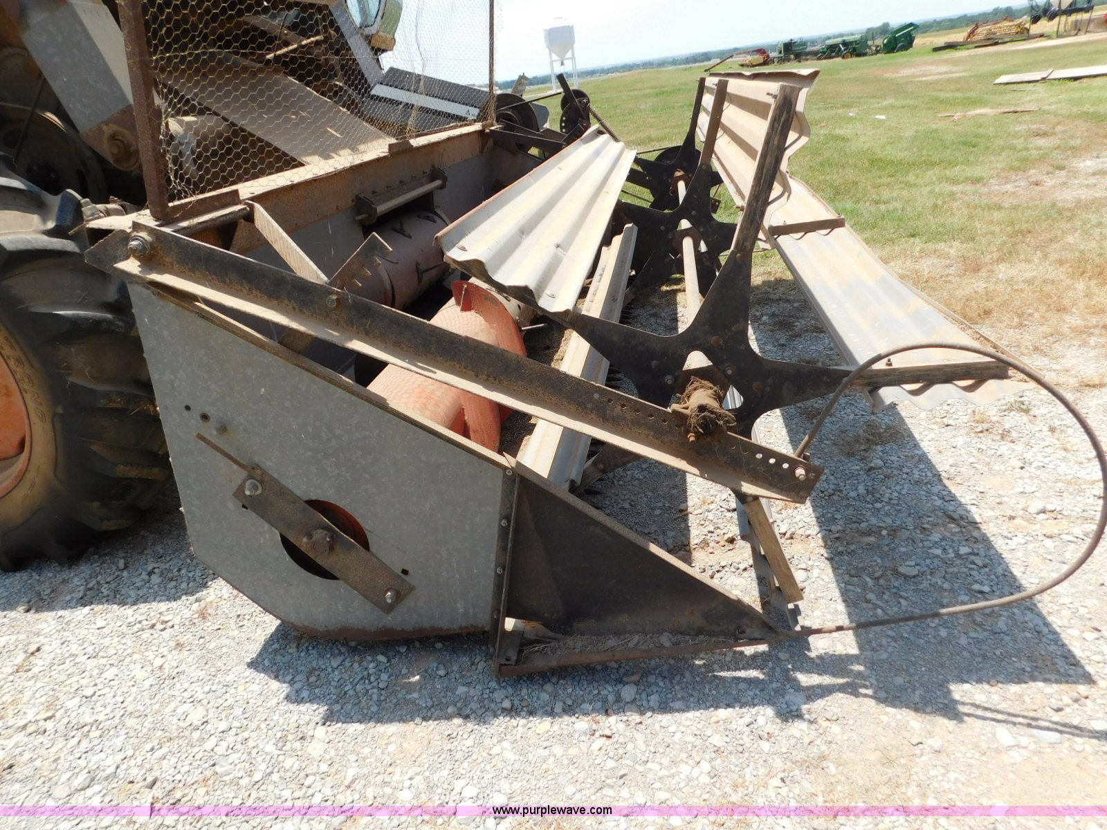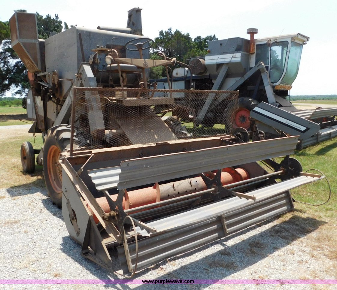 Purple Wave is selling a used Combine in Oklahoma. This item is a Gleaner A combine with the following: Six cylinder gas engine, Manual transmission, 4F-2R gears, 8'L unloading auger, Gleaner rigid head, 11'W, 14.9-26 front tires, 6-16 rear tires, Unknown operating condition, Sale# 1652KP