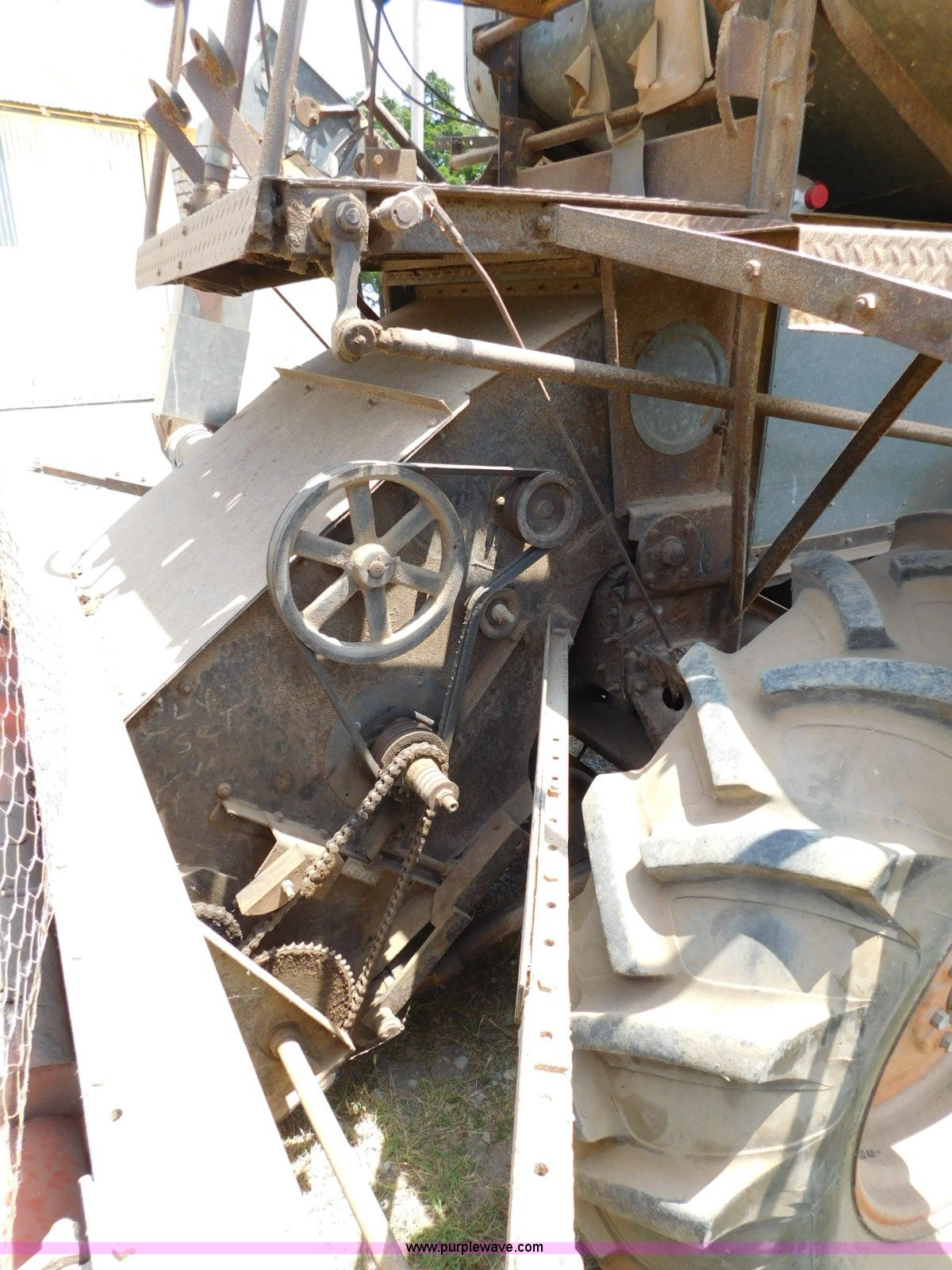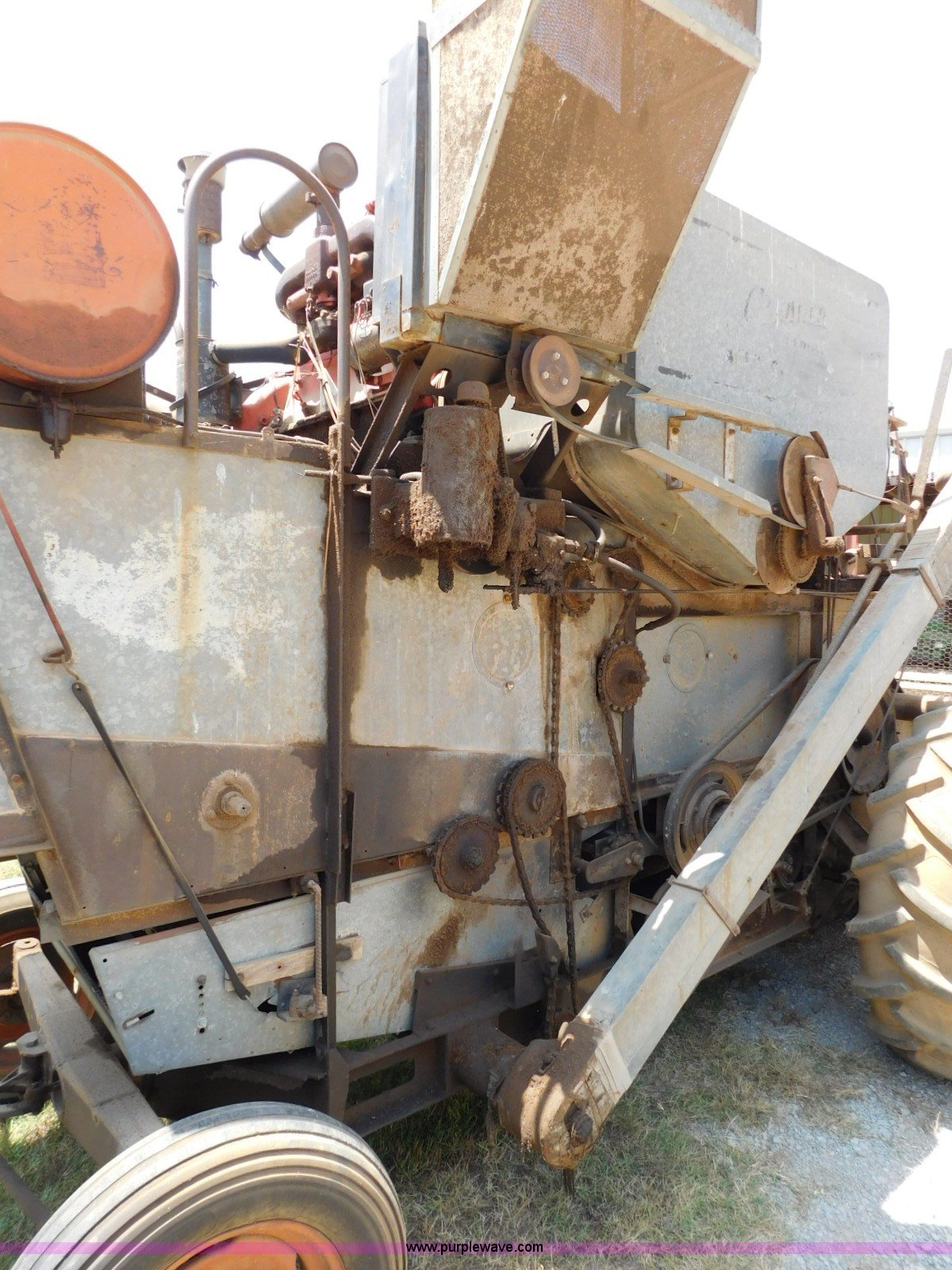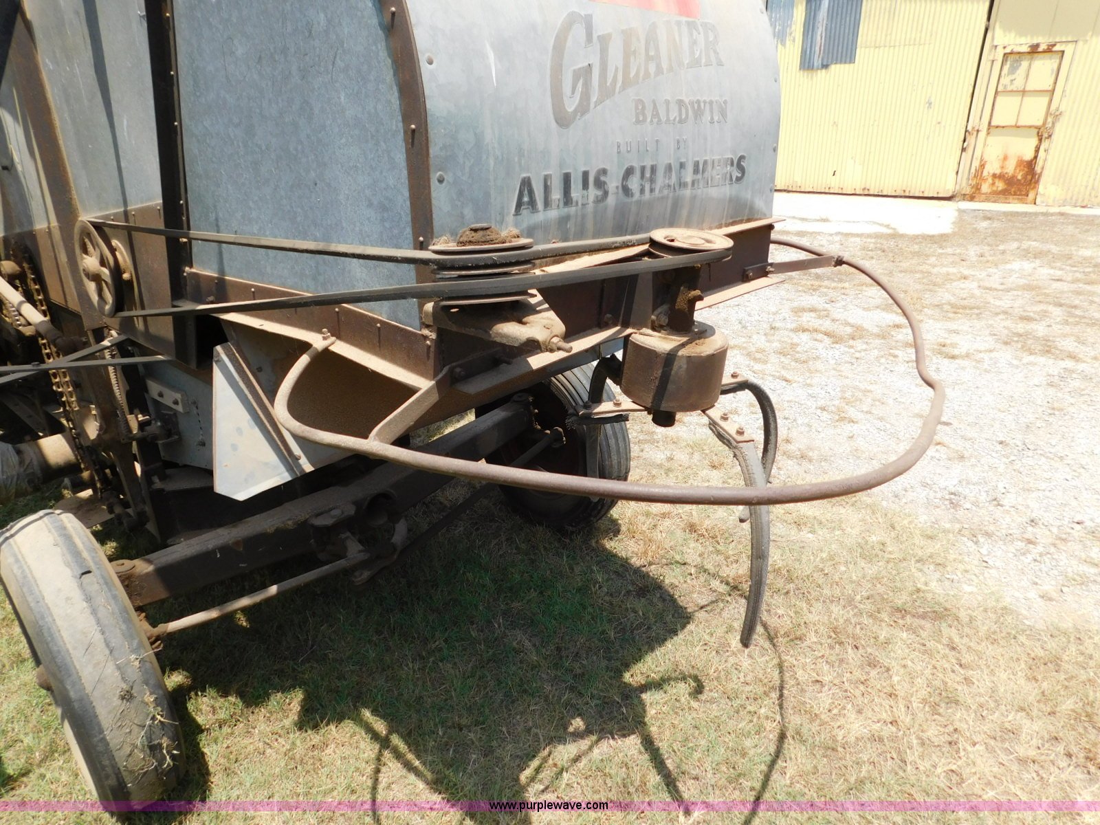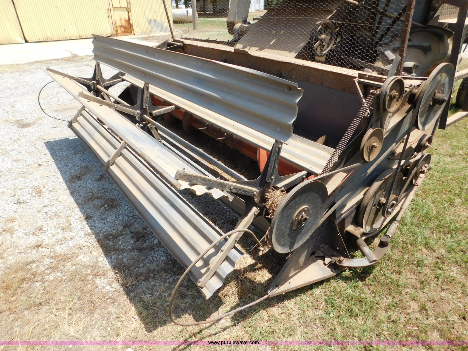 Purple Wave is selling a used Combine in Oklahoma. This item is a Gleaner A combine with the following: Six cylinder gas engine, Manual transmission, 4F-2R gears, 8'L unloading auger, Gleaner rigid head, 11'W, 14.9-26 front tires, 6-16 rear tires, Unknown operating condition, Sale# 1652KP