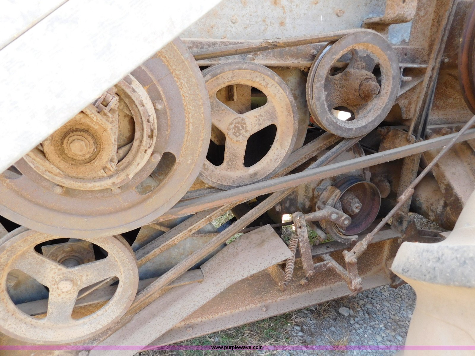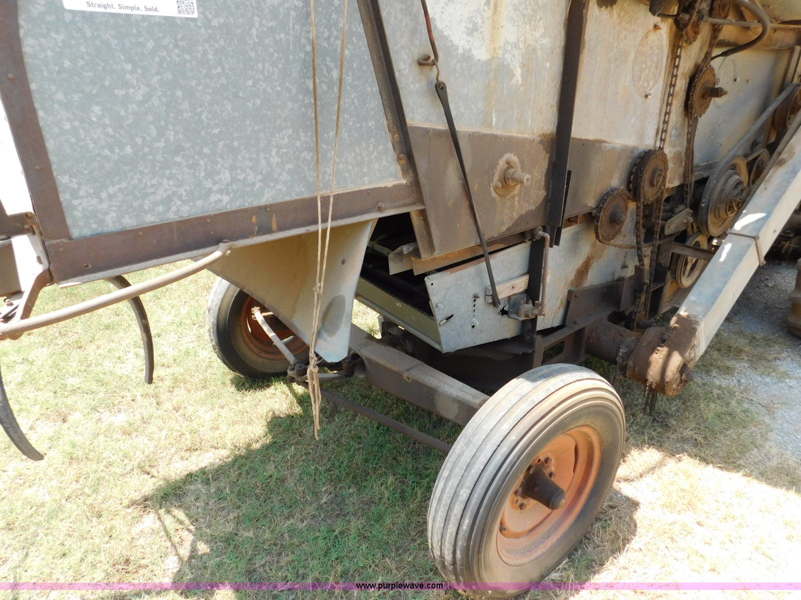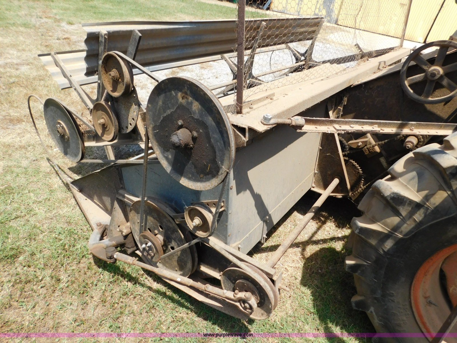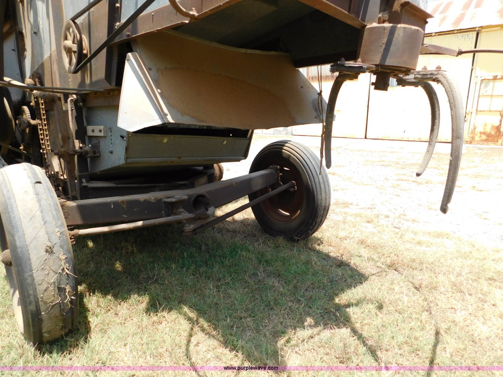 Purple Wave is selling a used Combine in Oklahoma. This item is a Gleaner A combine with the following: Six cylinder gas engine, Manual transmission, 4F-2R gears, 8'L unloading auger, Gleaner rigid head, 11'W, 14.9-26 front tires, 6-16 rear tires, Unknown operating condition, Sale# 1652KP