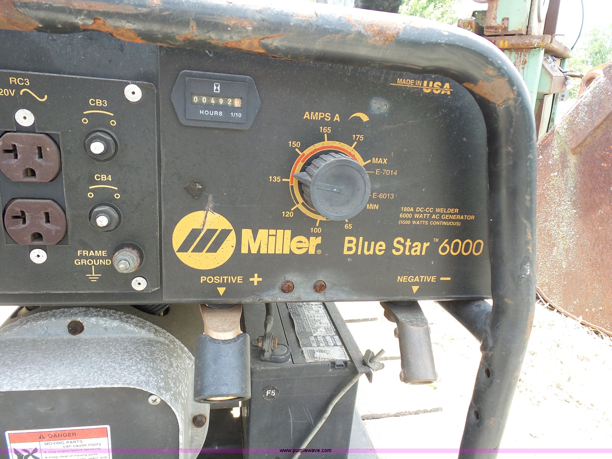 Purple Wave is selling a used Welder (Manual) in Missouri. This item is a Miller Blue Star welder with the following: 992 hours on meter, Honda GX380 gas engine, 13 HP, 120/240V