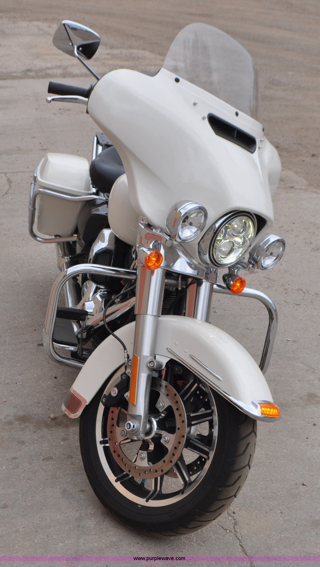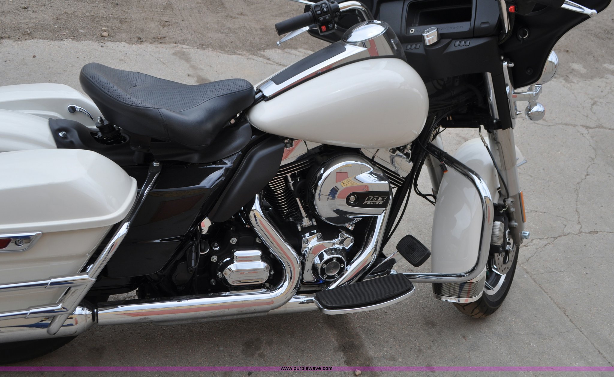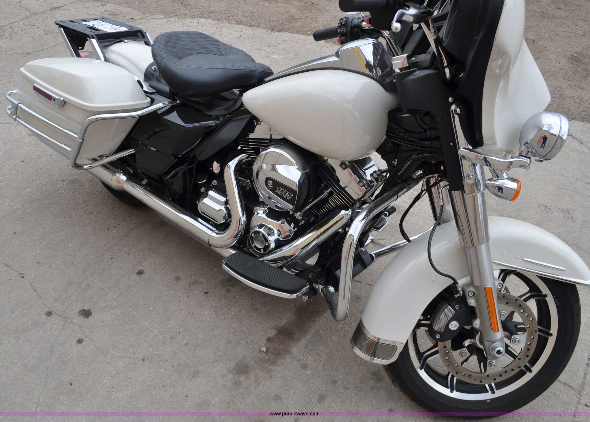 Purple Wave is selling a used Motorcycle in Colorado. This item is a 2014 Harley Davidson FLHTP Electra-glide Police motorcycle with the following: 4,576 miles on odometer, Evolution XL 103 C.I.D. twin cam gas engine, Six speed transmission, Windshield, Saddle bags, Dunlop D408T 130/80B17-M/C 65H front tire, Dunlop D407T 180/65B16-M/C 81H rear tire, Former sheriff department motorcycle