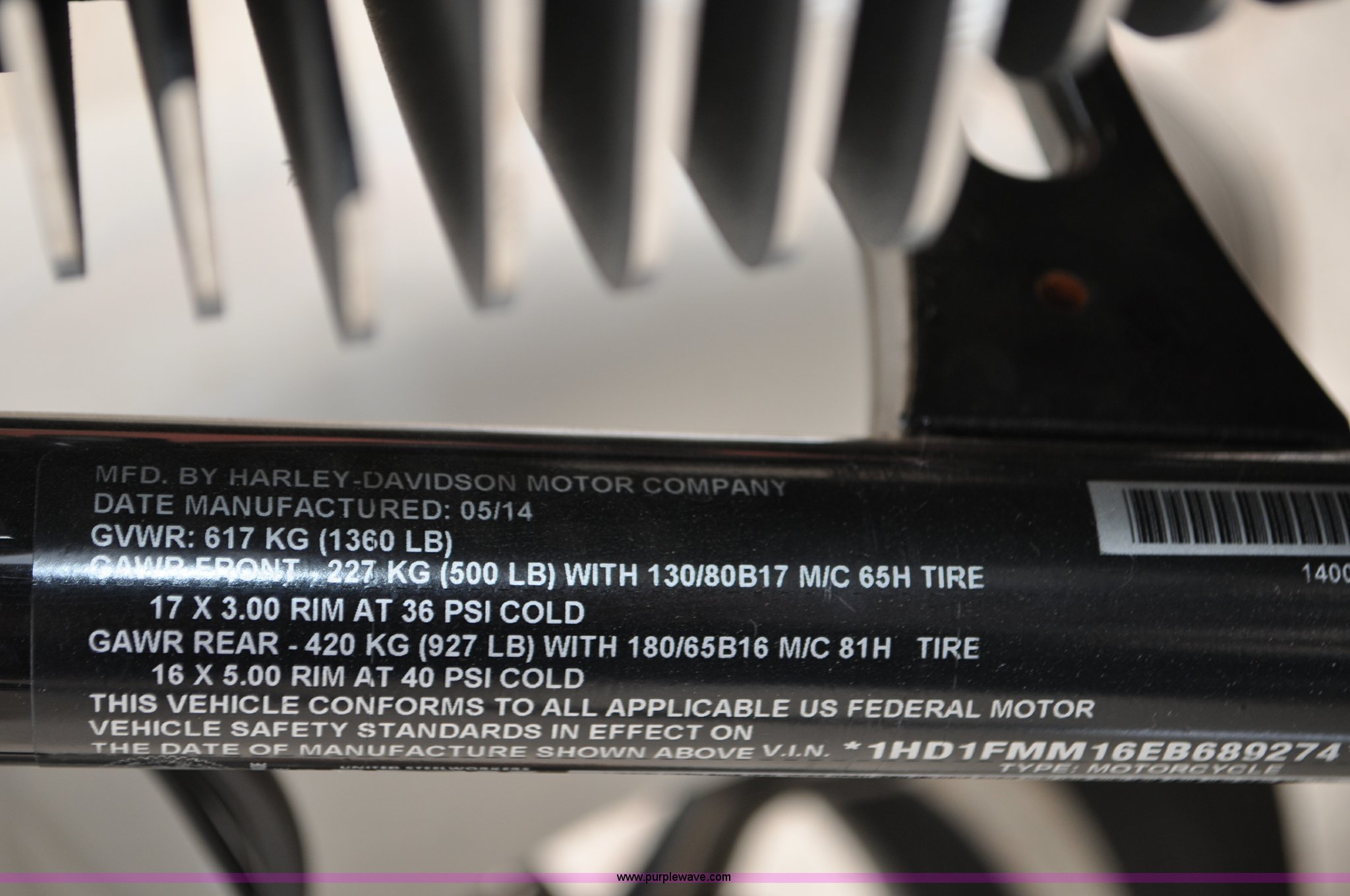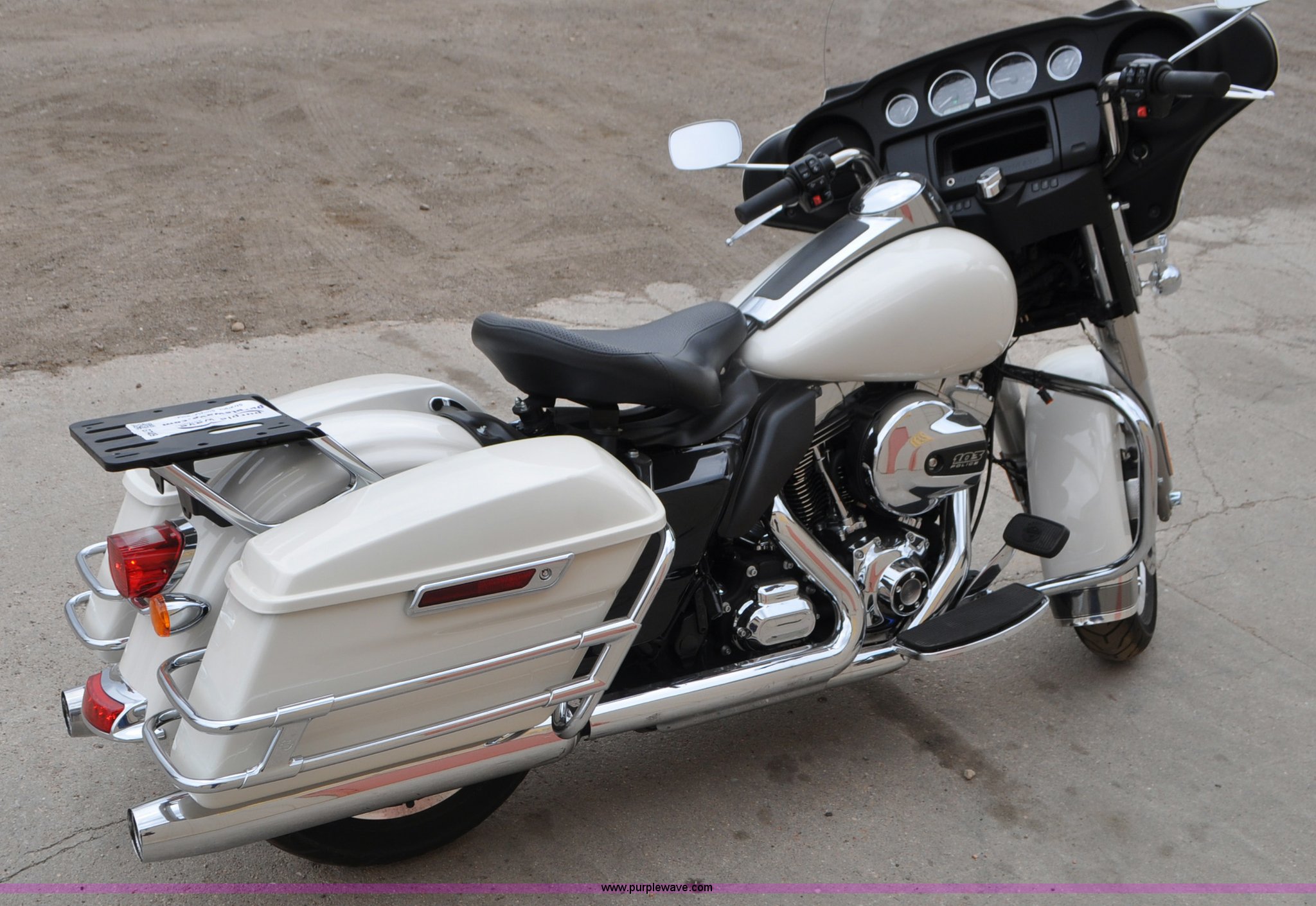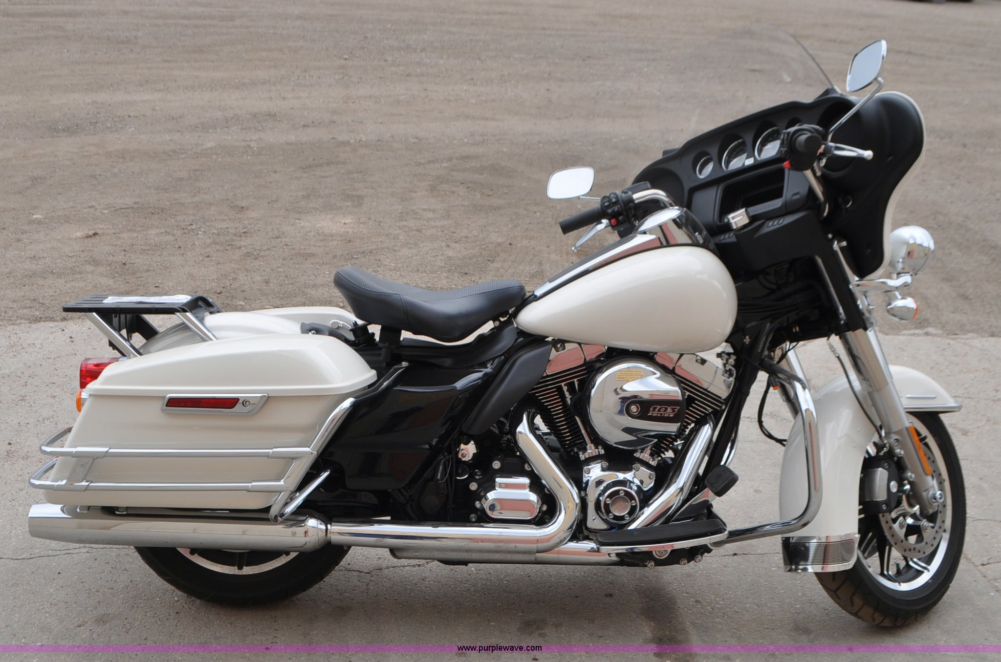 Purple Wave is selling a used Motorcycle in Colorado. This item is a 2014 Harley Davidson FLHTP Electra-glide Police motorcycle with the following: 4,576 miles on odometer, Evolution XL 103 C.I.D. twin cam gas engine, Six speed transmission, Windshield, Saddle bags, Dunlop D408T 130/80B17-M/C 65H front tire, Dunlop D407T 180/65B16-M/C 81H rear tire, Former sheriff department motorcycle