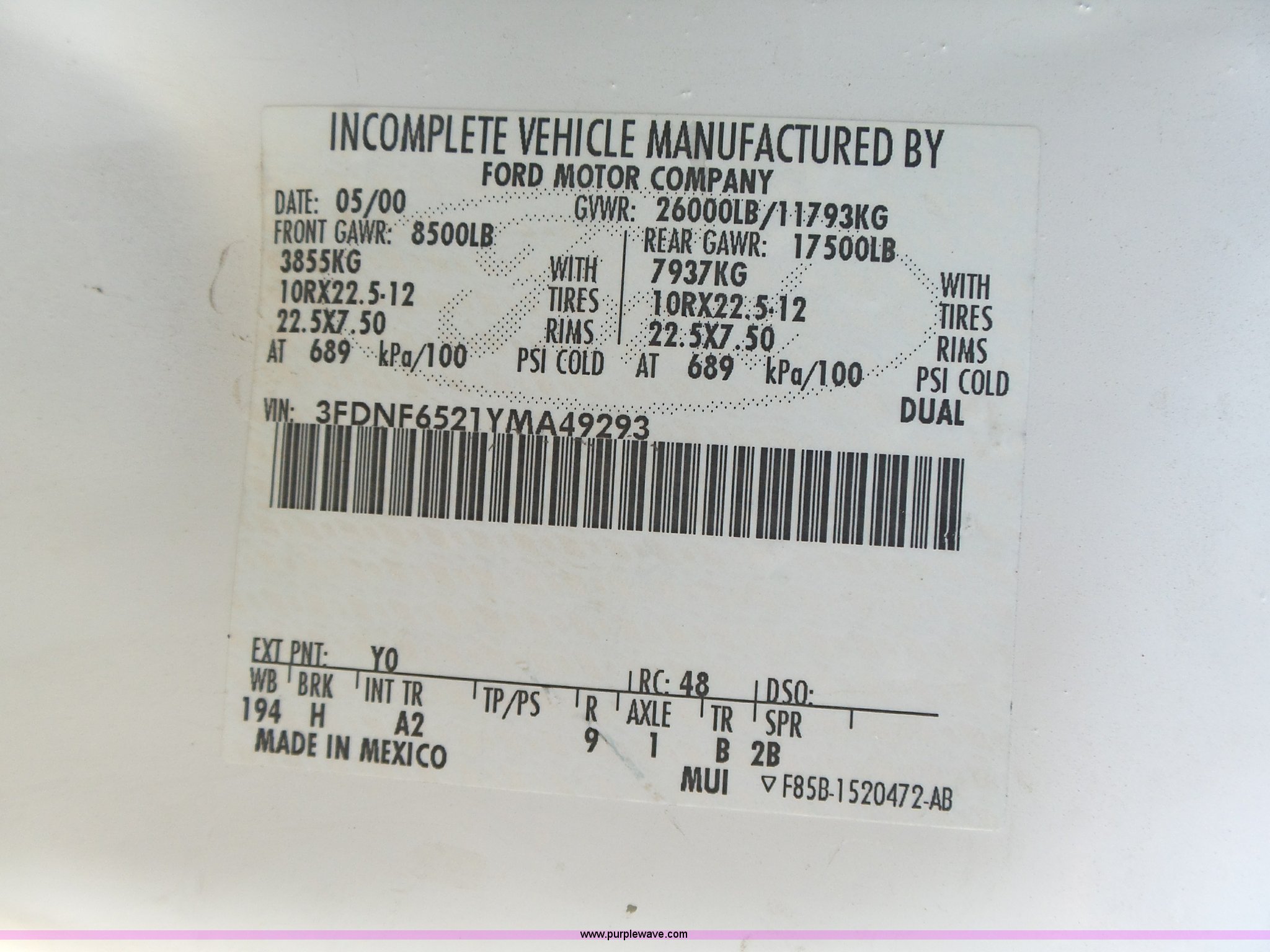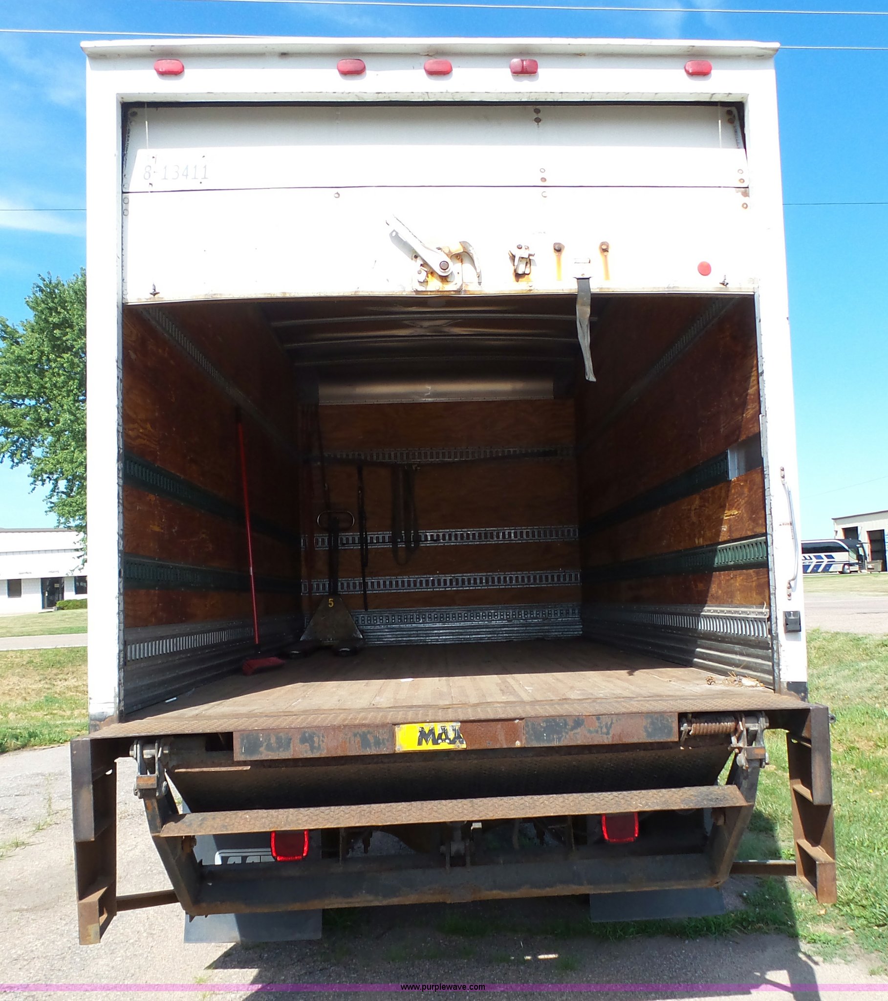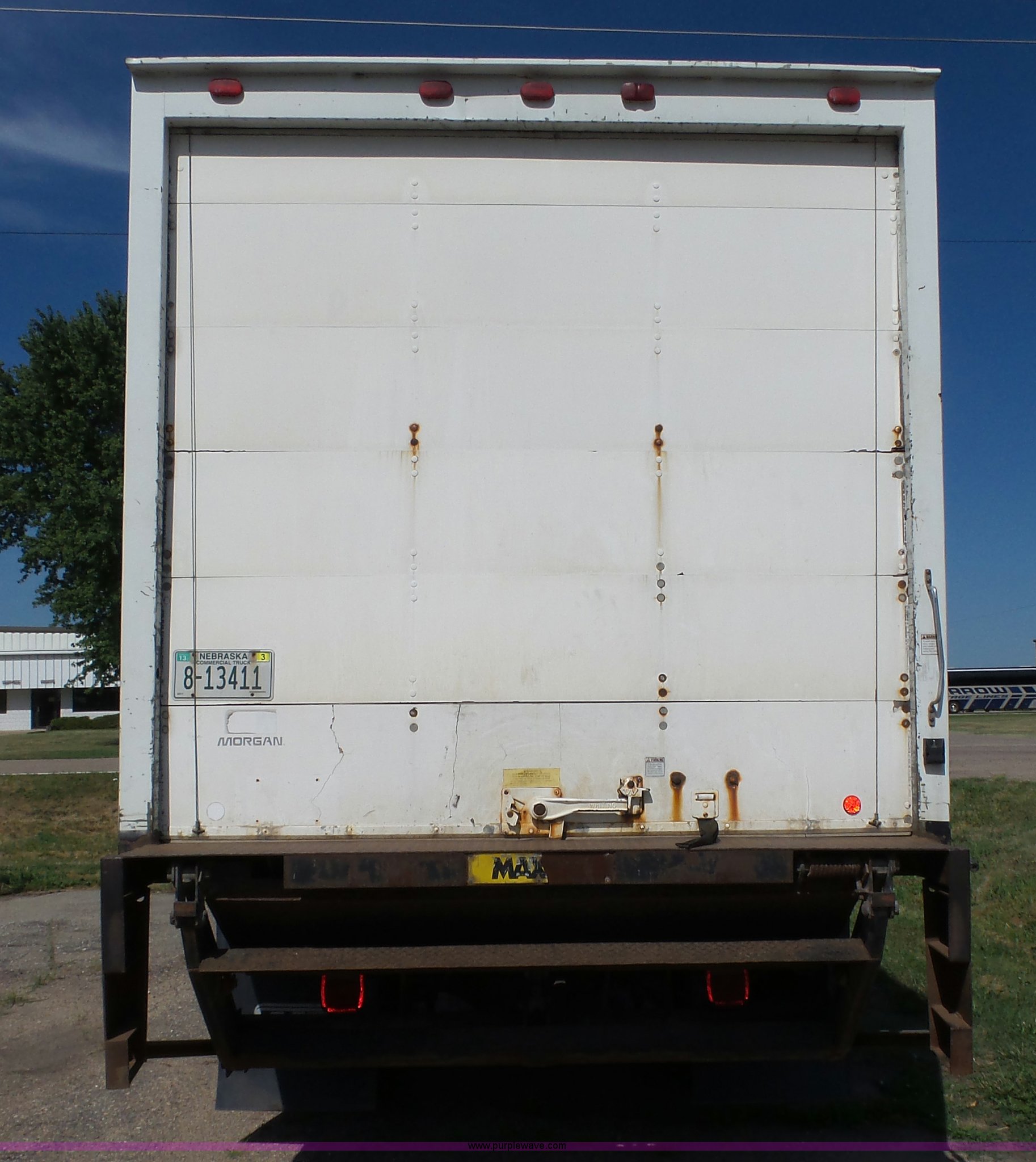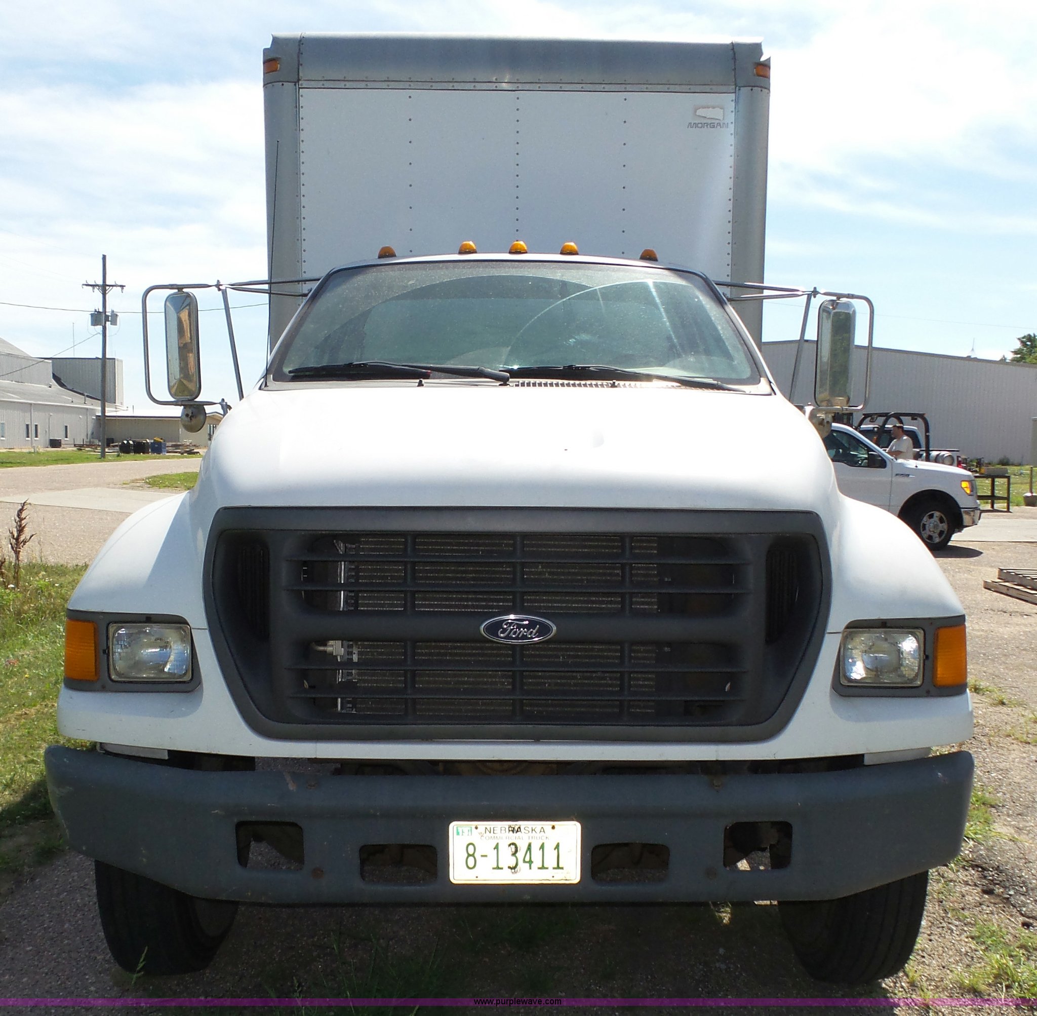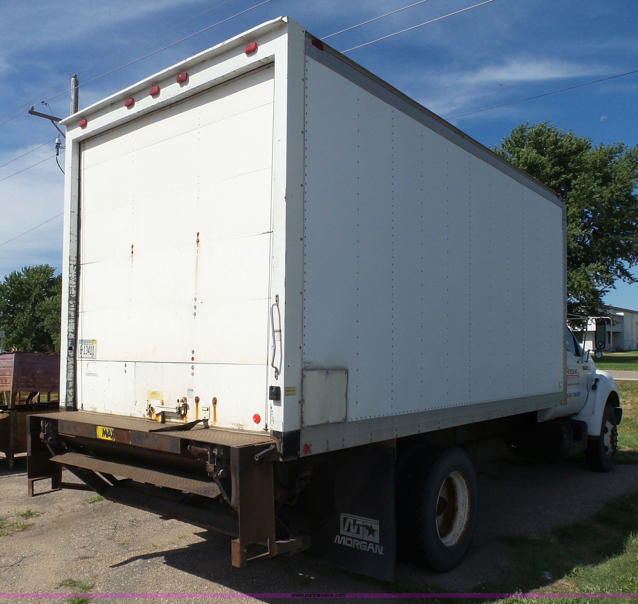 Purple Wave is selling a used Box Truck in Nebraska. This item is a 2000 Ford F650 XL box truck with the following: 72,244 miles on odometer, Caterpillar 3126B 7.2L six cylinder turbo diesel engine, Automatic transmission, Single axle, AC and heat, AM/FM/cassette, Manual windows, locks, and mirrors, Suspension seat, Vinyl seat, Front tow hooks, Morgan GVSD09116096 box bed, 16'L x 92"W I.D., 92.5"H I.D., Wood deck, Roll up rear door, Rear hydraulic lift gate, Serial MPE00EP02109-001, Single fuel tank, Spring suspension, Goodyear 10R22.5 tires, GVWR 26,000 lbs, Operations manual, Contents not included, Annual inspection has expired, Possible brake issues, front brakes may need to be replaced, AC non-operational