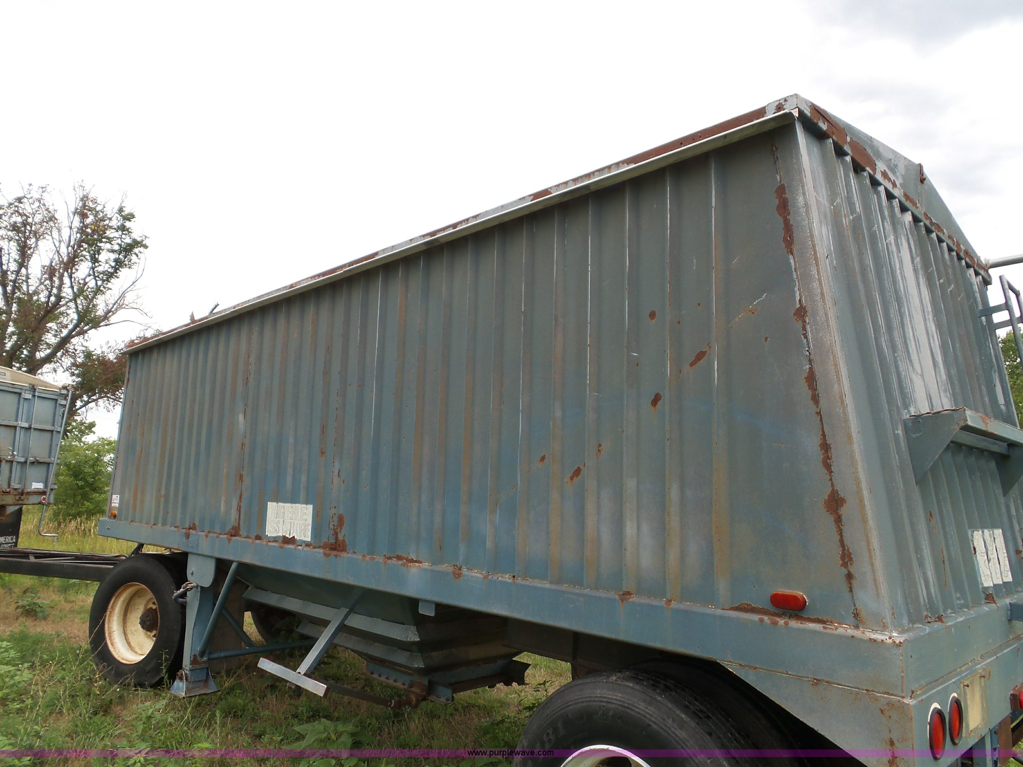 Purple Wave is selling a used Grain or Commodity Trailer in Kansas. This item is a 1991 DMF single hopper grain trailer with dolly with the following: 22' x 8' x 5', Shurco rollover tarp, Plumbed for air hookups and lights, 16'L dolly, Fifth wheel hitch, Landing gear, Spring suspension, Air brakes, 11R24.5 tires, Rust